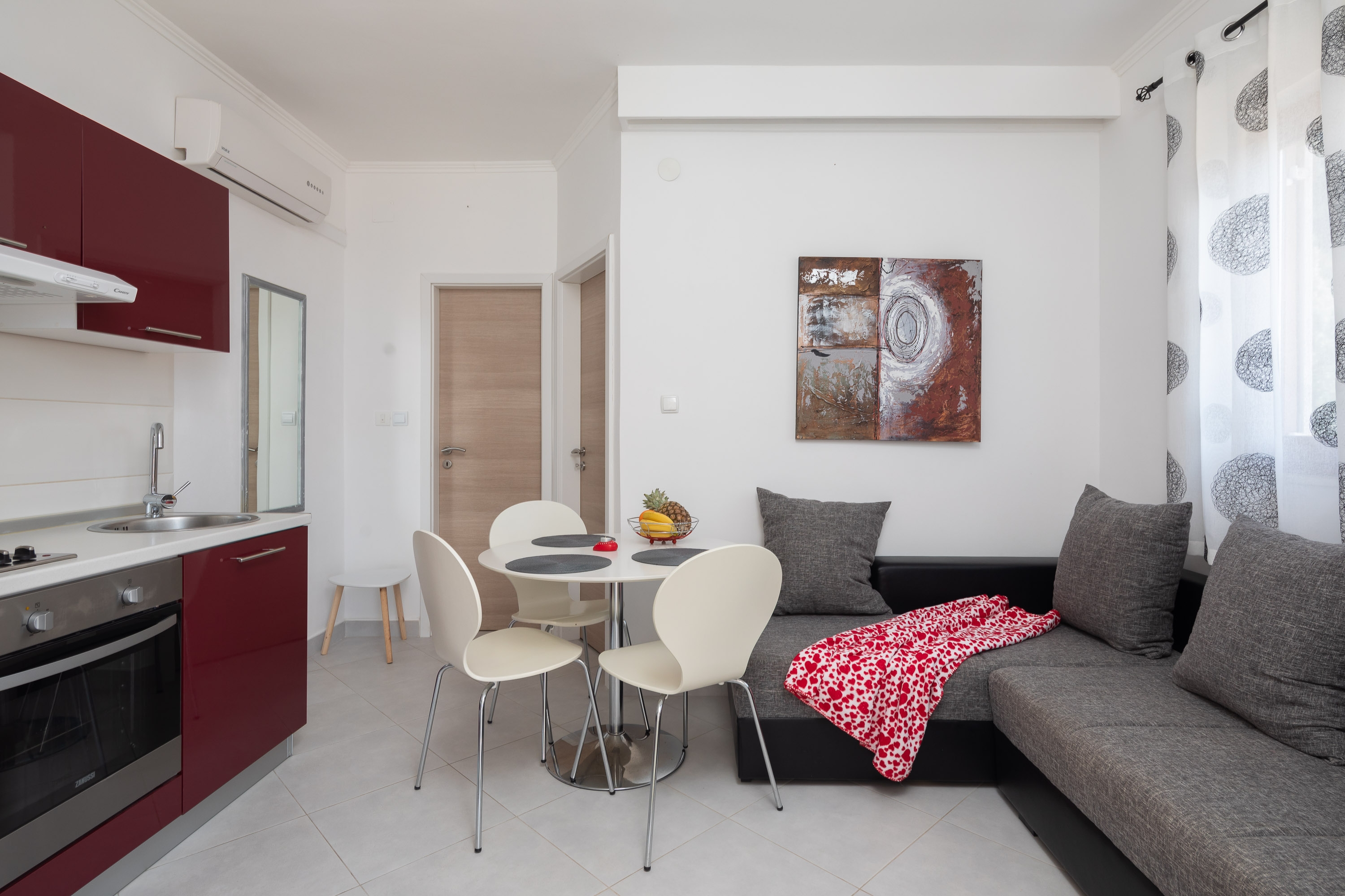Apartment can accommodate 3 guests. Beds are situated in 1 sleeping rooms, but also in the living room, within 27m2. Guests can use a private terrace to enjoy the warm summer evenings. The apartment offers the sea view. Food can be prepared using barbecue which is shared with other guests too. This accommodation unit welcomes pets at no additional costs. INCLUDED IN THE PRICE: tourist tax, final cleaning, air-conditioning, parking, internet, laundry, boat mooring, pets, baby cot, sunchairs. The availability of additional services for your chosen dates of stay, as well as their prices (if none are listed) must be checked ahead of time. Any additional services not shown in the price calculation are payable directly to the property owner and only if used by the visitor. Discounts to the base price: free day 21=19 (for reservations of 21 or more days you get 2 free days for the stay until 31122026).
