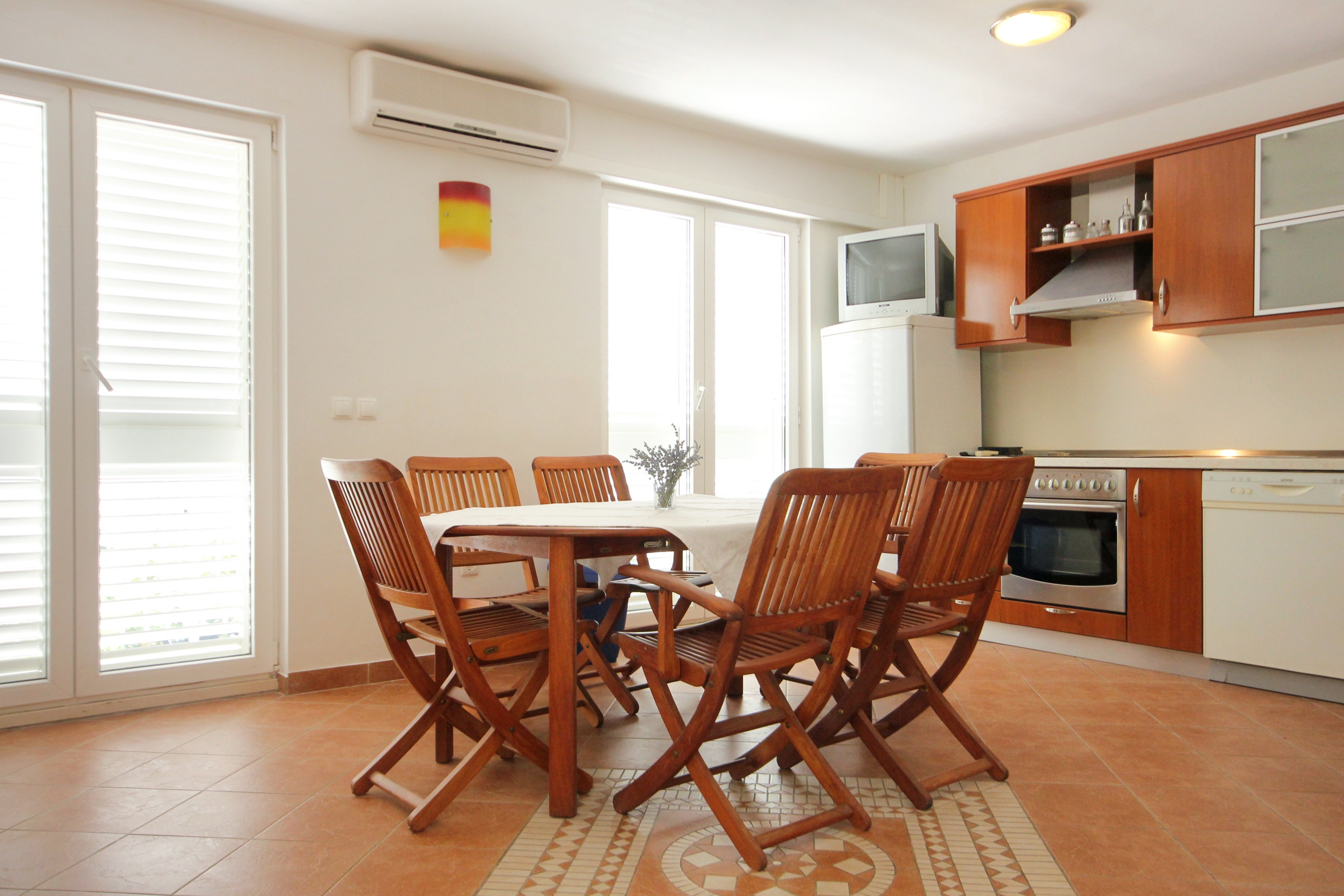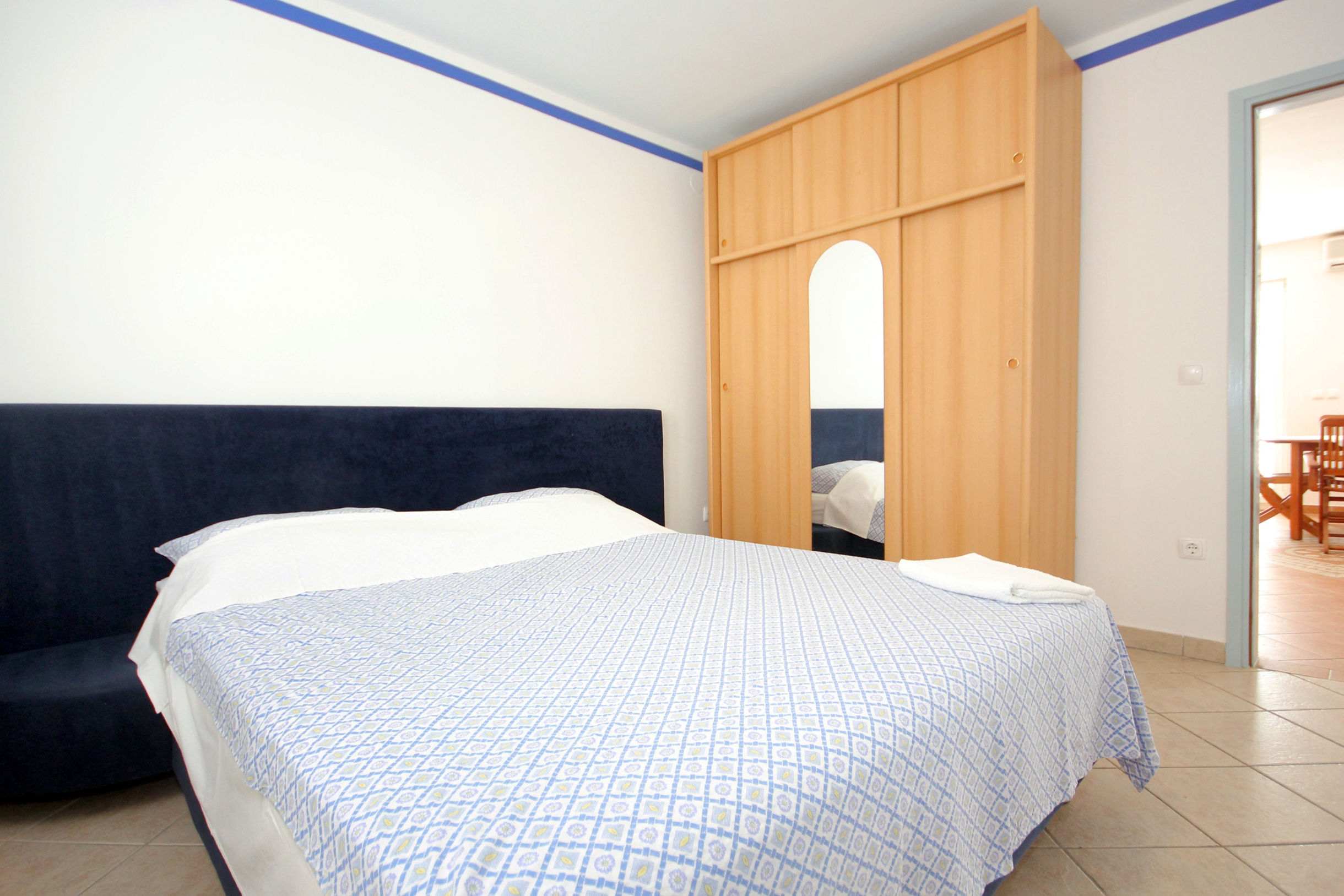 Apartment can accommodate 4 guests. Beds are situated in 2 sleeping rooms, within 43m2. Guests can use a private balcony to enjoy the warm summer evenings. The apartment offers the sea view. Food can be prepared using barbecue which is shared with other guests too. This accommodation unit welcomes pets at an additional charge. INCLUDED IN THE PRICE: final cleaning, air-conditioning, parking, internet, baby cot, iron, ironing board, hairdryer. OBLIGATORY ADDITIONAL COSTS: tourist tax (adults €0.93 - €2.00 nightperson, discount for children aged 12 - 17), short stay fee (surcharge depending on a number of booked nights: 30% - 1, 20% - 2, 10% - 3). OPTIONAL ADDITIONAL COSTS: pets (€12.00 per night). The availability of additional services for your chosen dates of stay, as well as their prices (if none are listed) must be checked ahead of time. Any additional services not shown in the price calculation are payable directly to the property owner and only if used by the visitor.