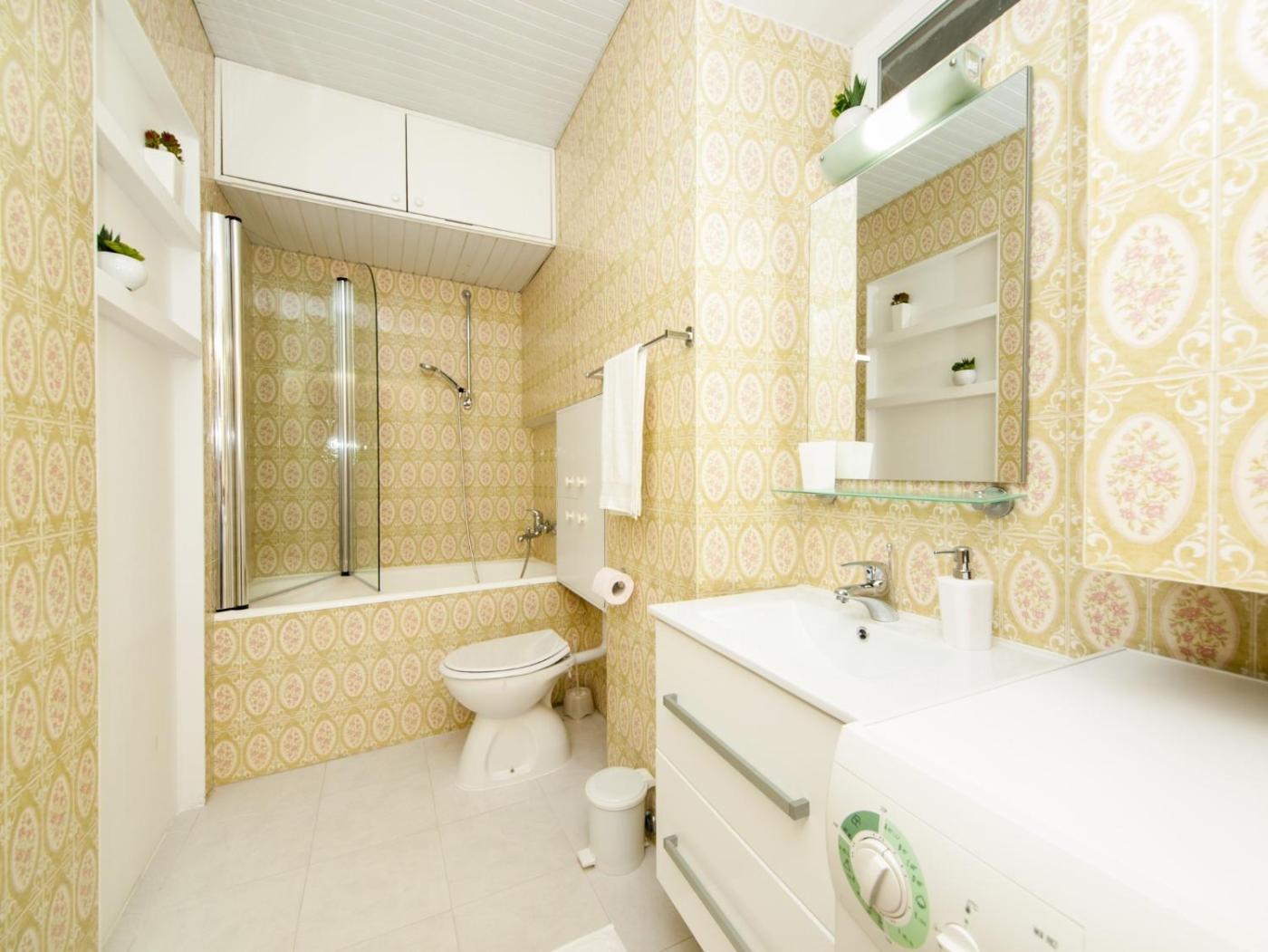 One-Bedroom Apartment. Featuring a private entrance, this air-conditioned apartment consists of 1 living room, 1 separate bedroom and 1 bathroom with a bath and a shower. Guests can make meals in the kitchen that is equipped with a stovetop, a refrigerator, kitchenware and an oven. The apartment provides a flat-screen TV with cable channels, a washing machine, soundproof walls, a coffee machine as well as sea views. The unit offers 2 beds. ;