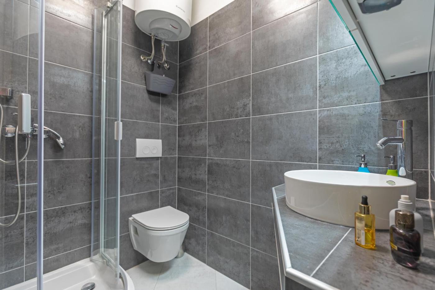One-Bedroom Apartment. Featuring a private entrance, this air-conditioned apartment comprises 1 living room, 1 separate bedroom and 1 bathroom with a walk-in shower and a hairdryer. Meals can be prepared in the well-fitted kitchen, which comes with a stovetop, a refrigerator, kitchenware and a toaster. The apartment is furnished with a desk and a seating area and provides soundproof walls, a dining area and city views. The unit offers 3 beds.