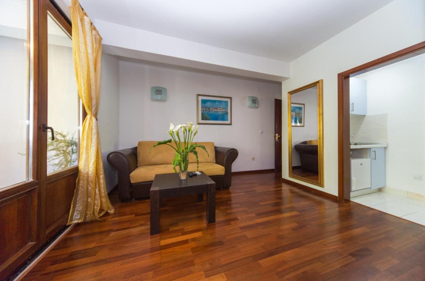 One-Bedroom Apartment with Balcony and Sea View. This air-conditioned apartment features a bedroom for 2 persons, a living room with a sofa bed for 2 persons, an equipped kitchen, and a bathroom with a bathtub. A TV is provided. A furnished balcony offers Dubrovnik Old Town and sea views. ;