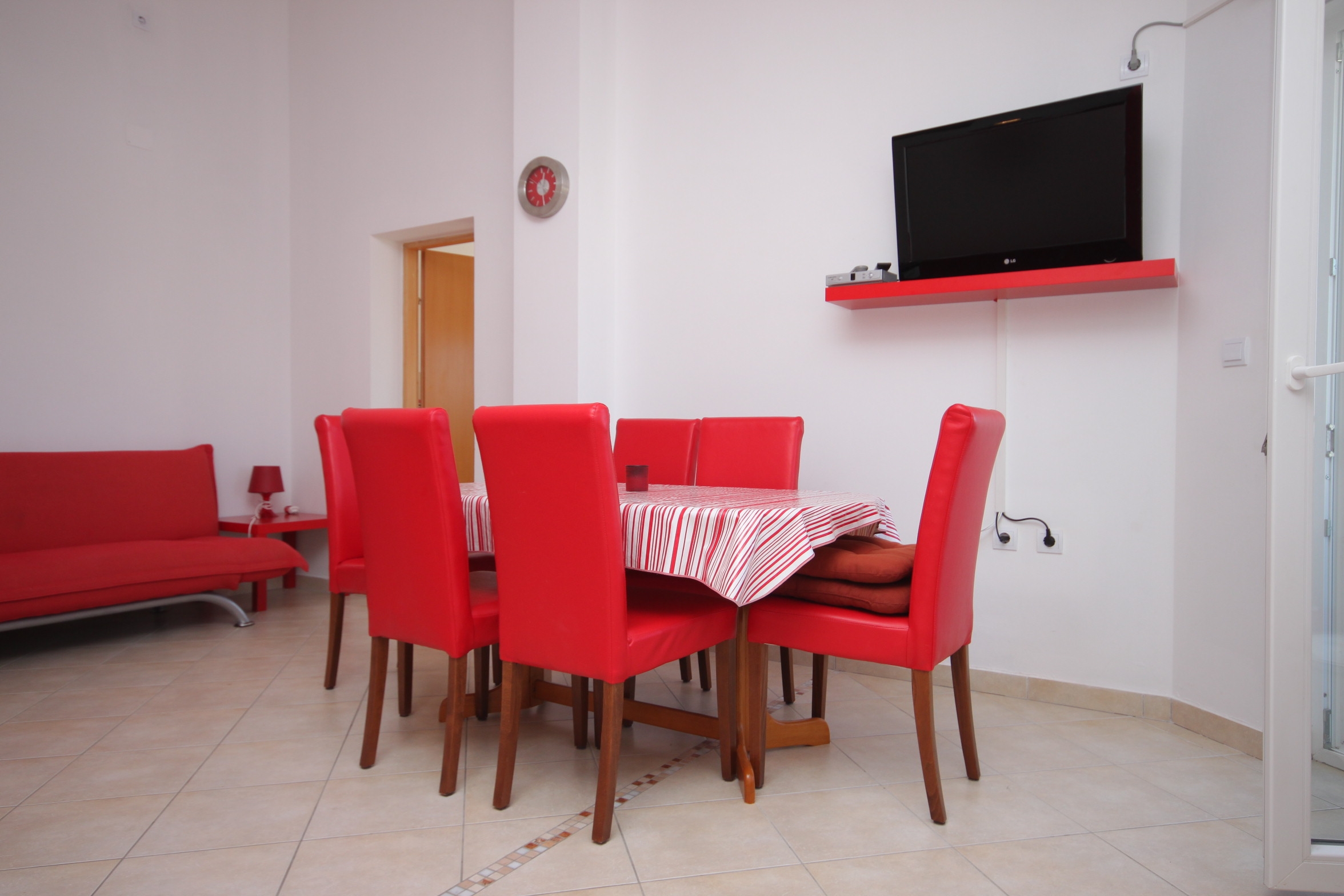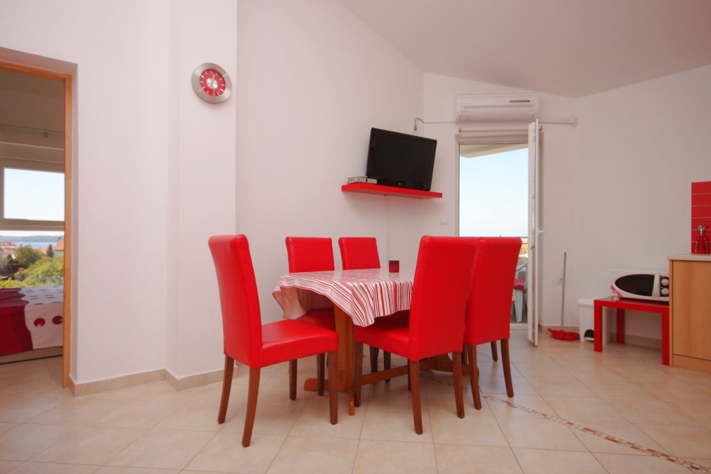 Apartment can accommodate 5 guests. Beds are situated in 2 sleeping rooms, but also in the dining room, within 42m2. Guests can use a private terrace to enjoy the warm summer evenings. The apartment offers the sea view. INCLUDED IN THE PRICE: tourist tax, final cleaning, air-conditioning, parking, internet, laundry, baby cot, iron, ironing board, hairdryer. OBLIGATORY ADDITIONAL COSTS: short stay fee (surcharge depending on a number of booked nights: 30% - 1, 20% - 2, 10% - 3). The availability of additional services for your chosen dates of stay, as well as their prices (if none are listed) must be checked ahead of time. Any additional services not shown in the price calculation are payable directly to the property owner and only if used by the visitor. Discounts to the base price: free day 21=19 (for reservations of 21 or more days you get 2 free days for the stay until 31122026).