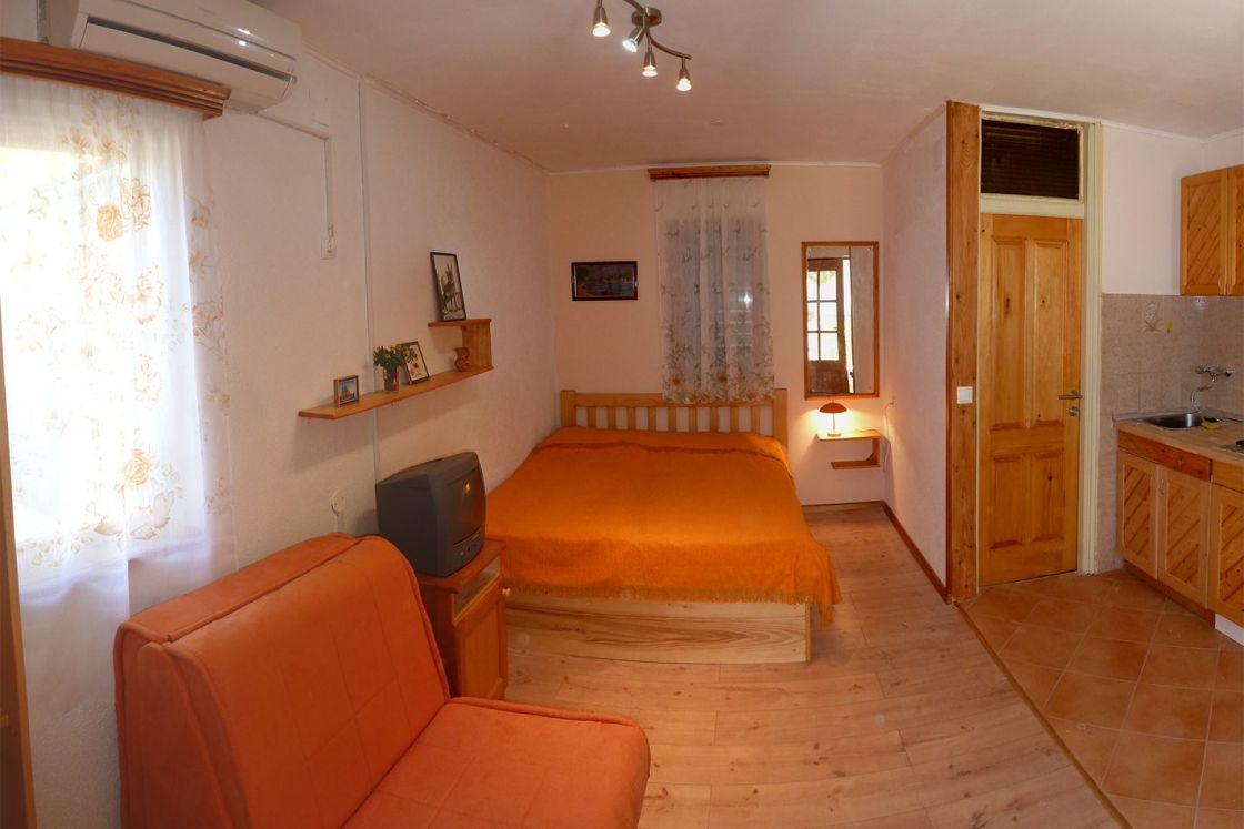 Studio flat can accommodate 3 guests. Beds are situated in 1 sleeping rooms, within 18m2. Guests can use a private terrace to enjoy the warm summer evenings. Food can be prepared using barbecue which is shared with other guests too. This accommodation unit welcomes pets at an additional charge. INCLUDED IN THE PRICE: tourist tax, final cleaning, air-conditioning, parking, internet, iron, ironing board, hairdryer. OBLIGATORY ADDITIONAL COSTS: short stay fee (surcharge depending on a number of booked nights: 30% - 1, 20% - 2, 10% - 3). OPTIONAL ADDITIONAL COSTS: laundry (€5.00 washing), pets (€5.00 per night). The availability of additional services for your chosen dates of stay, as well as their prices (if none are listed) must be checked ahead of time. Any additional services not shown in the price calculation are payable directly to the property owner and only if used by the visitor. Discounts to the base price: free day 14=13 (for reservations of 14 or more days you get one free day for the stay until 31122026).