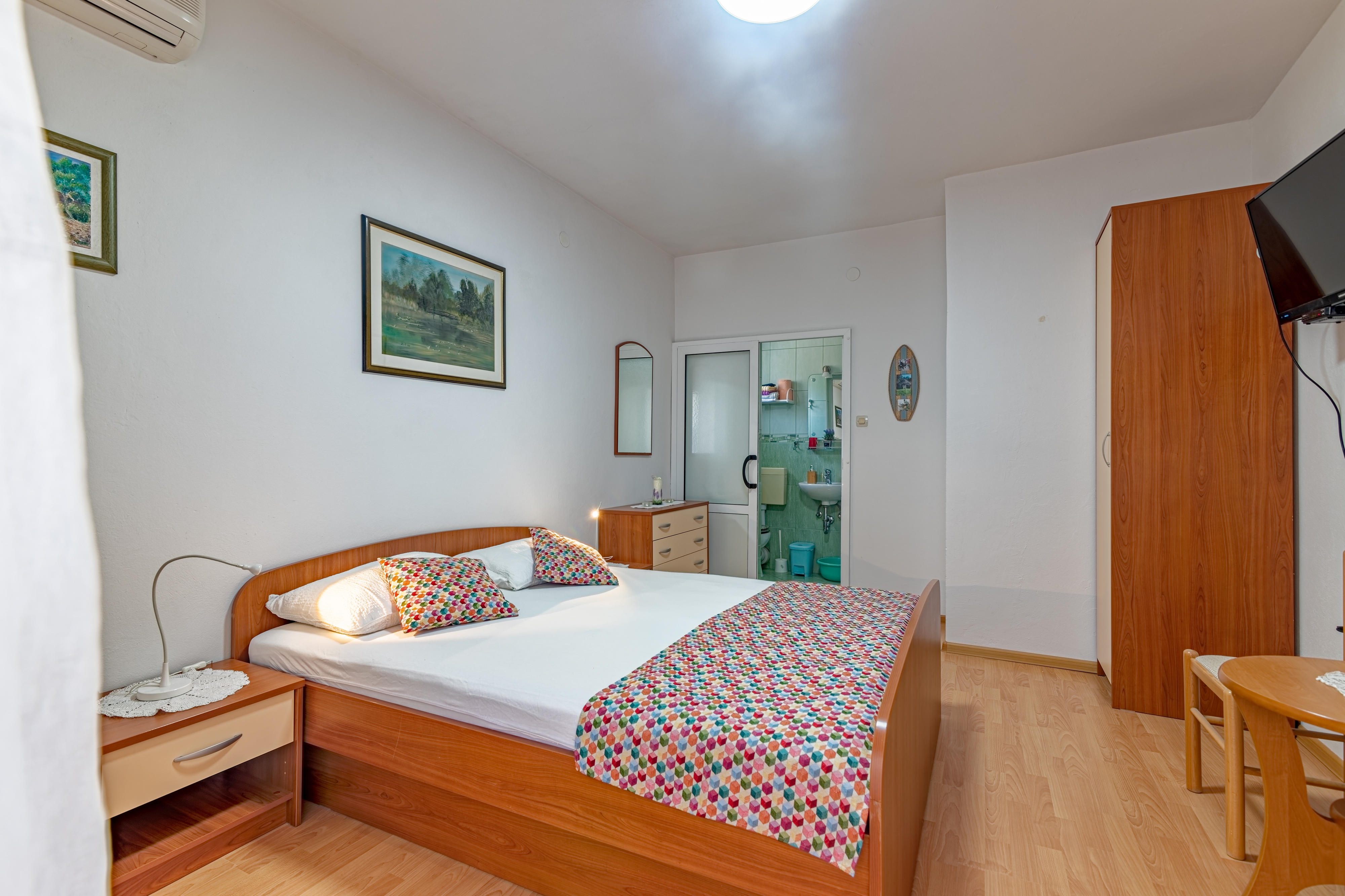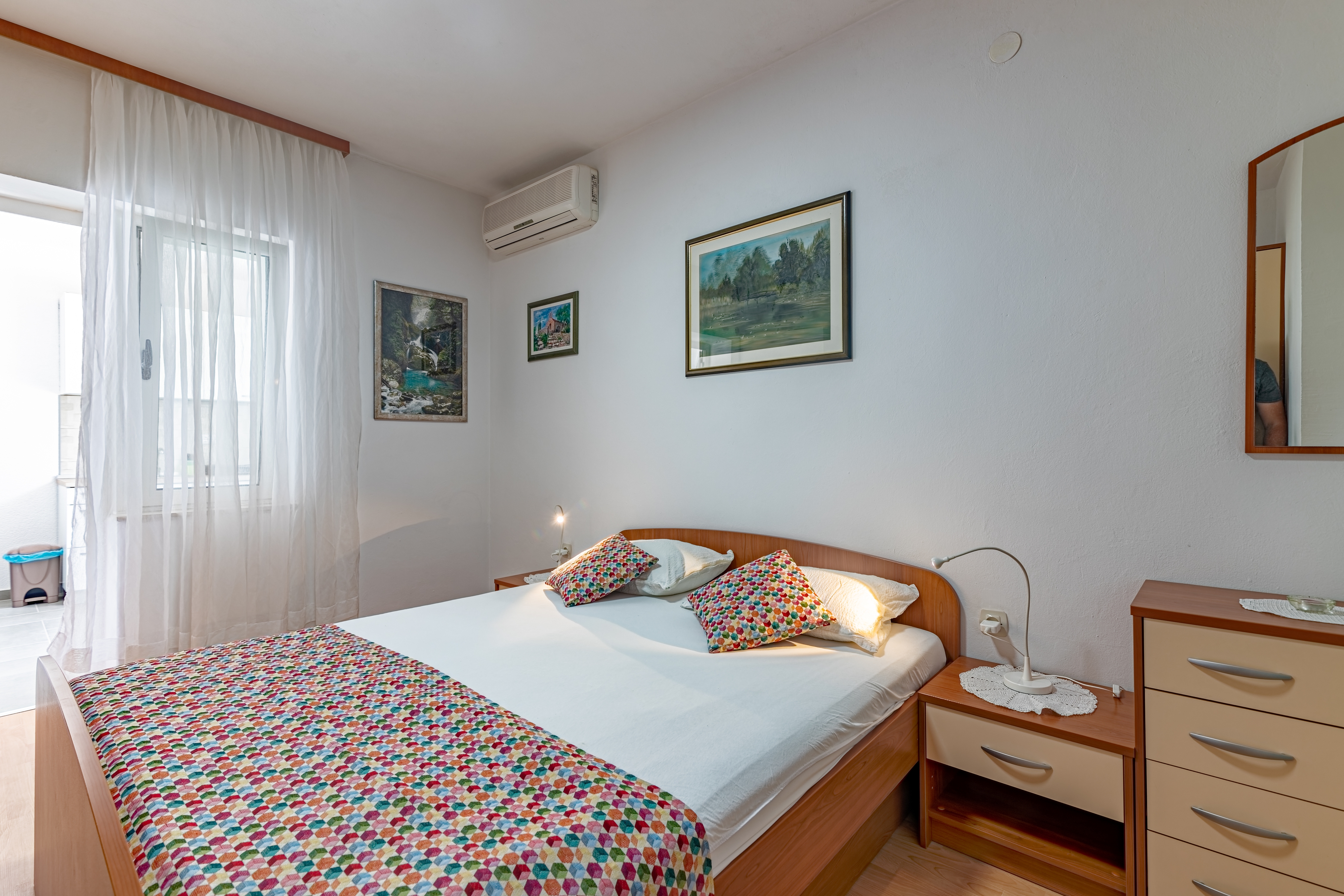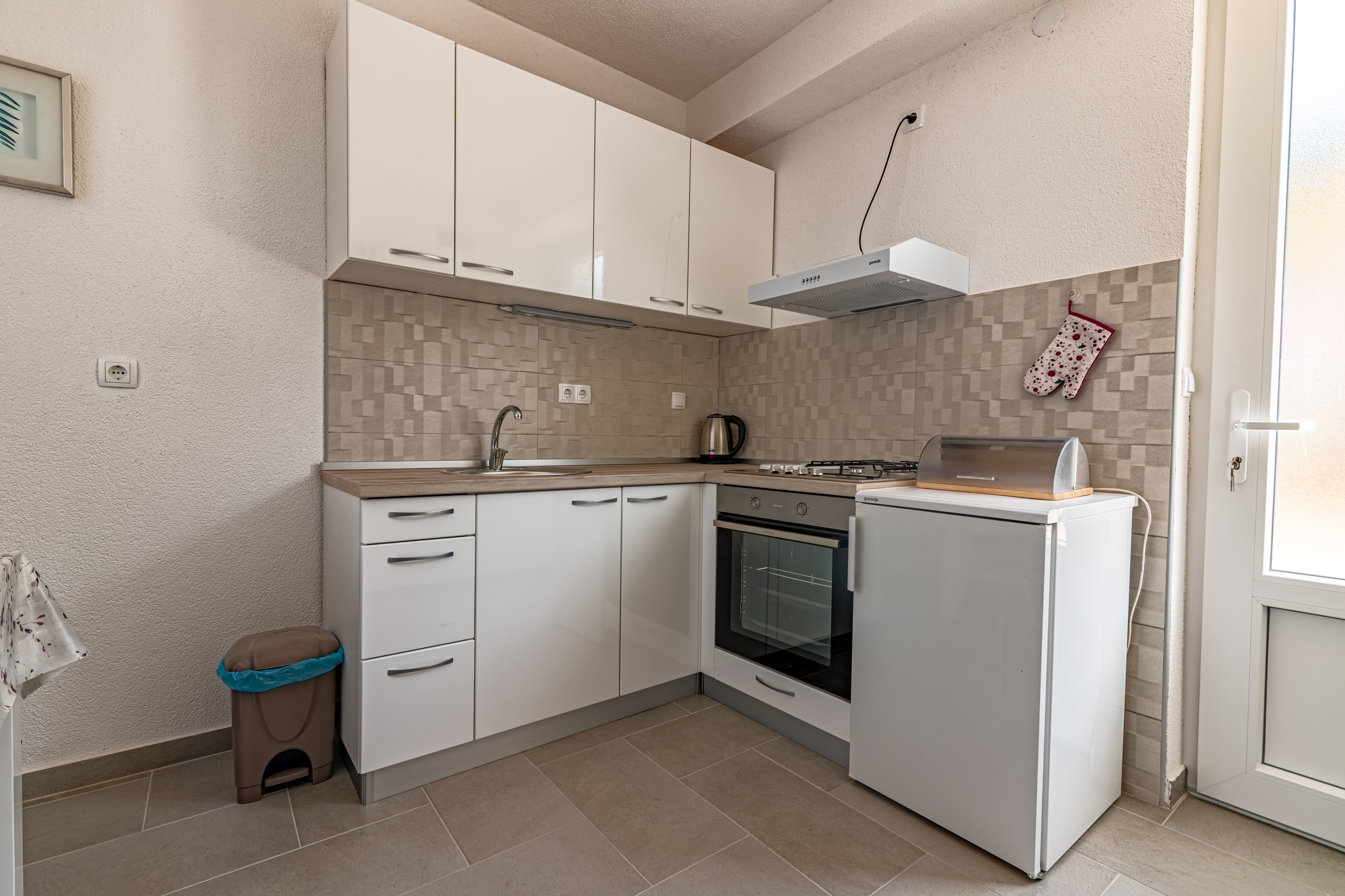 Apartment can accommodate 2 guests. Beds are situated in 1 sleeping rooms, within 18m2. Guests can use a private terrace to enjoy the warm summer evenings. Food can be prepared using barbecue which is shared with other guests too. INCLUDED IN THE PRICE: tourist tax, final cleaning, air-conditioning, parking, internet, baby cot, iron, ironing board, hairdryer. OPTIONAL ADDITIONAL COSTS: laundry (€15.00 washing), 1 bed for children (€12.00 personnight). The availability of additional services for your chosen dates of stay, as well as their prices (if none are listed) must be checked ahead of time. Any additional services not shown in the price calculation are payable directly to the property owner and only if used by the visitor.