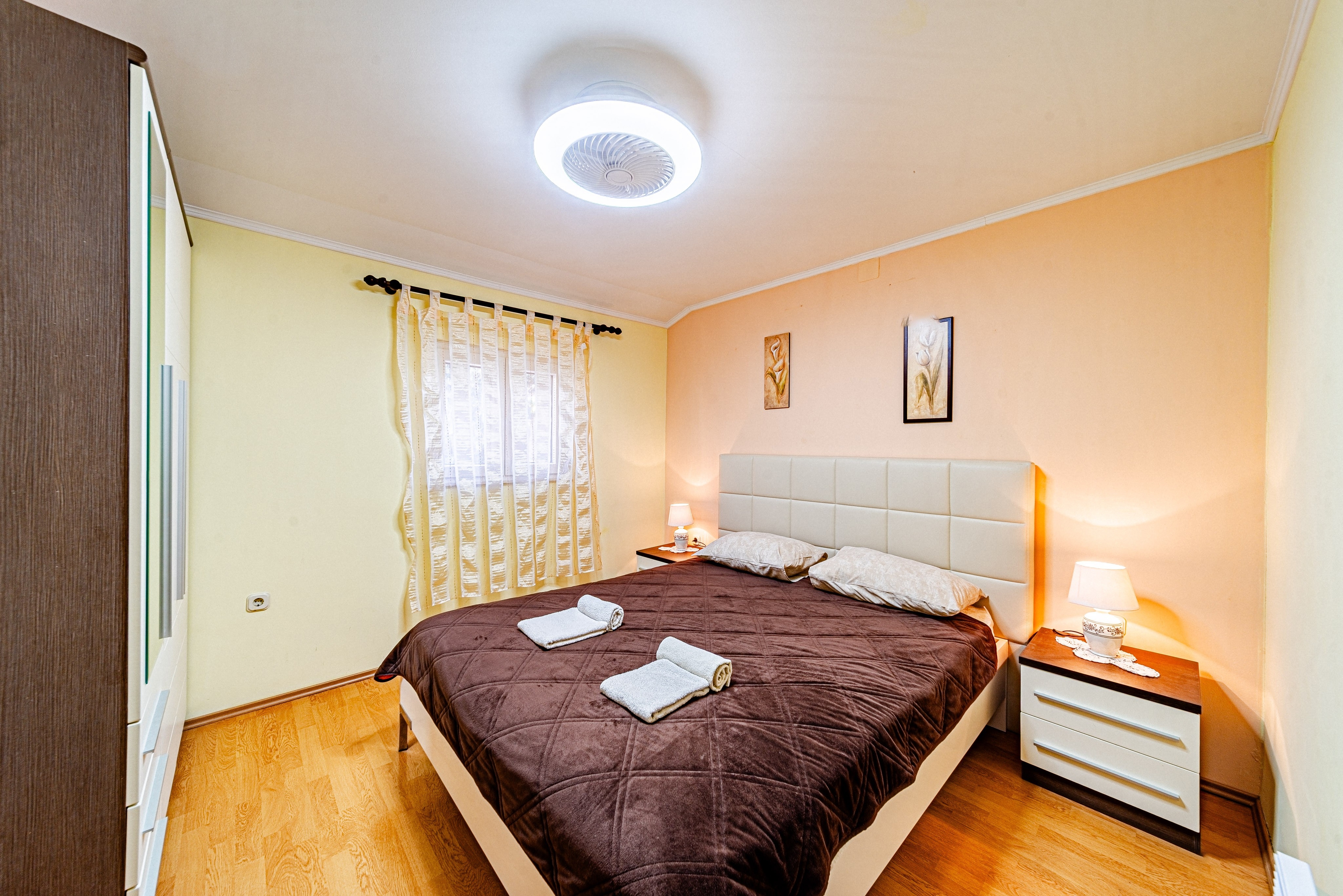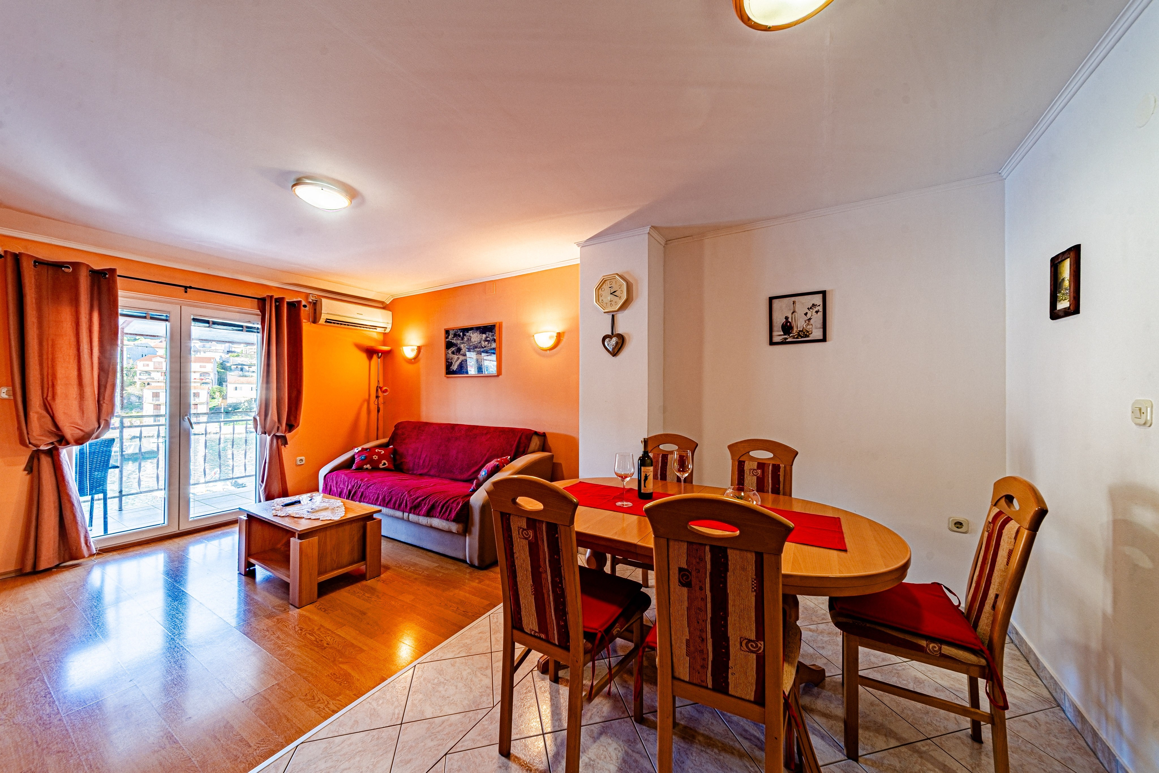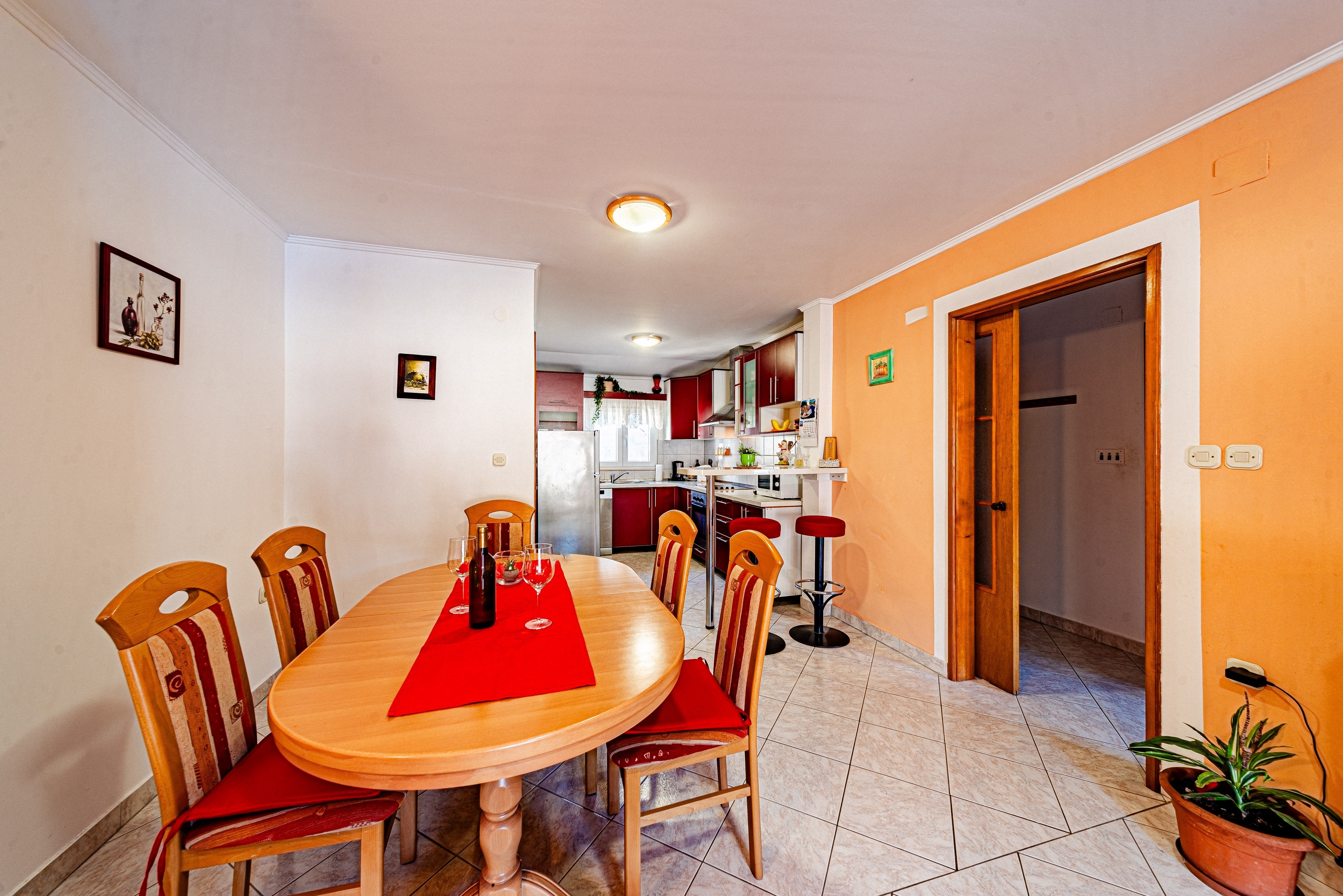 Apartment can accommodate 5 guests. Beds are situated in 2 sleeping rooms, but also in the living room, within 60m2. Guests can use a private terrace to enjoy the warm summer evenings. The apartment offers the sea view. Food can be prepared using barbecue which is shared with other guests too. INCLUDED IN THE PRICE: tourist tax, final cleaning, air-conditioning, parking, internet, iron, ironing board, hairdryer. The availability of additional services for your chosen dates of stay, as well as their prices (if none are listed) must be checked ahead of time. Any additional services not shown in the price calculation are payable directly to the property owner and only if used by the visitor. Discounts to the base price: free day 14=13 (for reservations of 14 or more days you get one free day for the stay until 31122026).