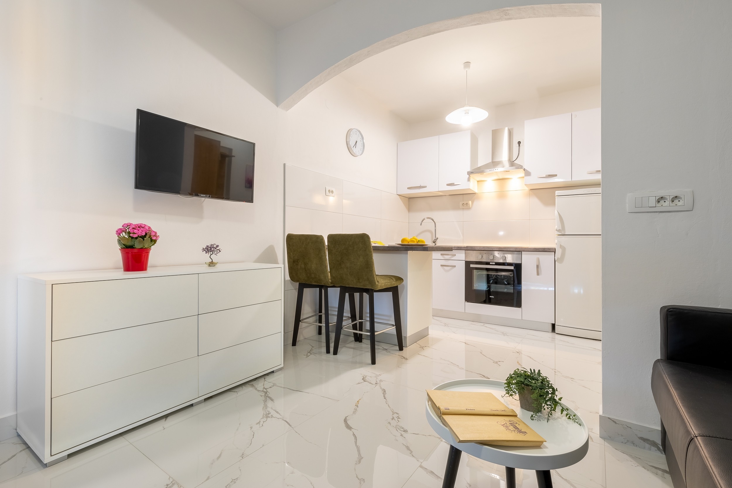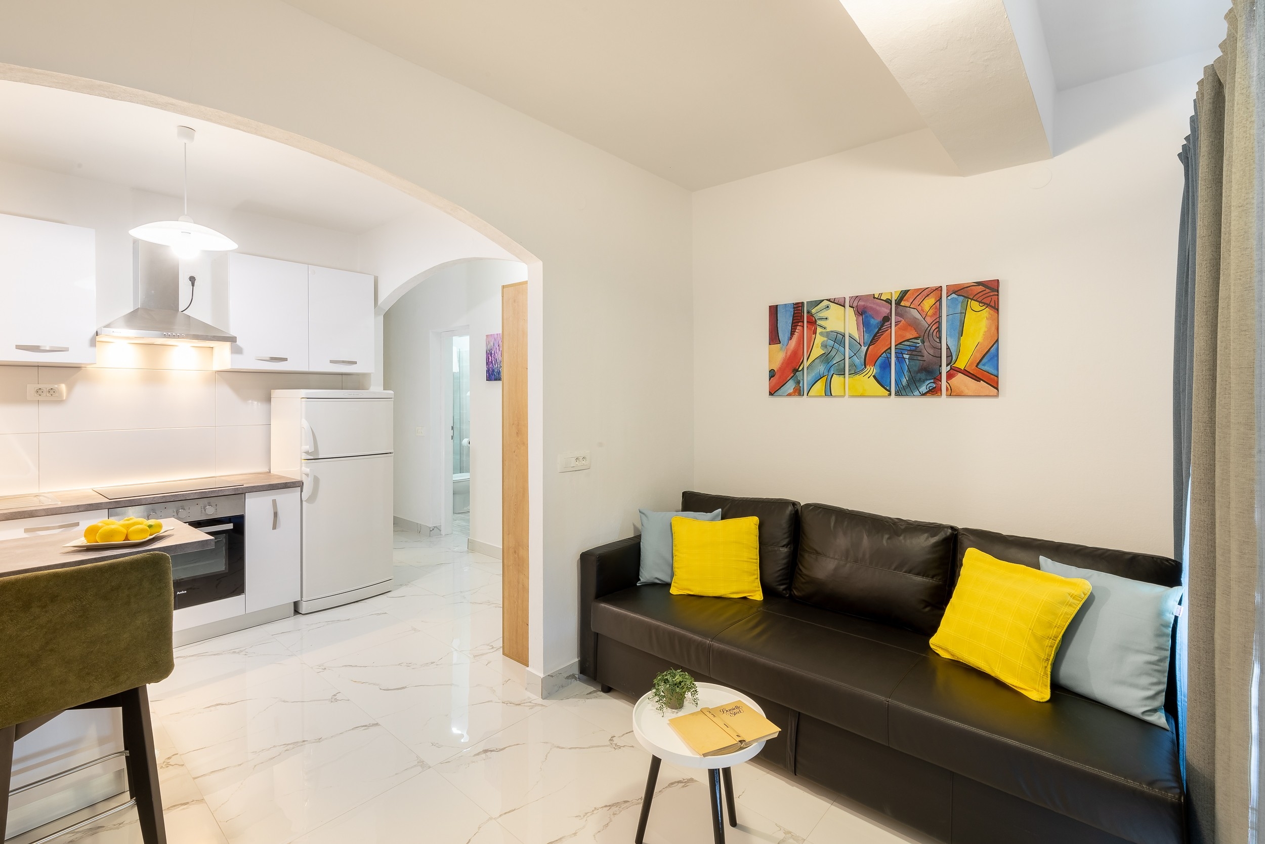 Apartment can accommodate 3 guests. Beds are situated in 1 sleeping rooms, but also in the living room, within 37m2. Guests can use a private balcony to enjoy the warm summer evenings. The apartment offers the sea view. Food can be prepared using barbecue which is shared with other guests too. INCLUDED IN THE PRICE: tourist tax, final cleaning, air-conditioning, parking, internet, laundry, iron, hairdryer. OPTIONAL ADDITIONAL COSTS: boat (€200.00 per night). The availability of additional services for your chosen dates of stay, as well as their prices (if none are listed) must be checked ahead of time. Any additional services not shown in the price calculation are payable directly to the property owner and only if used by the visitor.