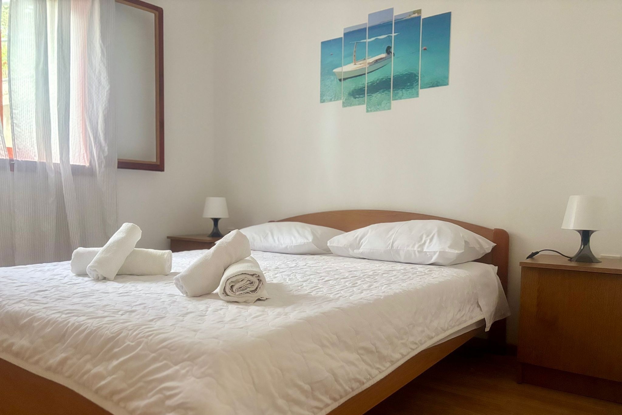 Apartment can accommodate 8 guests. Beds are situated in 3 sleeping rooms, but also in the living room, within 62m2. Guests can use a private terrace to enjoy the warm summer evenings. The apartment offers the sea view. Food can be prepared using barbecue which is shared with other guests too. This accommodation unit welcomes pets at an additional charge. INCLUDED IN THE PRICE: tourist tax, final cleaning, air-conditioning, parking, internet, laundry, boat mooring, baby cot, hairdryer. OPTIONAL ADDITIONAL COSTS: pets (€6.00 per night). The availability of additional services for your chosen dates of stay, as well as their prices (if none are listed) must be checked ahead of time. Any additional services not shown in the price calculation are payable directly to the property owner and only if used by the visitor.