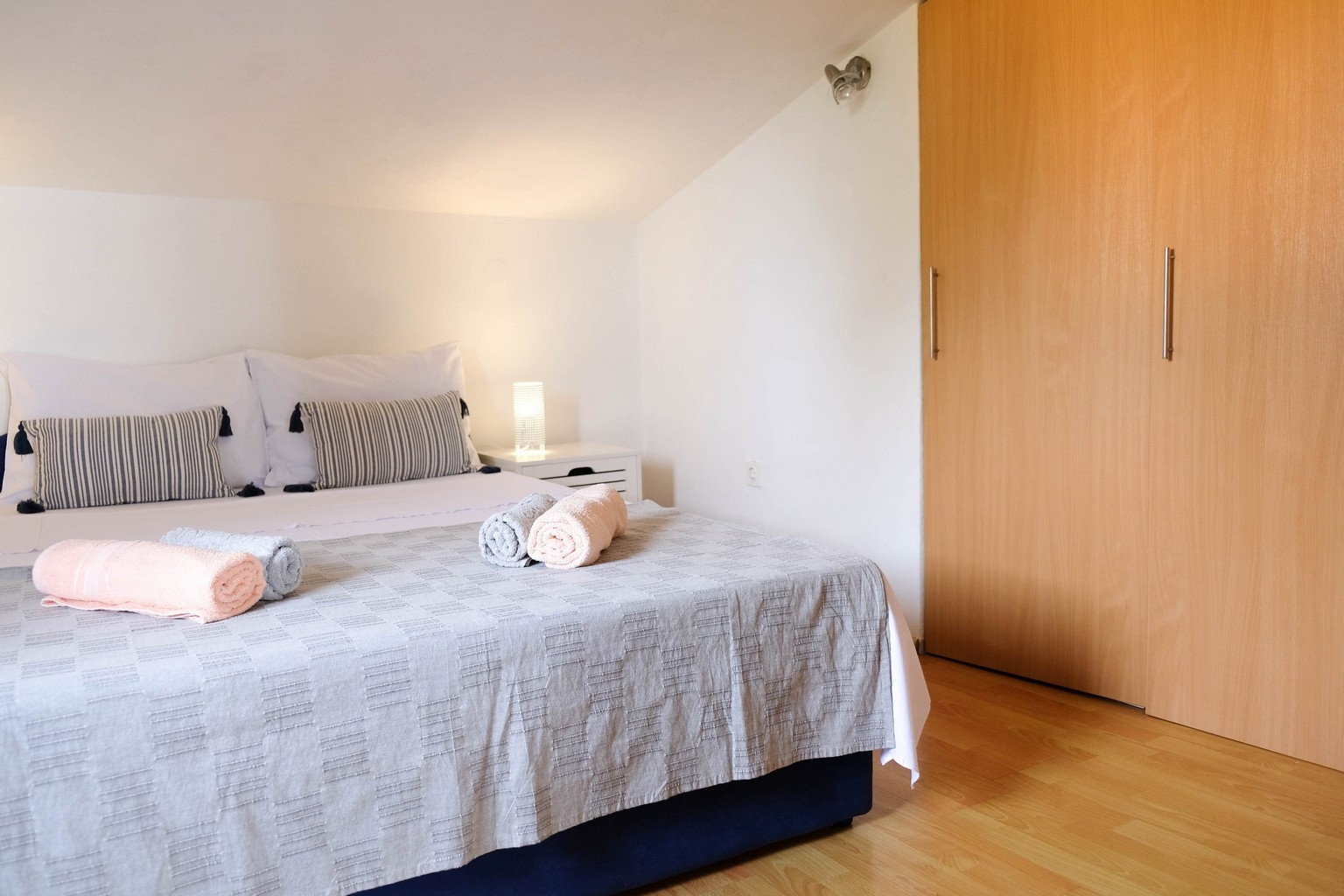 Apartment can accommodate 4 guests. Beds are situated in 1 sleeping rooms, but also in the living room, within 32m2. Guests can use a private terrace to enjoy the warm summer evenings. The apartment offers the sea view. Food can be prepared using barbecue which is shared with other guests too. INCLUDED IN THE PRICE: tourist tax, final cleaning, air-conditioning, central heating, parking, internet, baby cot, hairdryer, sunshade, sunchairs. The availability of additional services for your chosen dates of stay, as well as their prices (if none are listed) must be checked ahead of time. Any additional services not shown in the price calculation are payable directly to the property owner and only if used by the visitor.