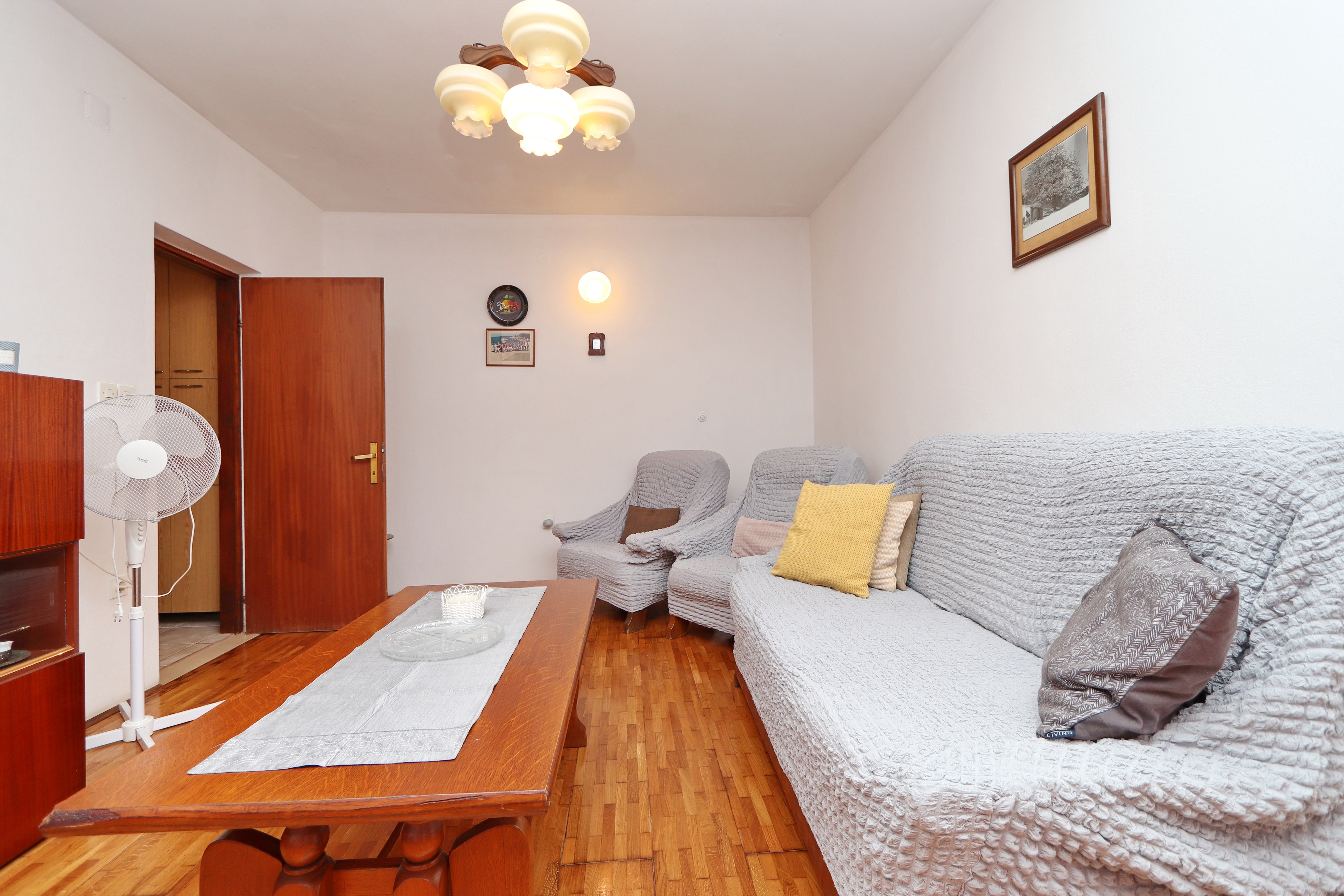 Apartment can accommodate 5 guests. Beds are situated in 2 sleeping rooms, but also in the living room, within 63m2. Guests can use a private terrace to enjoy the warm summer evenings. The apartment offers the sea view. Food can be prepared using barbecue which is shared with other guests too. This accommodation unit welcomes pets at an additional charge. INCLUDED IN THE PRICE: tourist tax, final cleaning, parking, internet, boat mooring, iron. OPTIONAL ADDITIONAL COSTS: pets (€5.00 per night). The availability of additional services for your chosen dates of stay, as well as their prices (if none are listed) must be checked ahead of time. Any additional services not shown in the price calculation are payable directly to the property owner and only if used by the visitor.