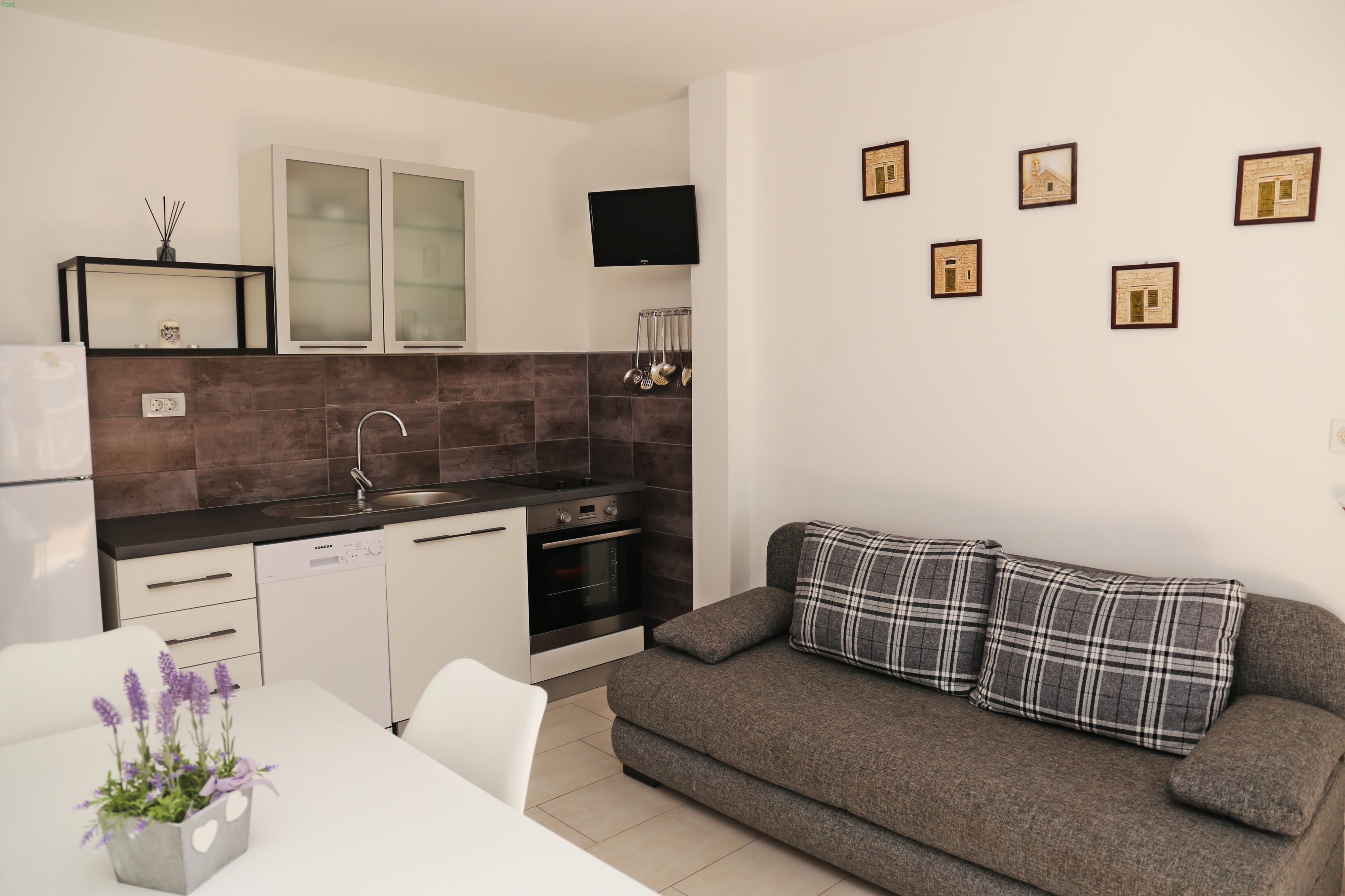 Apartment can accommodate 6 guests. Beds are situated in 3 sleeping rooms, within 66m2. Guests can use a private terrace to enjoy the warm summer evenings. The apartment offers the sea view. Food can be prepared using barbecue which is shared with other guests too. During stay, there is a private pool for relaxation and pleasure. Notthe rooms of the booked accommodation unit are connectedone whole. INCLUDED IN THE PRICE: tourist tax, final cleaning, air-conditioning, pool, parking, internet, laundry, boat mooring, baby cot, additional bed, iron, ironing board, hairdryer, sunshade, sunchairs. The availability of additional services for your chosen dates of stay, as well as their prices (if none are listed) must be checked ahead of time. Any additional services not shown in the price calculation are payable directly to the property owner and only if used by the visitor.