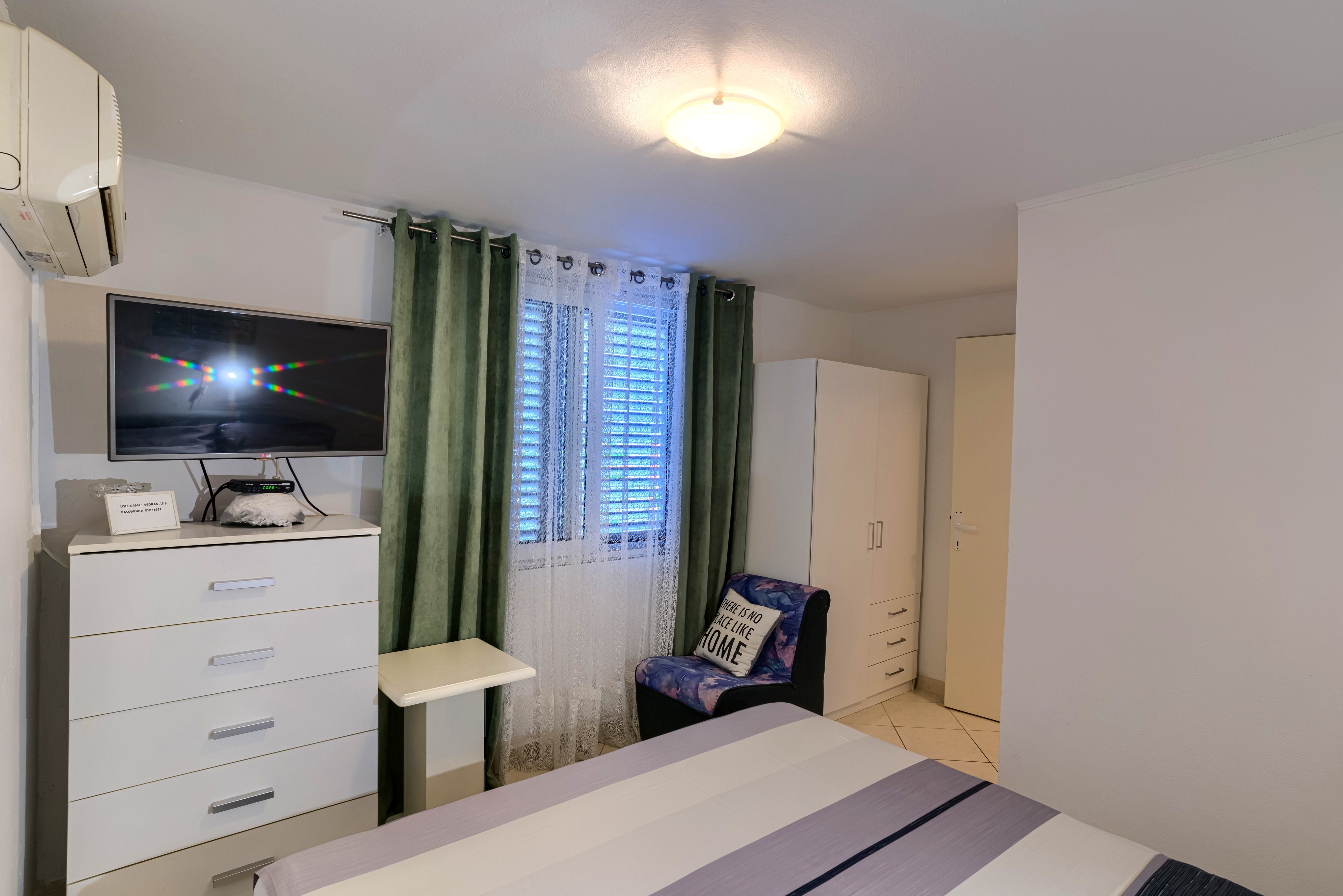 Apartment can accommodate 4 guests. Beds are situated in 1 sleeping rooms, but also in the dining room, within 27m2. Guests can use a private terrace to enjoy the warm summer evenings. The apartment offers the sea view. Food can be prepared using barbecue which is shared with other guests too. For the booked accommodation unit the deposit is paid directly to the owner upon check-in (deposit amount is displayed on the website) INCLUDED IN THE PRICE: tourist tax, final cleaning, air-conditioning, internet, iron, ironing board, hairdryer. OBLIGATORY ADDITIONAL COSTS: deposit (€50.00 one-time payment), short stay fee (surcharge depending on a number of booked nights: 30% - 1, 20% - 2, 10% - 3). OPTIONAL ADDITIONAL COSTS: laundry (€5.00 washing). The availability of additional services for your chosen dates of stay, as well as their prices (if none are listed) must be checked ahead of time. Any additional services not shown in the price calculation are payable directly to the property owner and only if used by the visitor. Discounts to the base price: free day 14=13 (for reservations of 14 or more days you get one free day for the stay until 31122026).