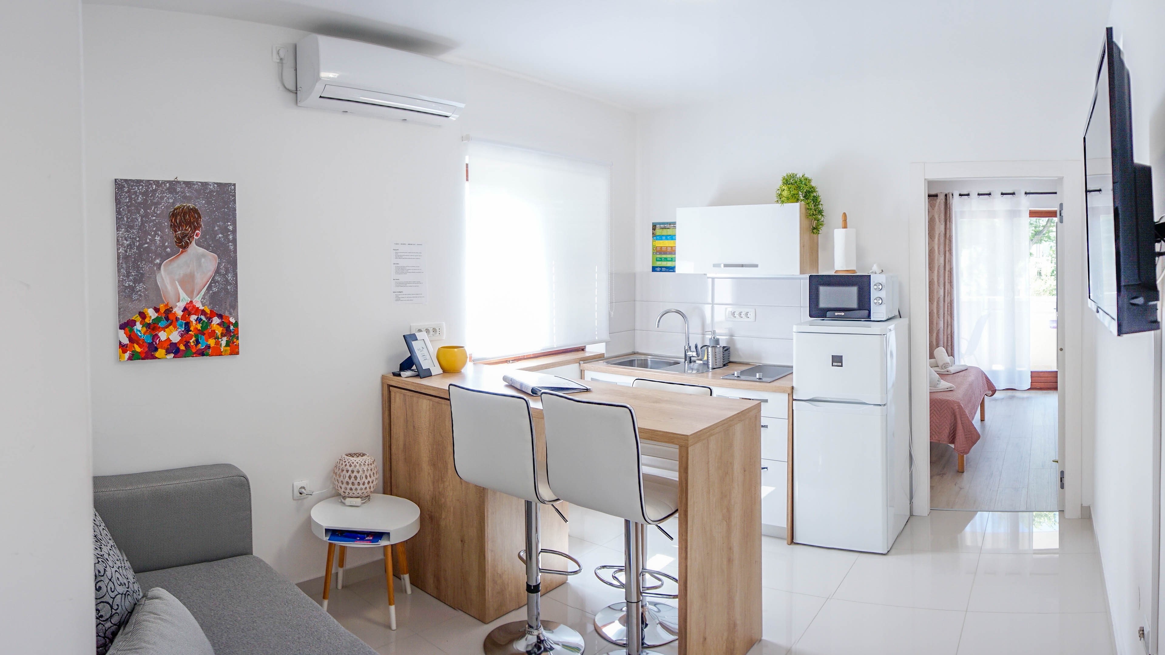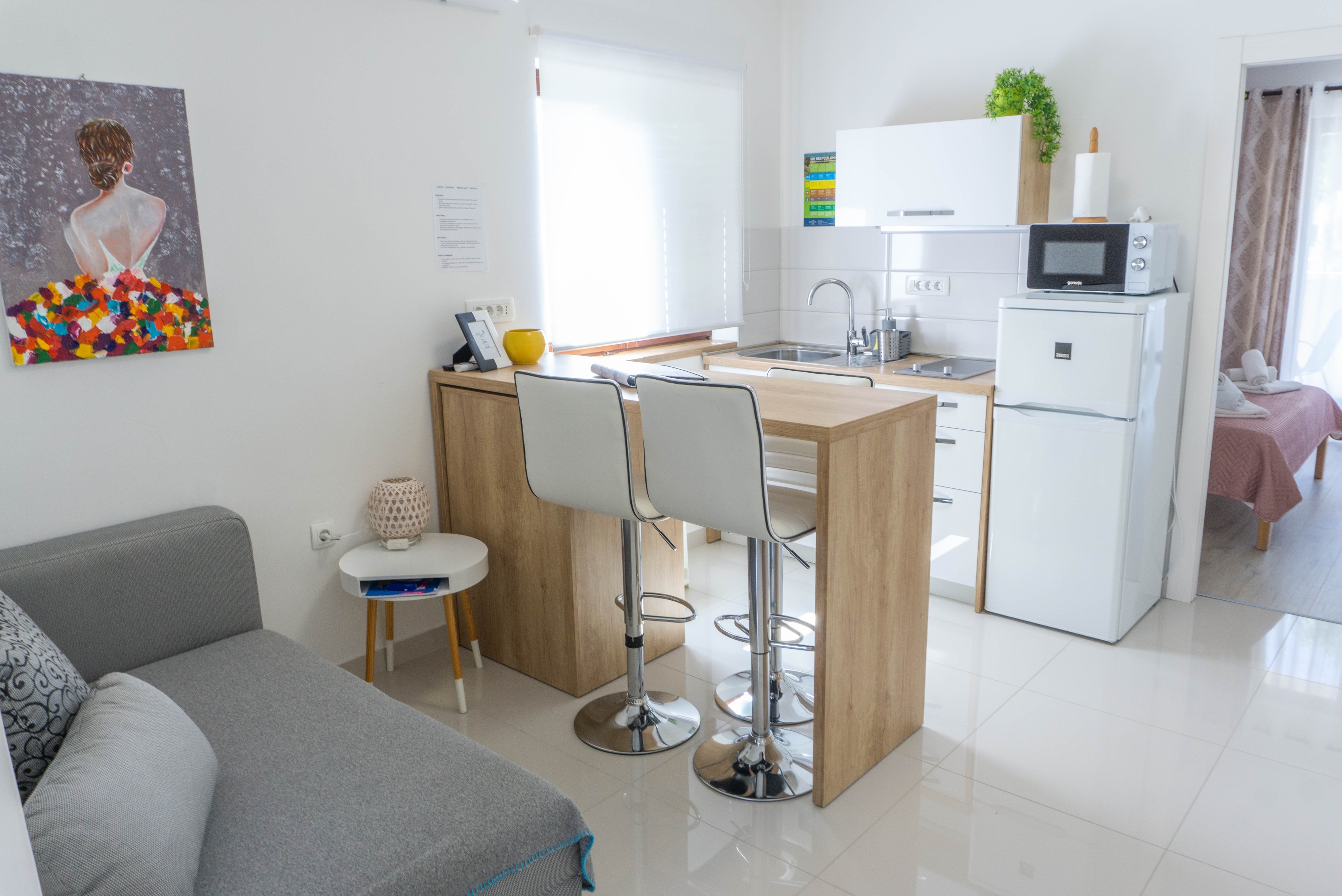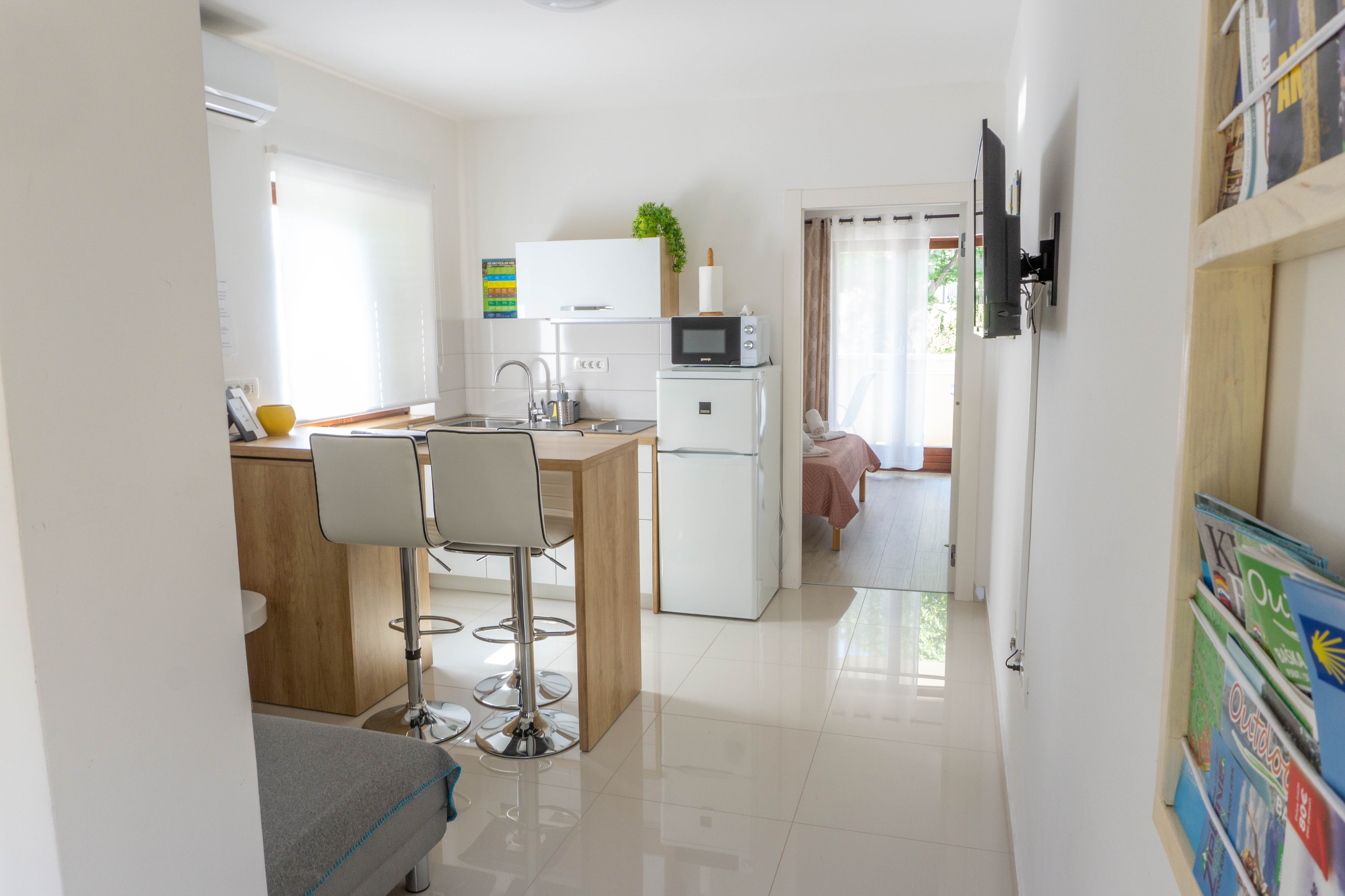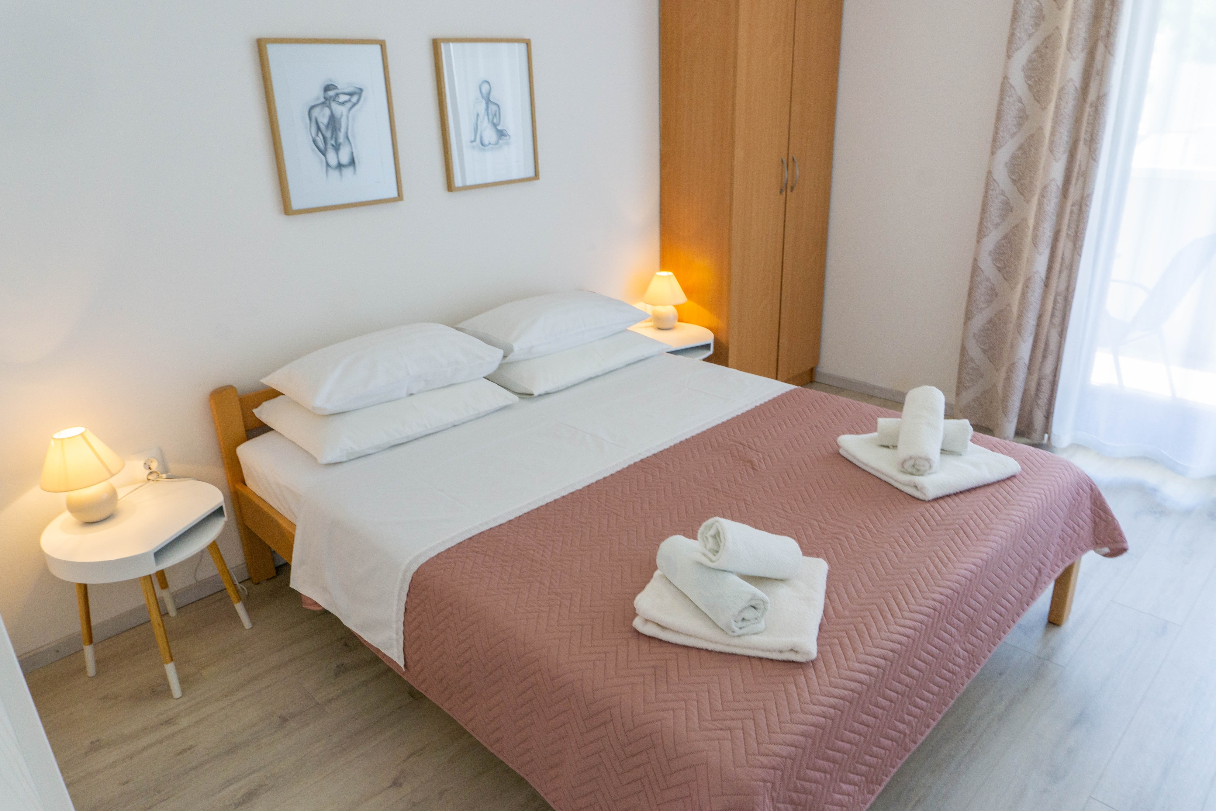Apartment can accommodate 2 guests. Beds are situated in 1 sleeping rooms, within 28m2. Guests can use a private terrace to enjoy the warm summer evenings. Food can be prepared using barbecue which is shared with other guests too. For the booked accommodation unit the deposit is paid directly to the owner upon check-in (deposit amount is displayed on the website) INCLUDED IN THE PRICE: tourist tax, final cleaning, air-conditioning, parking, internet, baby cot, hairdryer. OBLIGATORY ADDITIONAL COSTS: deposit (€100.00 one-time payment), short stay fee (surcharge depending on a number of booked nights: 30% - 1, 20% - 2, 10% - 3). The availability of additional services for your chosen dates of stay, as well as their prices (if none are listed) must be checked ahead of time. Any additional services not shown in the price calculation are payable directly to the property owner and only if used by the visitor.