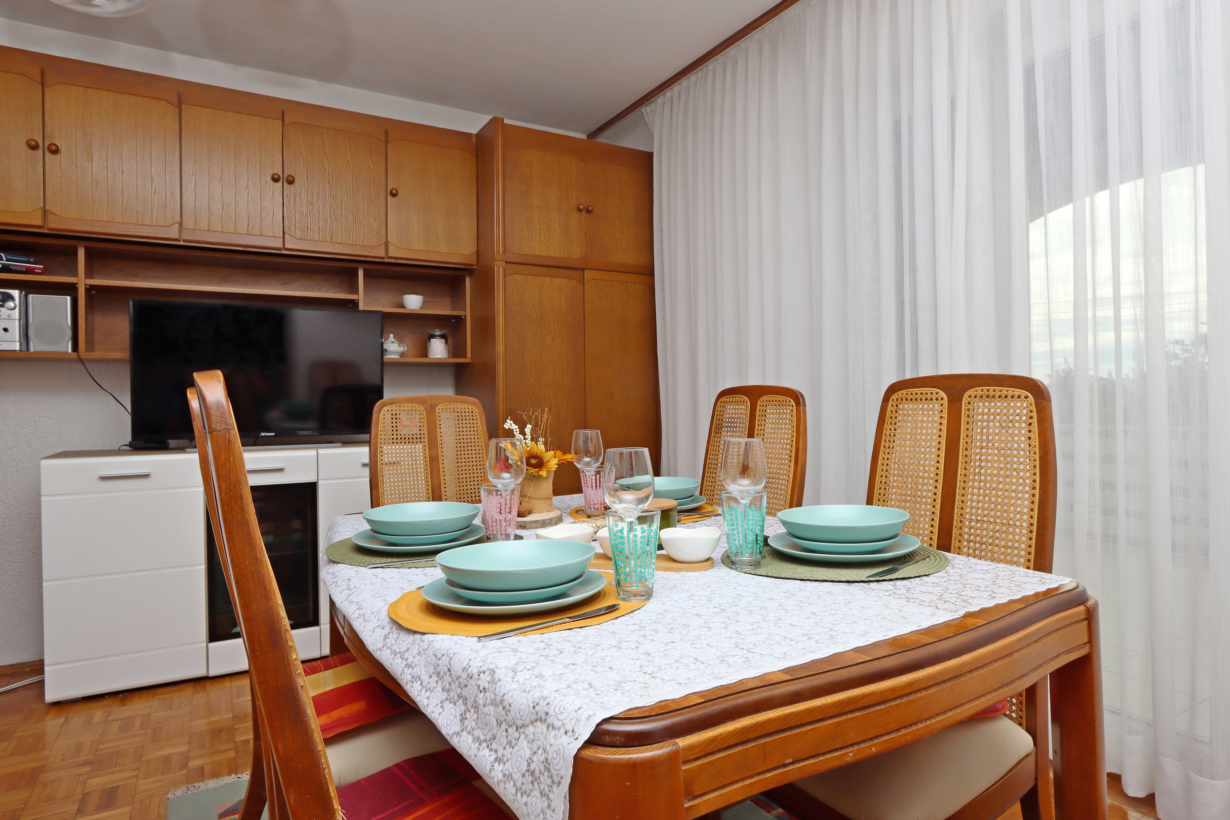 Apartment can accommodate 10 guests. Beds are situated in 5 sleeping rooms, within 114m2. Guests can use a private terrace to enjoy the warm summer evenings. The apartment offers the sea view. Food can be prepared using barbecue which is shared with other guests too. INCLUDED IN THE PRICE: tourist tax, final cleaning, air-conditioning, parking, internet, baby cot, iron, ironing board, hairdryer. OBLIGATORY ADDITIONAL COSTS: short stay fee (surcharge depending on a number of booked nights: 30% - 1, 20% - 2, 10% - 3). OPTIONAL ADDITIONAL COSTS: laundry (€10.00 washing). The availability of additional services for your chosen dates of stay, as well as their prices (if none are listed) must be checked ahead of time. Any additional services not shown in the price calculation are payable directly to the property owner and only if used by the visitor.
