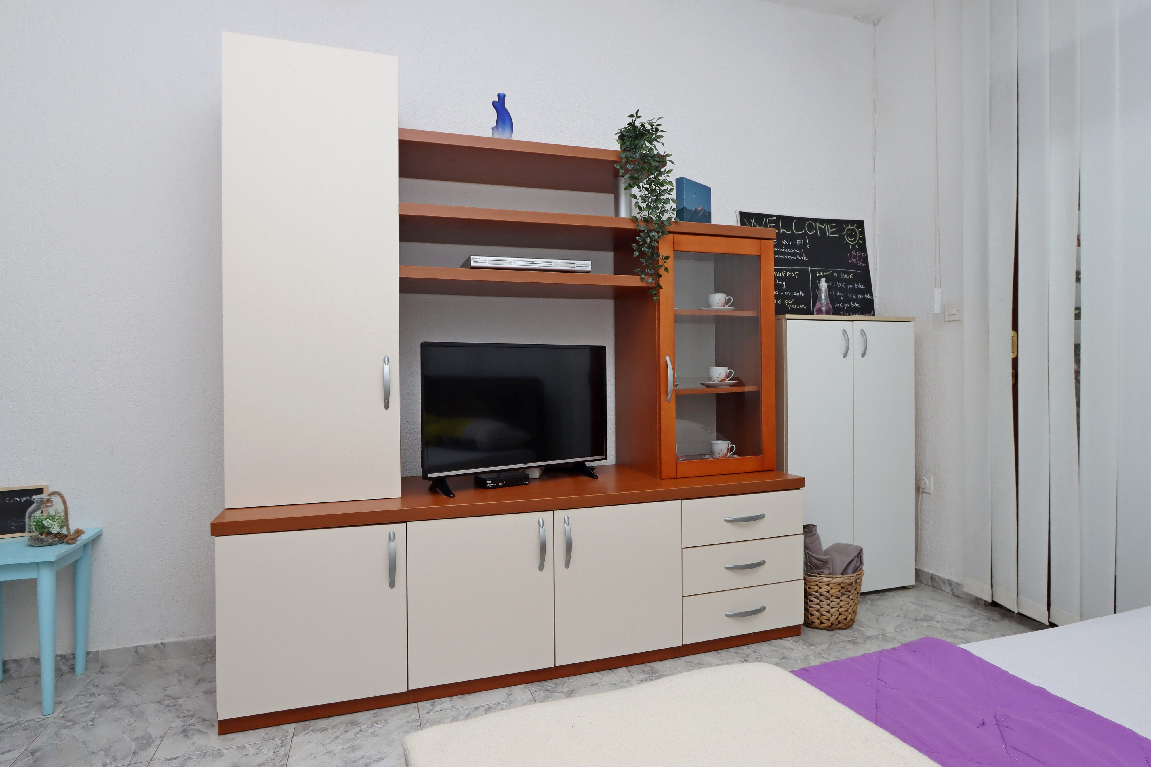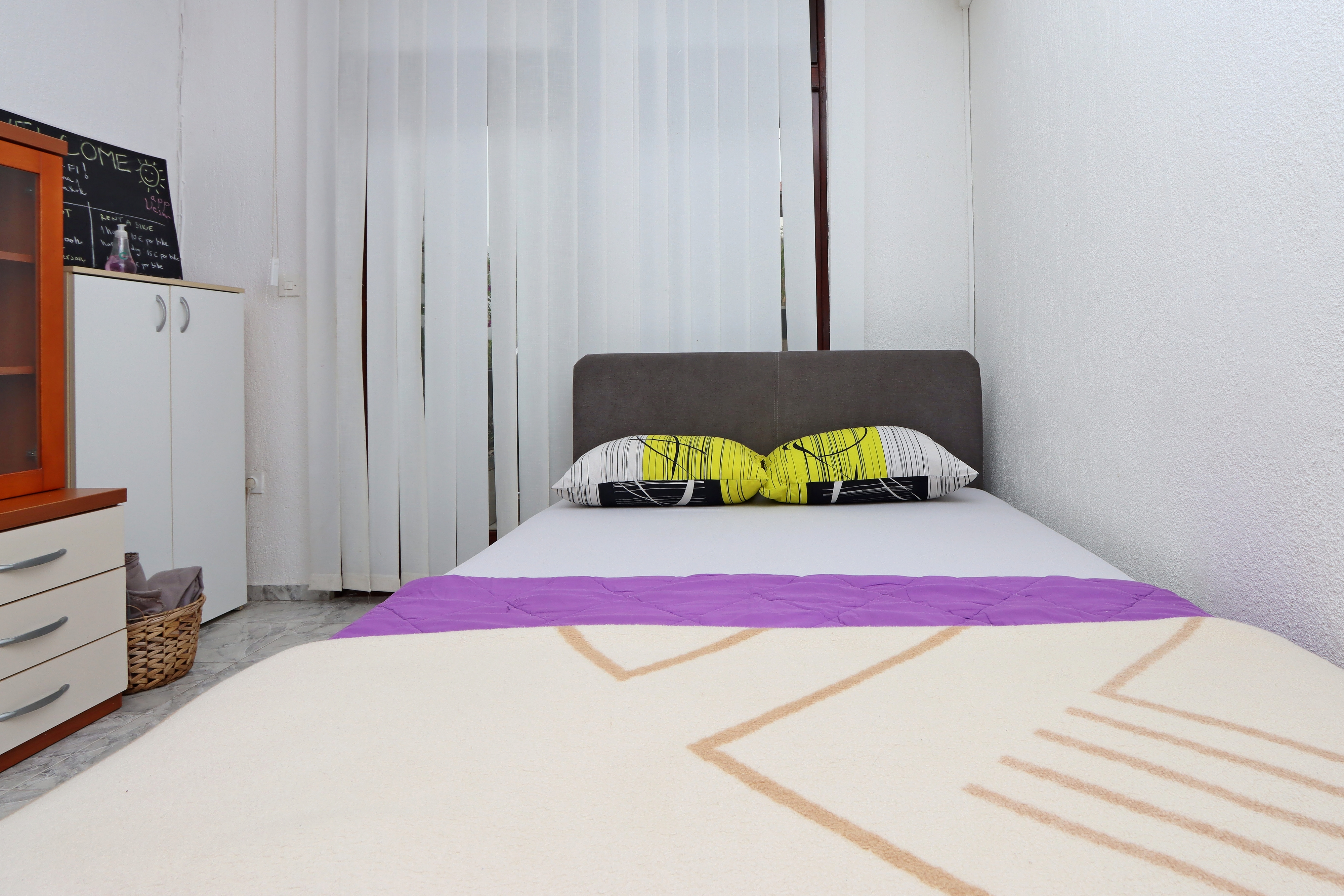 Studio flat can accommodate 2 guests. Beds are situated in 1 sleeping rooms, within 21m2. Guests can use a private terrace to enjoy the warm summer evenings. Food can be prepared using barbecue which is shared with other guests too. INCLUDED IN THE PRICE: tourist tax, final cleaning, air-conditioning, parking, internet, baby cot, iron, ironing board, hairdryer. OBLIGATORY ADDITIONAL COSTS: short stay fee (surcharge depending on a number of booked nights: 30% - 1, 20% - 2, 10% - 3). OPTIONAL ADDITIONAL COSTS: laundry (€10.00 washing). The availability of additional services for your chosen dates of stay, as well as their prices (if none are listed) must be checked ahead of time. Any additional services not shown in the price calculation are payable directly to the property owner and only if used by the visitor.