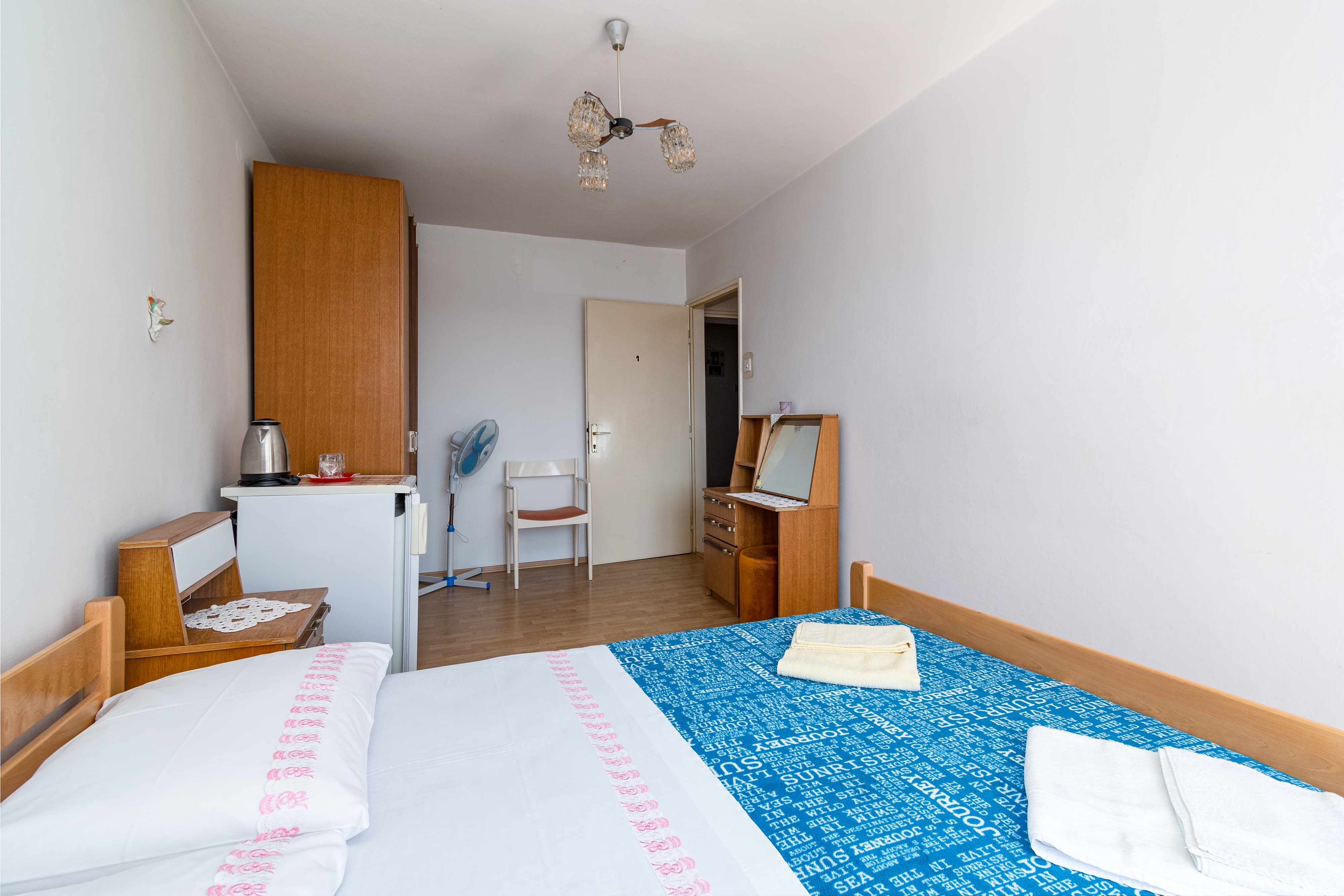Room can accommodate 2 guests. Beds are situated in 1 sleeping rooms, within 18m2. Guests can use a private terrace to enjoy the warm summer evenings. Food can be prepared using barbecue which is shared with other guests too. Reserved accommodation unit is a room with its own bathroom and there is no usage of kitchen. Notthe rooms of the booked accommodation unit are connectedone whole. Some of the rooms of the accommodation unit are not connected with the rest of the unit. INCLUDED IN THE PRICE: tourist tax, final cleaning, air-conditioning, parking, internet, iron, ironing board. OBLIGATORY ADDITIONAL COSTS: short stay fee (surcharge depending on a number of booked nights: 30% - 1, 20% - 2, 10% - 3). OPTIONAL ADDITIONAL COSTS: additional bed (€10.00 per night). The availability of additional services for your chosen dates of stay, as well as their prices (if none are listed) must be checked ahead of time. Any additional services not shown in the price calculation are payable directly to the property owner and only if used by the visitor. Discounts to the base price: free day 14=13 (for reservations of 14 or more days you get one free day for the stay until 31122026).