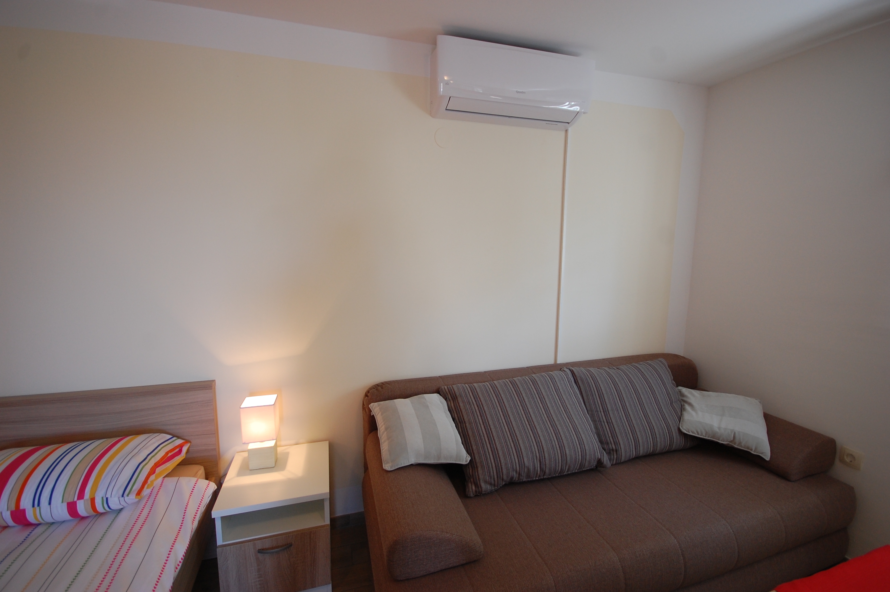 Studio flat can accommodate 3 guests. Beds are situated in living room, within 28m2. Guests can use a private balcony to enjoy the warm summer evenings. INCLUDED IN THE PRICE: tourist tax, final cleaning, air-conditioning, parking, internet. The availability of additional services for your chosen dates of stay, as well as their prices (if none are listed) must be checked ahead of time. Any additional services not shown in the price calculation are payable directly to the property owner and only if used by the visitor.