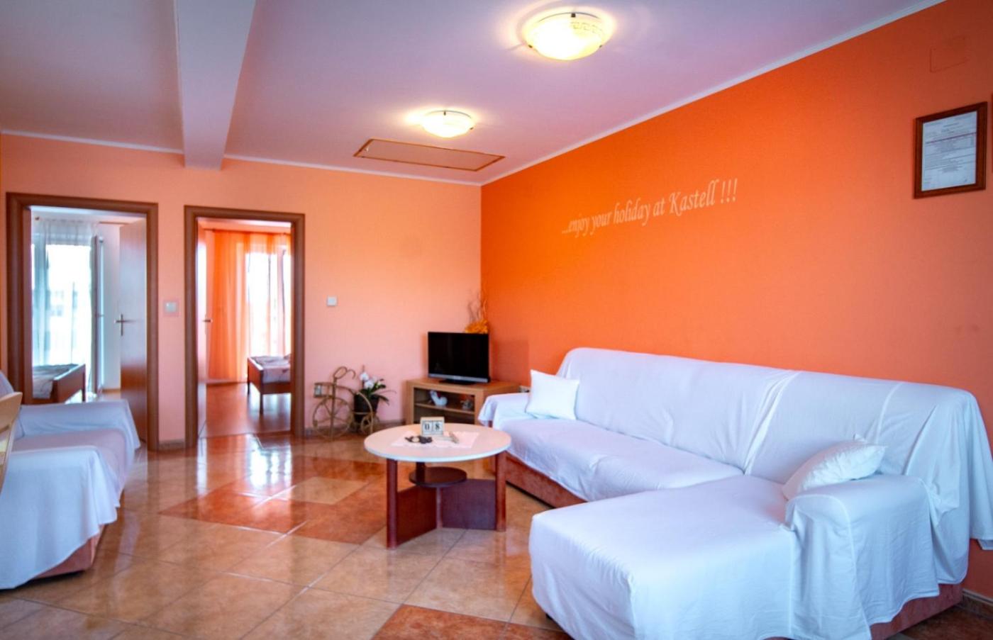 Two-Bedroom Apartment. This air-conditioned apartment consists of 1 living room, 2 separate bedrooms and 1 bathroom with a shower. Guests will find a refrigerator, a dishwasher, kitchenware and an oven in the well-fitted kitchen. The apartment also offers a barbecue. Featuring a balcony, this apartment also provides a washing machine, a tea and coffee maker and a TV with satellite channels. The unit offers 3 beds.
