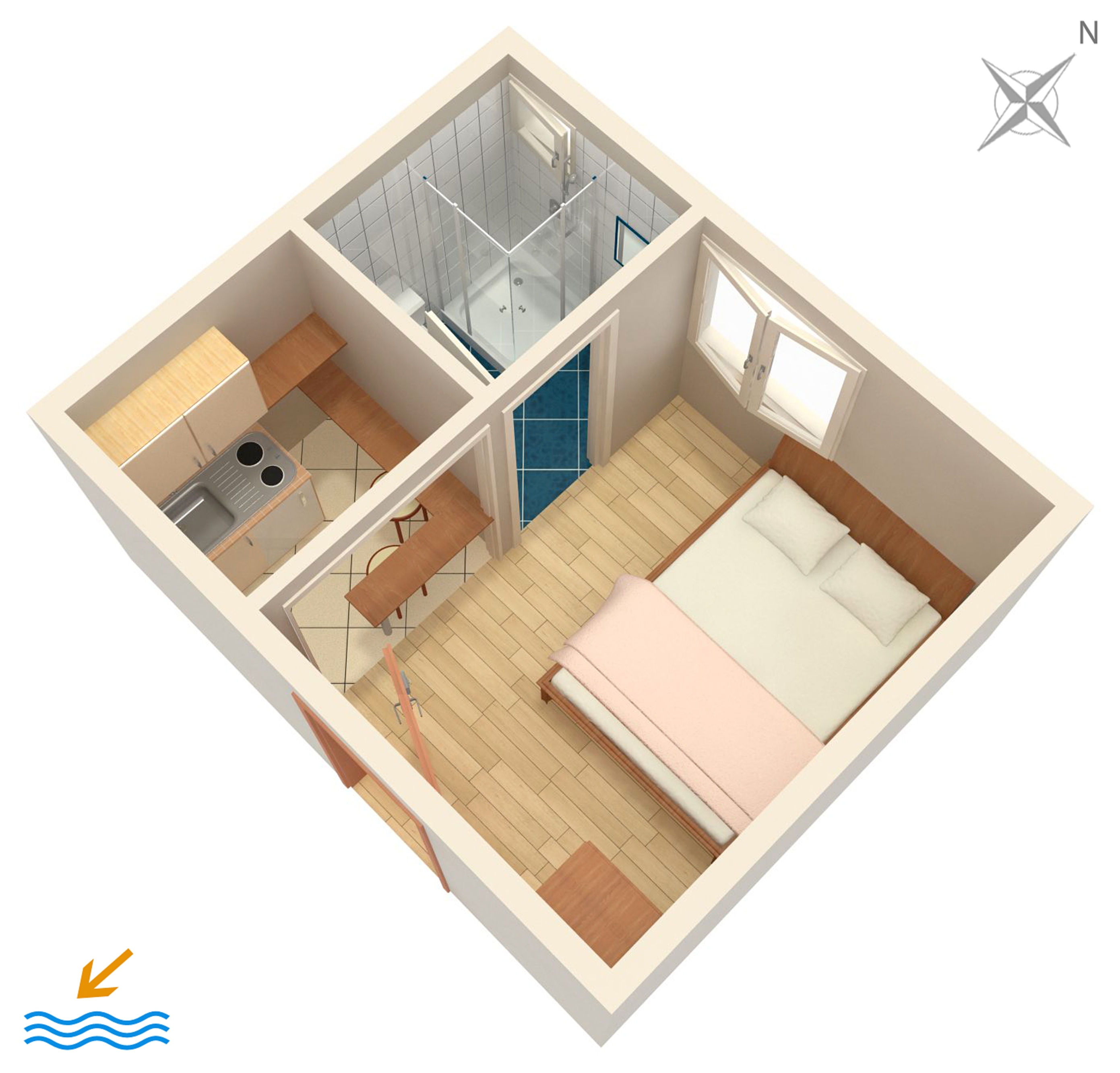 Studio flat can accommodate 2 guests. Beds are situated in 1 sleeping rooms, within 10m2. Food can be prepared using barbecue which is shared with other guests too. There is no balcony or terrace in the reserved accommodation unit. INCLUDED IN THE PRICE: tourist tax, final cleaning, parking, internet, iron, ironing board, hairdryer, portable barbecue. OBLIGATORY ADDITIONAL COSTS: short stay fee (surcharge depending on a number of booked nights: 30% - 1, 20% - 2, 10% - 3). The availability of additional services for your chosen dates of stay, as well as their prices (if none are listed) must be checked ahead of time. Any additional services not shown in the price calculation are payable directly to the property owner and only if used by the visitor.