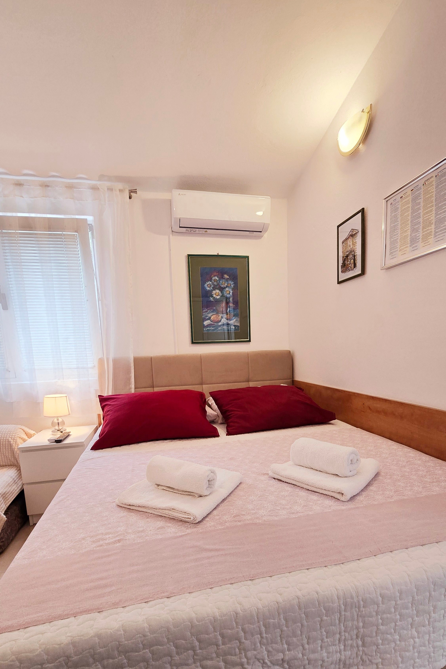 Studio flat can accommodate 2 guests. Beds are situated in 1 sleeping rooms, within 21m2. Guests can use a private balcony to enjoy the warm summer evenings. Food can be prepared using barbecue which is shared with other guests too. INCLUDED IN THE PRICE: tourist tax, final cleaning, air-conditioning, parking, internet, iron, ironing board, hairdryer, portable barbecue. The availability of additional services for your chosen dates of stay, as well as their prices (if none are listed) must be checked ahead of time. Any additional services not shown in the price calculation are payable directly to the property owner and only if used by the visitor. Discounts to the base price: free day 14=13 (for reservations of 14 or more days you get one free day for the stay until 31122026).