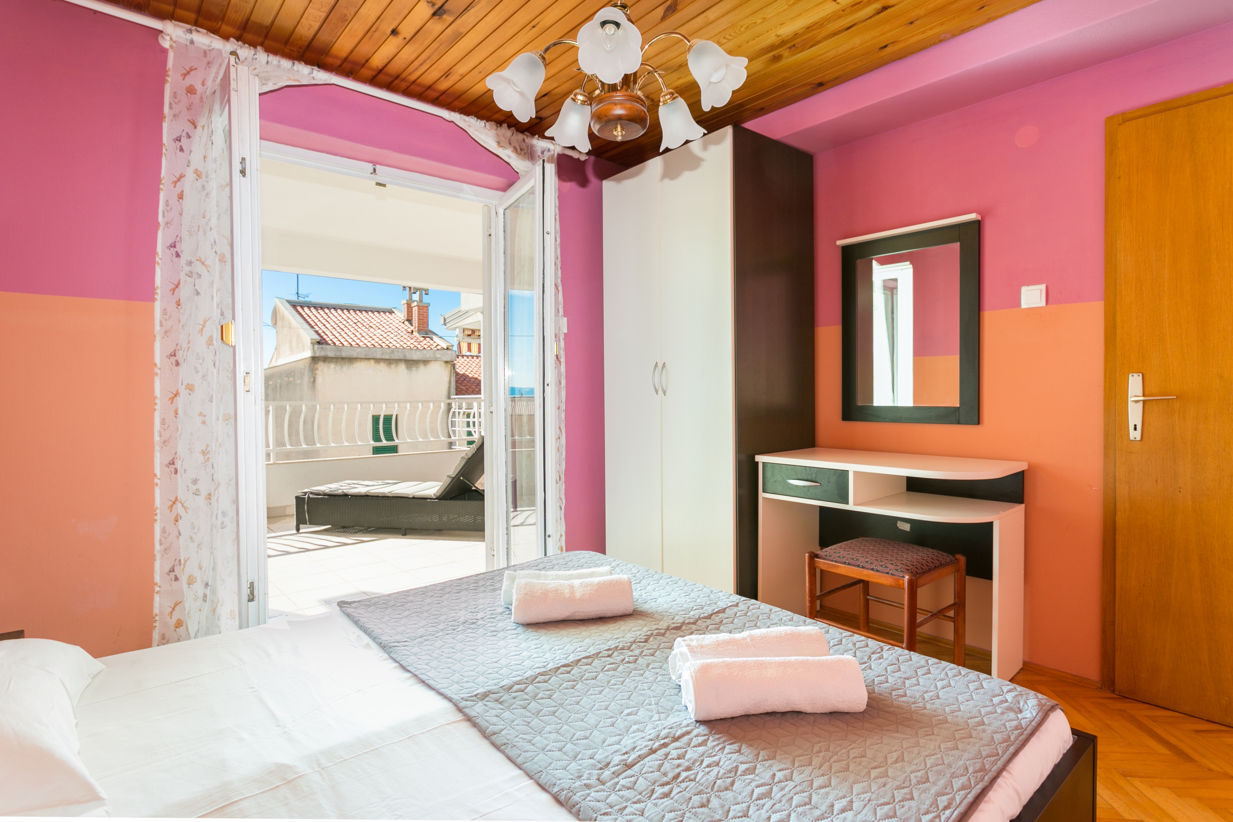Apartment can accommodate 4 guests. Beds are situated in 2 sleeping rooms, within 41m2. Guests can use a private terrace to enjoy the warm summer evenings. The apartment offers the sea view. Food can be prepared using barbecue which is shared with other guests too. INCLUDED IN THE PRICE: tourist tax, final cleaning, air-conditioning, parking, internet, iron, ironing board, hairdryer. OBLIGATORY ADDITIONAL COSTS: short stay fee (surcharge depending on a number of booked nights: 30% - 1, 20% - 2, 10% - 3). The availability of additional services for your chosen dates of stay, as well as their prices (if none are listed) must be checked ahead of time. Any additional services not shown in the price calculation are payable directly to the property owner and only if used by the visitor. Discounts to the base price: free day 14=13 (for reservations of 14 or more days you get one free day for the stay until 31122026).
