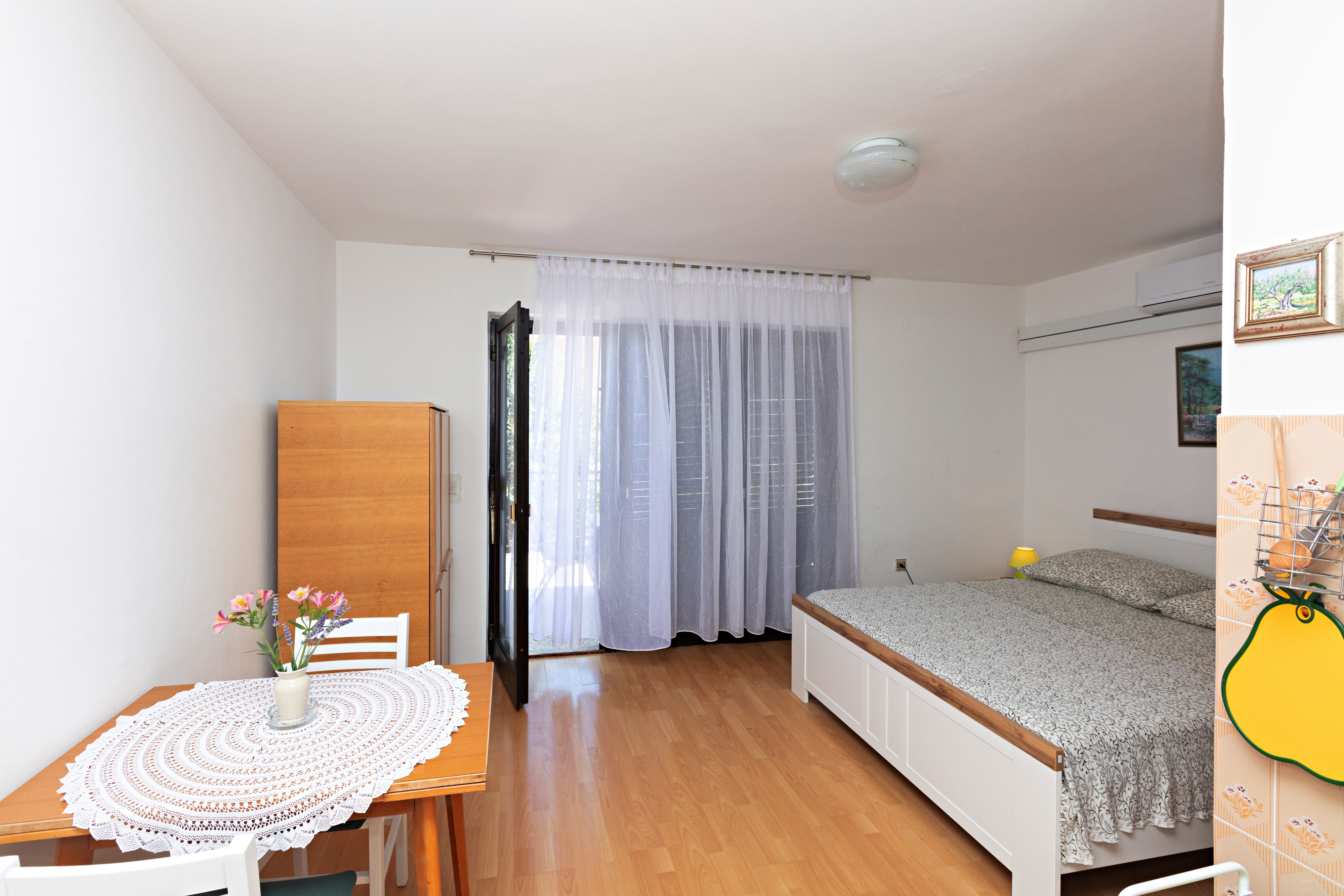 Studio flat can accommodate 2 guests. Beds are situated in 1 sleeping rooms, within 22m2. Guests can use a private terrace to enjoy the warm summer evenings. Food can be prepared using barbecue which is shared with other guests too. INCLUDED IN THE PRICE: tourist tax, final cleaning, air-conditioning, parking, internet, portable barbecue. OBLIGATORY ADDITIONAL COSTS: short stay fee (surcharge depending on a number of booked nights: 30% - 1, 20% - 2, 10% - 3). The availability of additional services for your chosen dates of stay, as well as their prices (if none are listed) must be checked ahead of time. Any additional services not shown in the price calculation are payable directly to the property owner and only if used by the visitor.