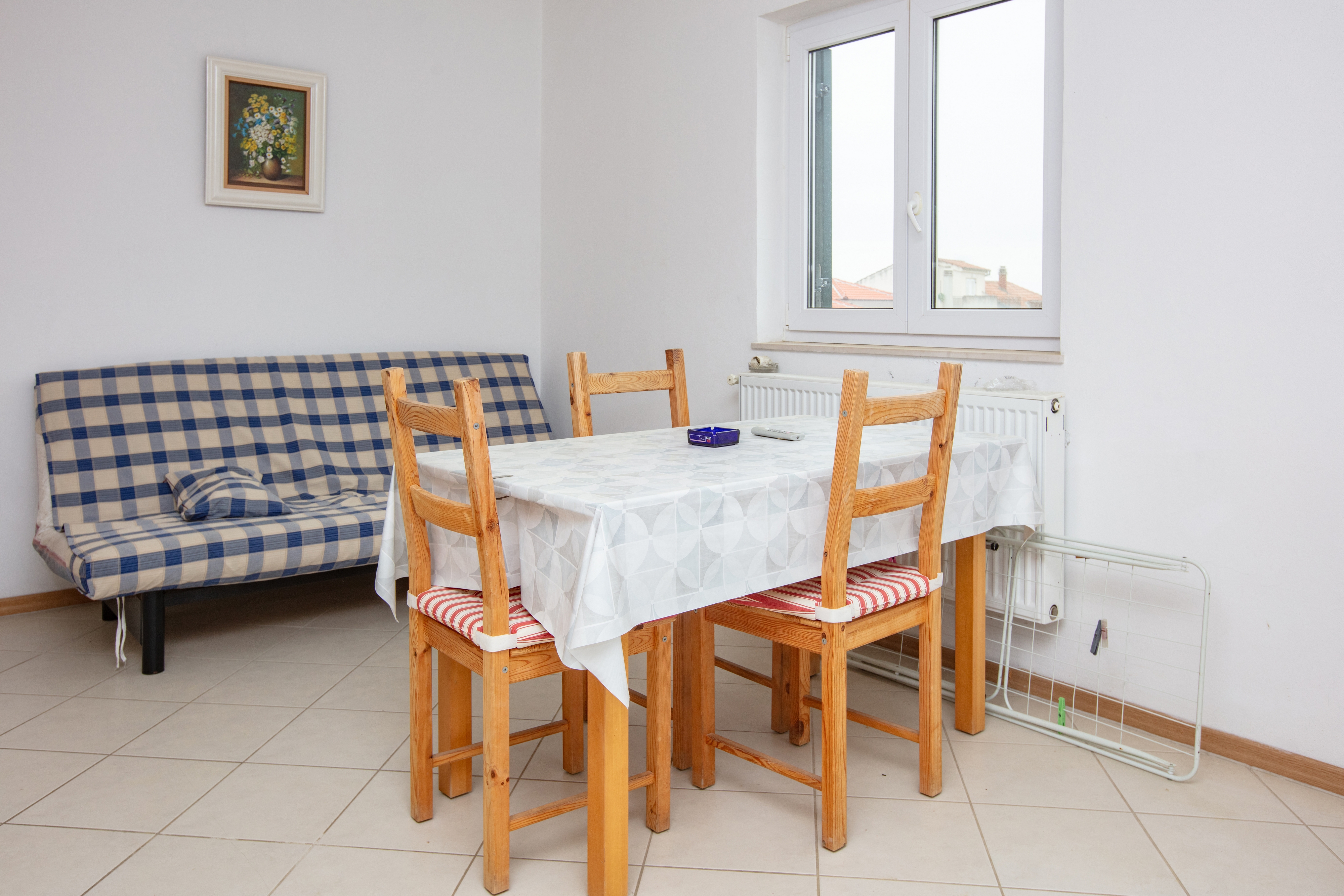 Apartment can accommodate 3 guests. Beds are situated in 1 sleeping rooms, but also in the living room, within 35m2. Guests can use a private balcony to enjoy the warm summer evenings. INCLUDED IN THE PRICE: tourist tax, final cleaning, parking, internet. OPTIONAL ADDITIONAL COSTS: air-conditioning (€5.00 per night). The availability of additional services for your chosen dates of stay, as well as their prices (if none are listed) must be checked ahead of time. Any additional services not shown in the price calculation are payable directly to the property owner and only if used by the visitor.