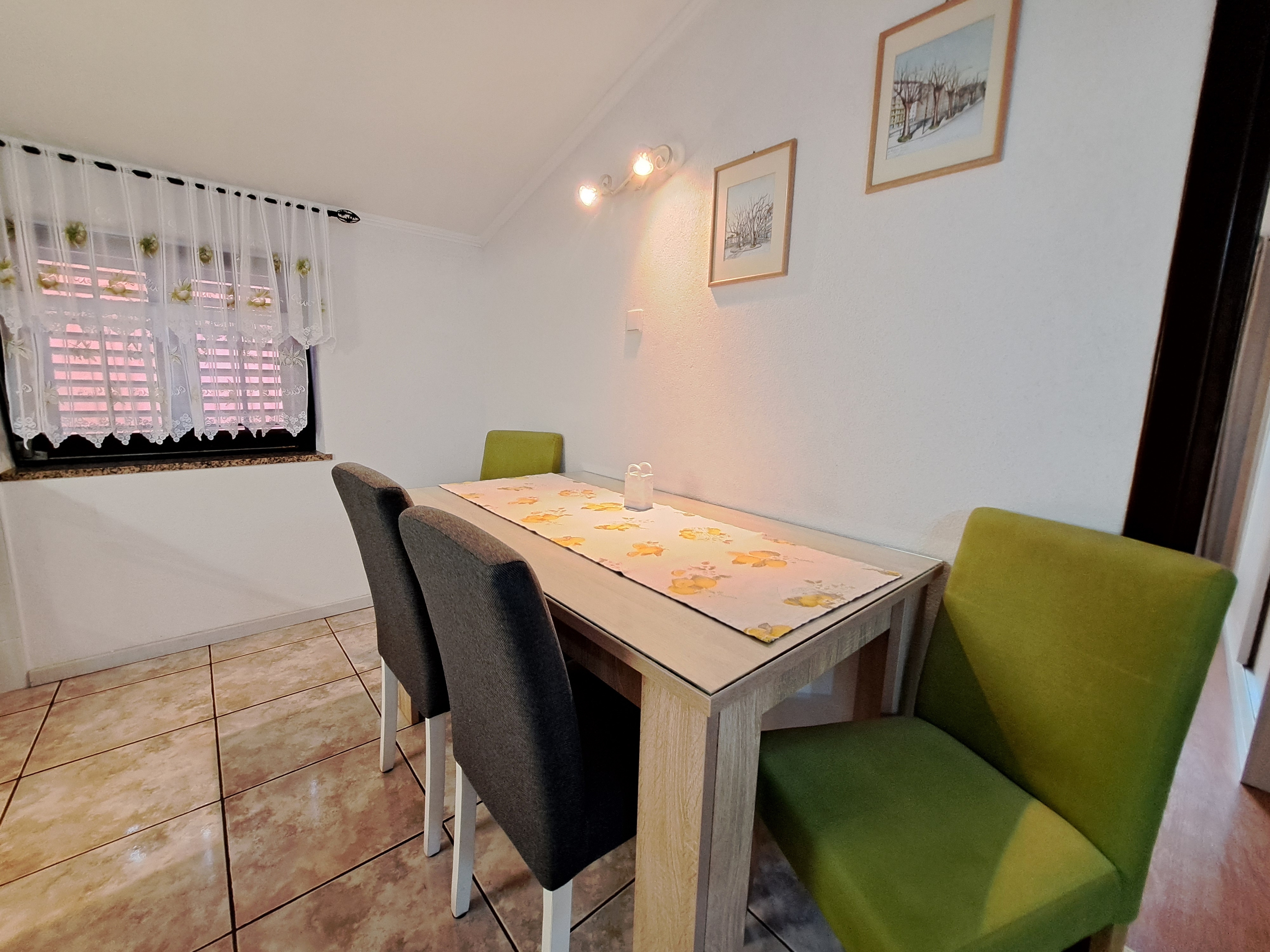Apartment can accommodate 5 guests. Beds are situated in 2 sleeping rooms, within 54m2. Guests can use a private terrace to enjoy the warm summer evenings. INCLUDED IN THE PRICE: tourist tax, final cleaning, air-conditioning, parking, internet, baby cot, iron, ironing board, hairdryer, sunshade. OBLIGATORY ADDITIONAL COSTS: short stay fee (surcharge depending on a number of booked nights: 30% - 1, 20% - 2, 10% - 3). OPTIONAL ADDITIONAL COSTS: laundry (€5.00 washing), bicycle (€25.00 daily (per piece)). The availability of additional services for your chosen dates of stay, as well as their prices (if none are listed) must be checked ahead of time. Any additional services not shown in the price calculation are payable directly to the property owner and only if used by the visitor. Discounts to the base price: free day 14=13 (for reservations of 14 or more days you get one free day for the stay until 31122026).