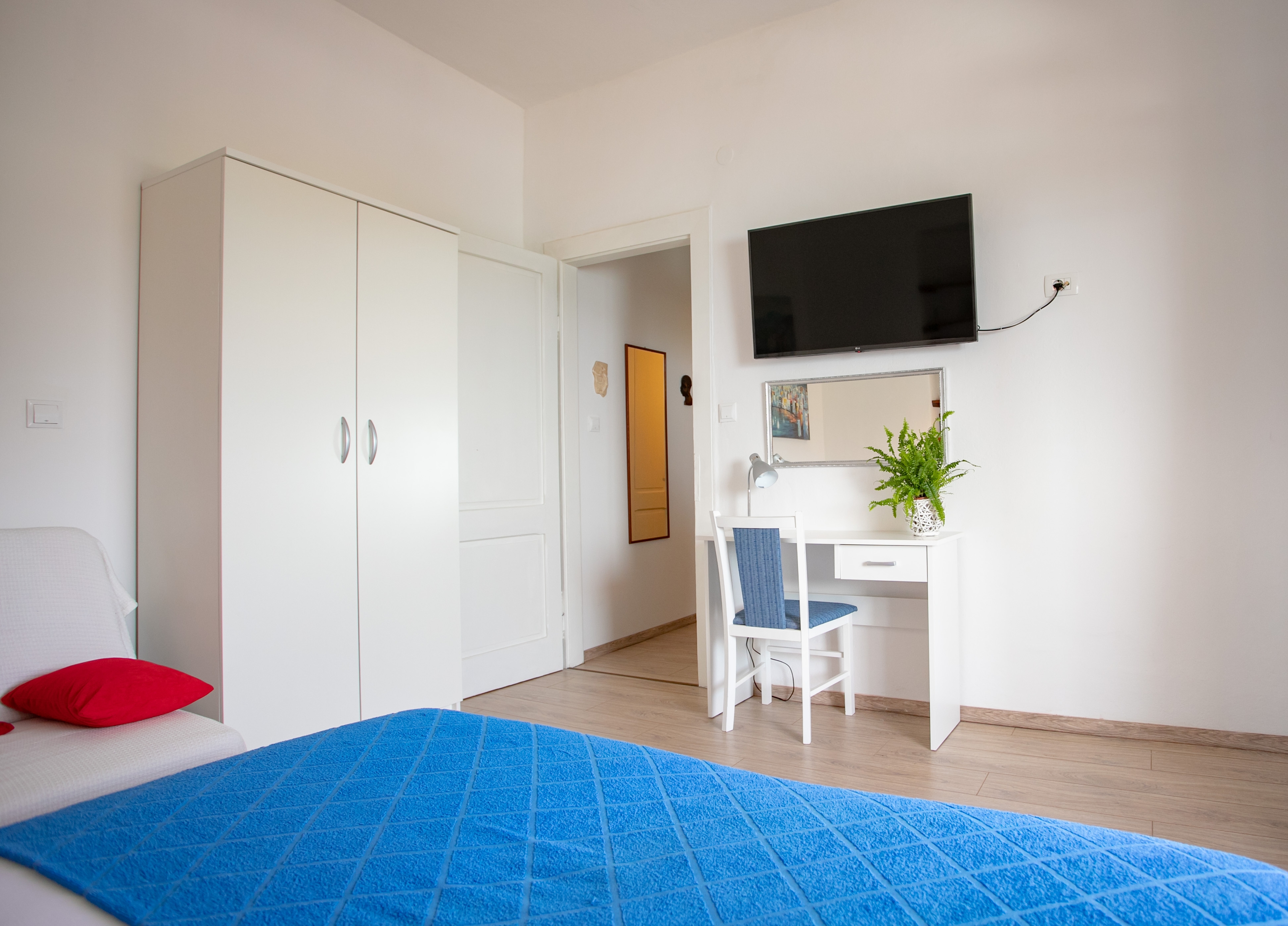 Apartment can accommodate 6 guests. Beds are situated in 3 sleeping rooms, within 85m2. Guests can use a private terrace to enjoy the warm summer evenings. The apartment offers the sea view. Food can be prepared using barbecue which is shared with other guests too. Other guests or hosts pass through the terrace of the booked accommodation unit. Some of the rooms of the accommodation unit are not connected with the rest of the unit. INCLUDED IN THE PRICE: tourist tax, final cleaning, air-conditioning, parking, internet, baby cot, iron, ironing board, hairdryer, portable barbecue, sunshade, sunchairs, 1 bed for children (included in the price). The availability of additional services for your chosen dates of stay, as well as their prices (if none are listed) must be checked ahead of time. Any additional services not shown in the price calculation are payable directly to the property owner and only if used by the visitor.