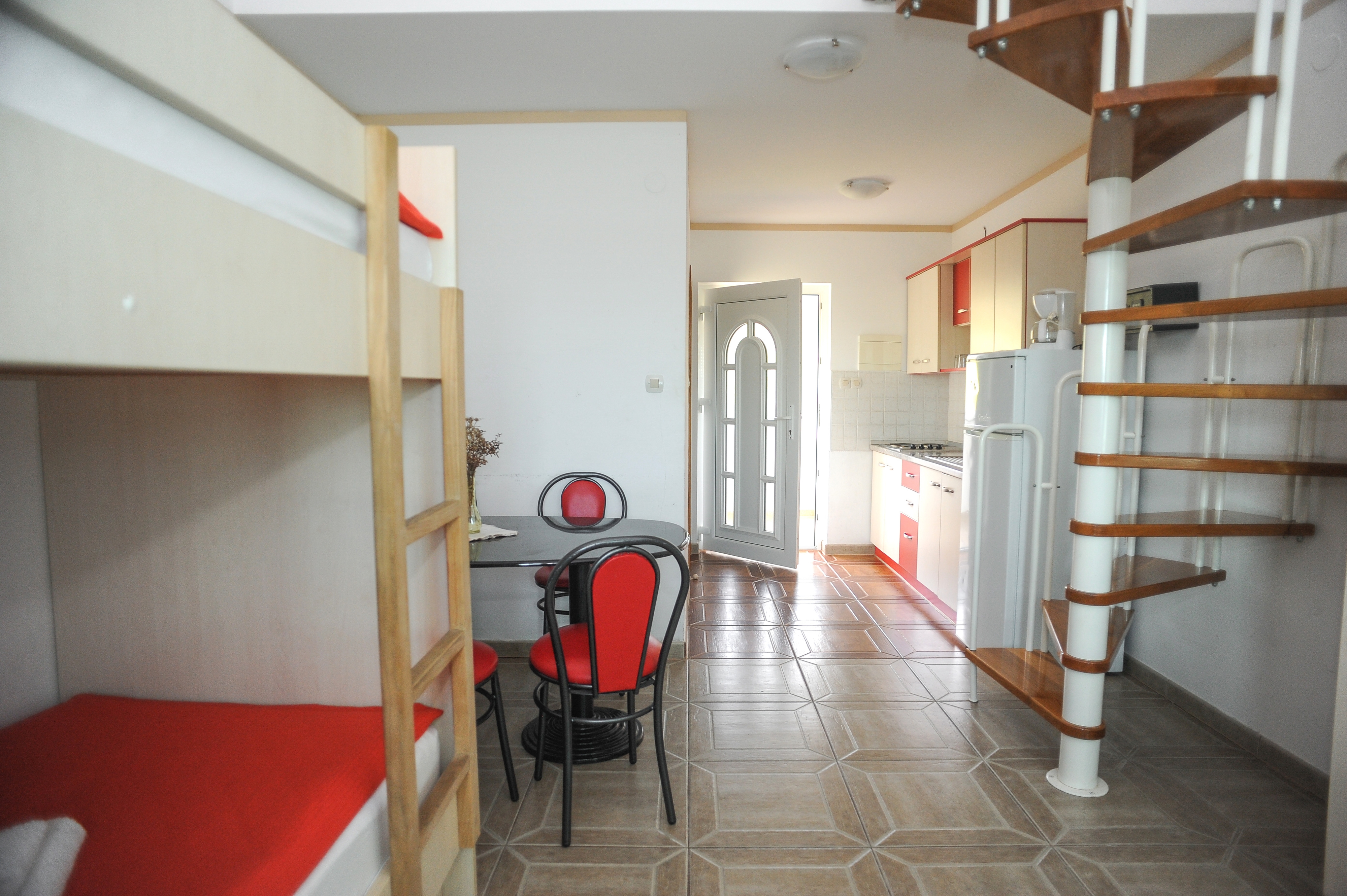 Apartment can accommodate 5 guests. Beds are situated in 1 sleeping rooms, but also in the dining room, within 34m2. Guests can use a private terrace to enjoy the warm summer evenings. The apartment offers the sea view. Shared pool is on disposal during stay. INCLUDED IN THE PRICE: final cleaning, air-conditioning, pool, parking, internet, hairdryer. OBLIGATORY ADDITIONAL COSTS: tourist tax (adults €0.93 - €1.60 nightperson, discount for children aged 12 - 17), short stay fee (surcharge depending on a number of booked nights: 30% - 1, 20% - 2, 10% - 3). OPTIONAL ADDITIONAL COSTS: breakfast (€10.00, a 50% discount for children aged 4 to 12 years, Children up to age 4 free of charge), half-board (€30.00, a 50% discount for children aged 4 to 12 years, Children up to age 4 free of charge), laundry (€20.00 washing), additional bed (€15.00 per night). The availability of additional services for your chosen dates of stay, as well as their prices (if none are listed) must be checked ahead of time. Any additional services not shown in the price calculation are payable directly to the property owner and only if used by the visitor. Discounts to the base price: free day 21=19 (for reservations of 21 or more days you get 2 free days for the stay until 31122026).