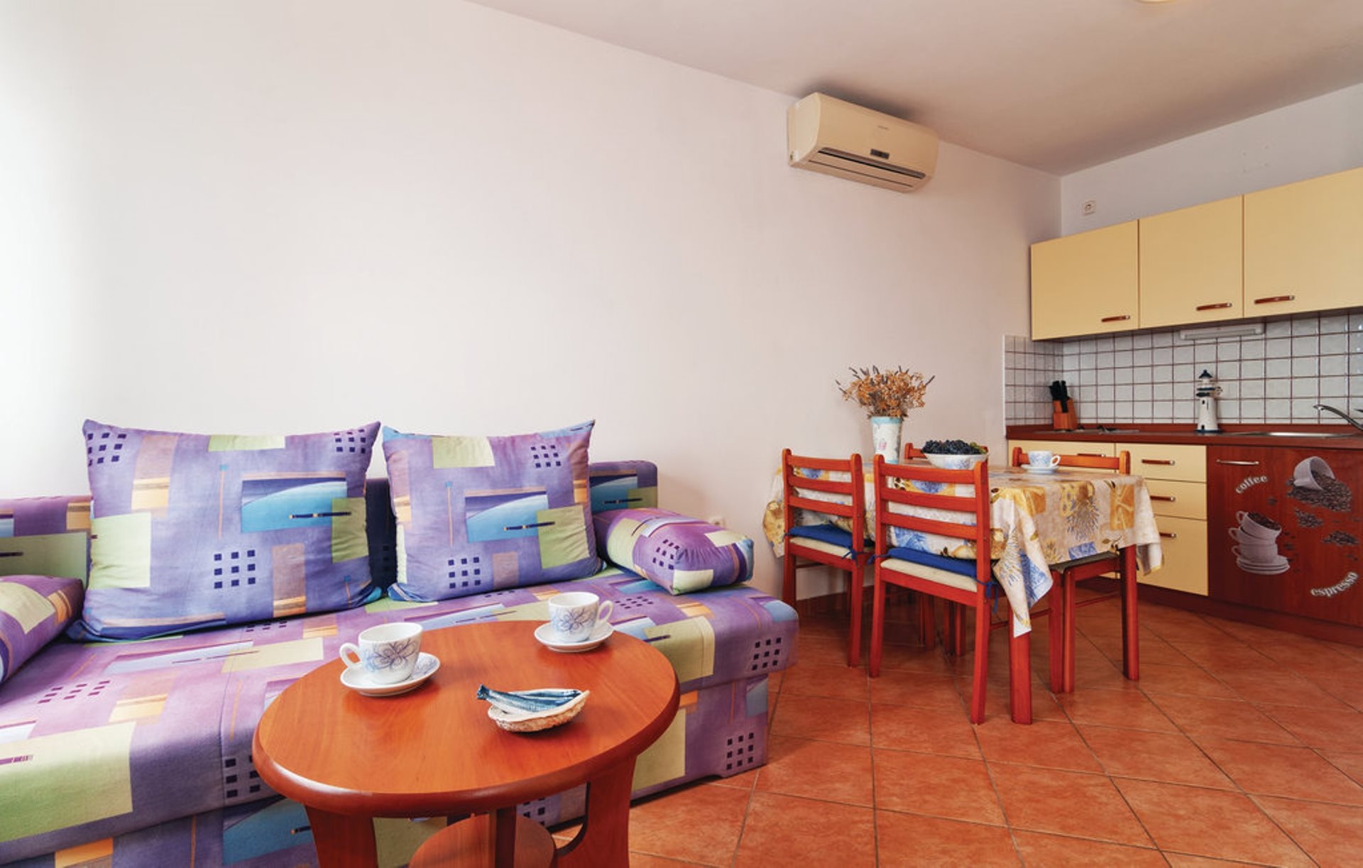 Apartment can accommodate 4 guests. Beds are situated in 1 sleeping rooms, but also in the living room, within 32m2. Guests can use a private terrace to enjoy the warm summer evenings. The apartment offers the sea view. Food can be prepared using barbecue which is shared with other guests too. This accommodation unit welcomes pets at an additional charge. INCLUDED IN THE PRICE: tourist tax, final cleaning, air-conditioning, parking, internet, baby cot. OPTIONAL ADDITIONAL COSTS: laundry (€5.00 washing), pets (€10.00 per night). The availability of additional services for your chosen dates of stay, as well as their prices (if none are listed) must be checked ahead of time. Any additional services not shown in the price calculation are payable directly to the property owner and only if used by the visitor.