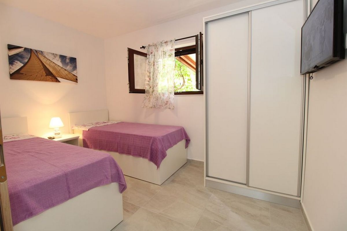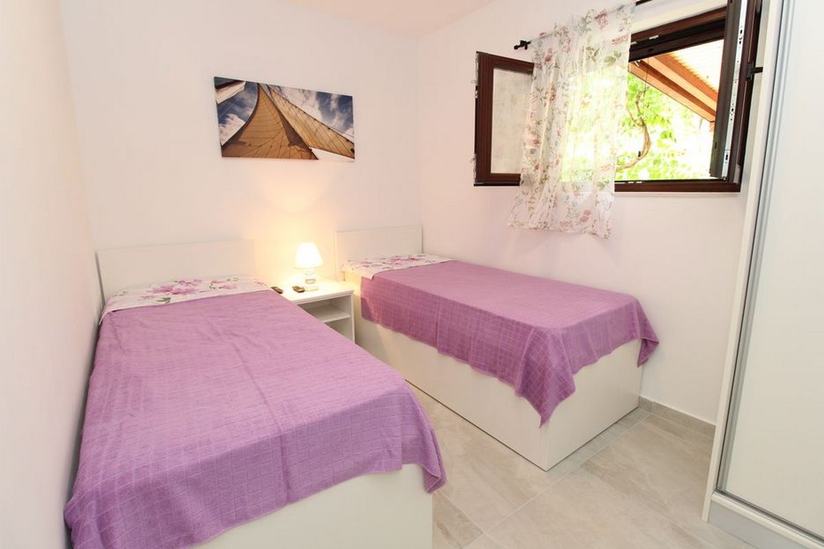 Apartment can accommodate 4 guests. Beds are situated in 2 sleeping rooms, within 40m2. Guests can use a private terrace to enjoy the warm summer evenings. The apartment offers the sea view. Food can be prepared using barbecue which is shared with other guests too. This accommodation unit welcomes pets at an additional charge. INCLUDED IN THE PRICE: tourist tax, final cleaning, air-conditioning, parking, internet, laundry, baby cot, iron, ironing board, hairdryer. OBLIGATORY ADDITIONAL COSTS: short stay fee (surcharge depending on a number of booked nights: 30% - 1, 20% - 2, 10% - 3). OPTIONAL ADDITIONAL COSTS: boat (€200.00 per night), pets (€10.00 per night). The availability of additional services for your chosen dates of stay, as well as their prices (if none are listed) must be checked ahead of time. Any additional services not shown in the price calculation are payable directly to the property owner and only if used by the visitor.