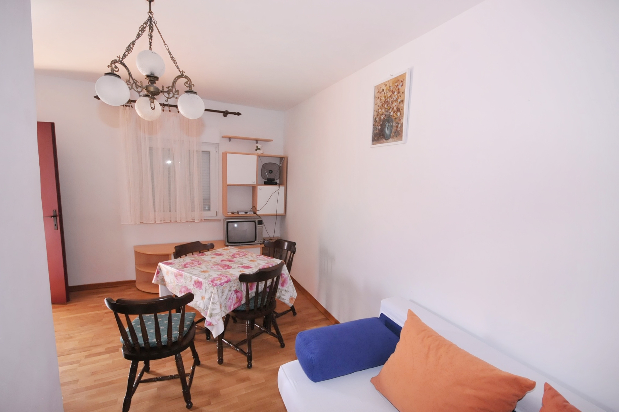 Apartment can accommodate 4 guests. Beds are situated in 1 sleeping rooms, but also in the dining room, within 39m2. Guests can use a private terrace to enjoy the warm summer evenings. The apartment offers the sea view. Food can be prepared using barbecue which is shared with other guests too. Other guests or hosts pass through the terrace of the booked accommodation unit. For the booked accommodation unit the deposit is paid directly to the owner upon check-in (deposit amount is displayed on the website) INCLUDED IN THE PRICE: tourist tax, final cleaning, parking, internet, baby cot, ironing board, hairdryer. OBLIGATORY ADDITIONAL COSTS: deposit (€100.00 one-time payment), short stay fee (surcharge depending on a number of booked nights: 30% - 1, 20% - 2, 10% - 3). OPTIONAL ADDITIONAL COSTS: air-conditioning (€2.00 per night), boat mooring (€5.00 per night). The availability of additional services for your chosen dates of stay, as well as their prices (if none are listed) must be checked ahead of time. Any additional services not shown in the price calculation are payable directly to the property owner and only if used by the visitor.