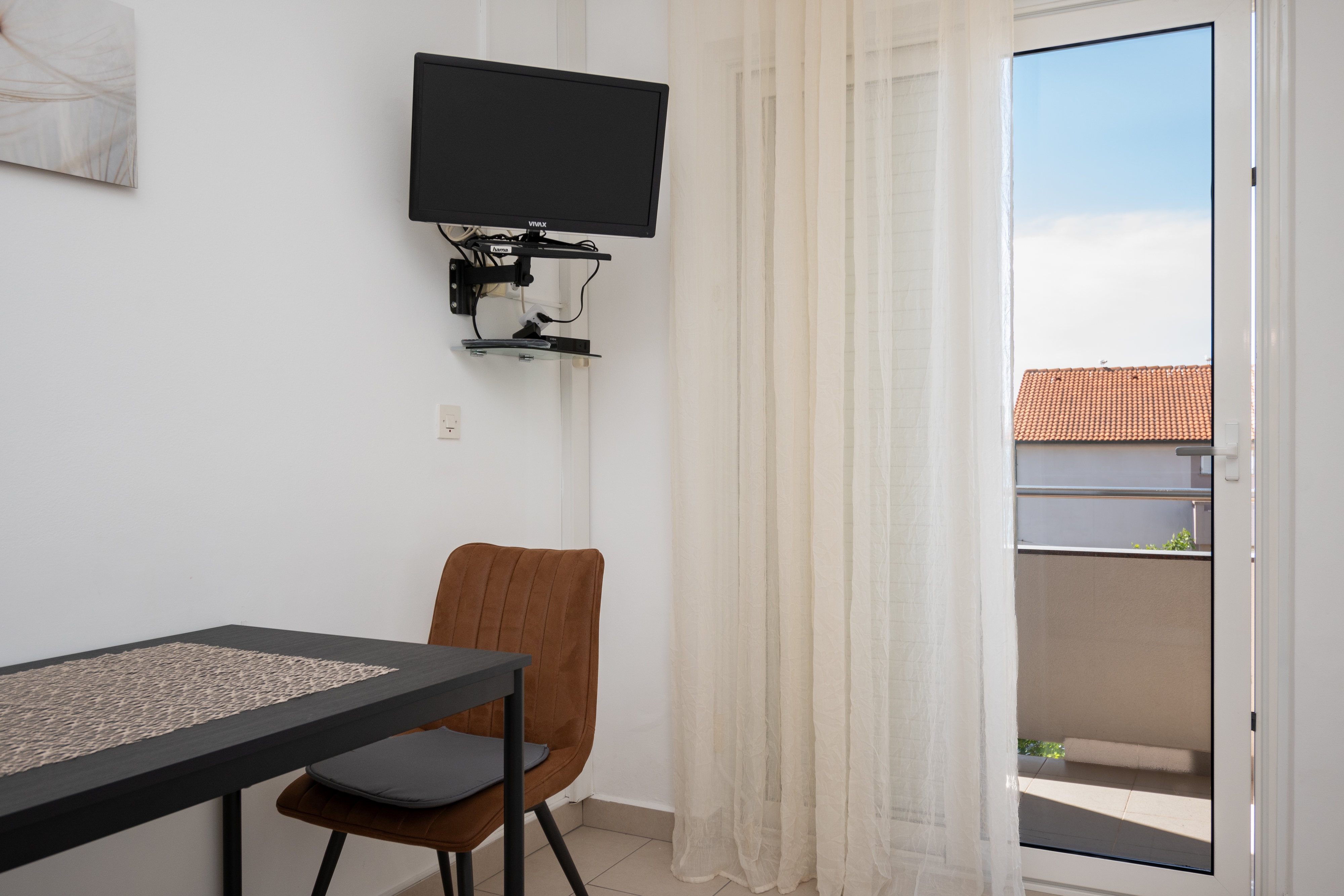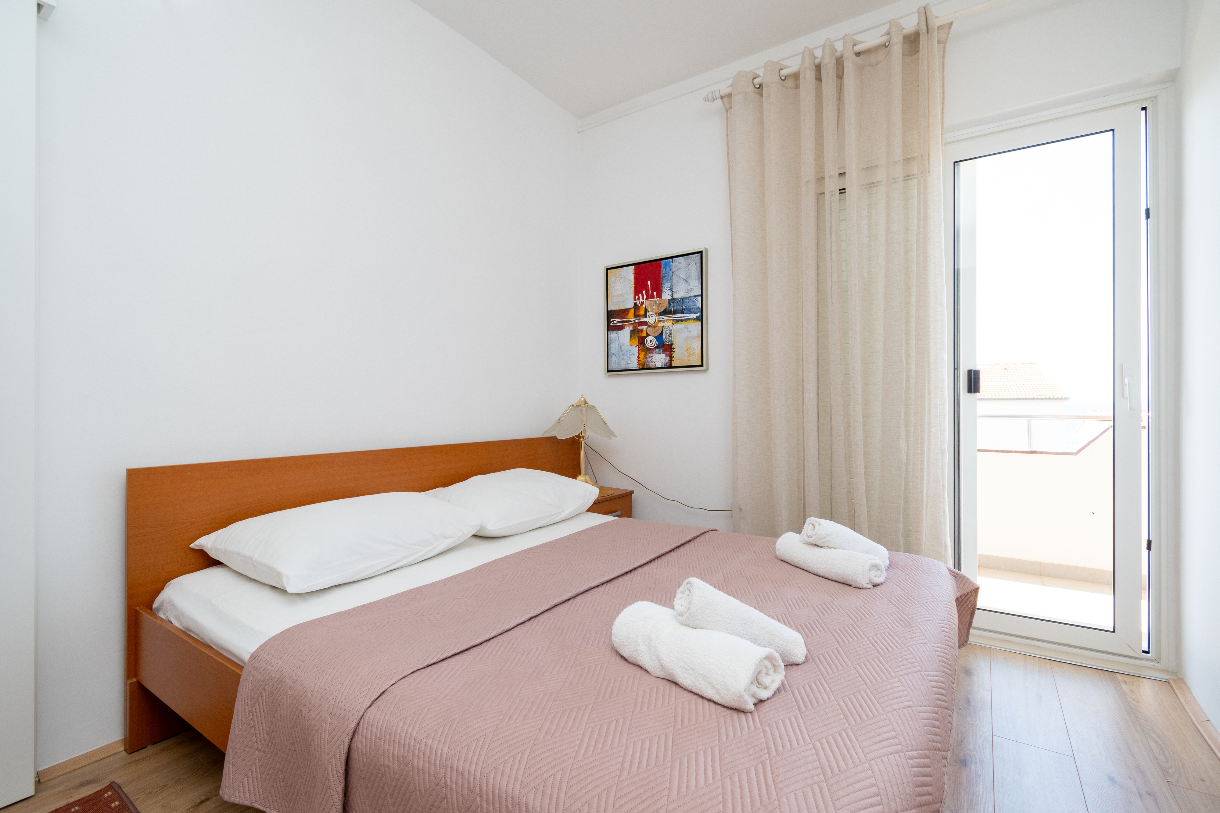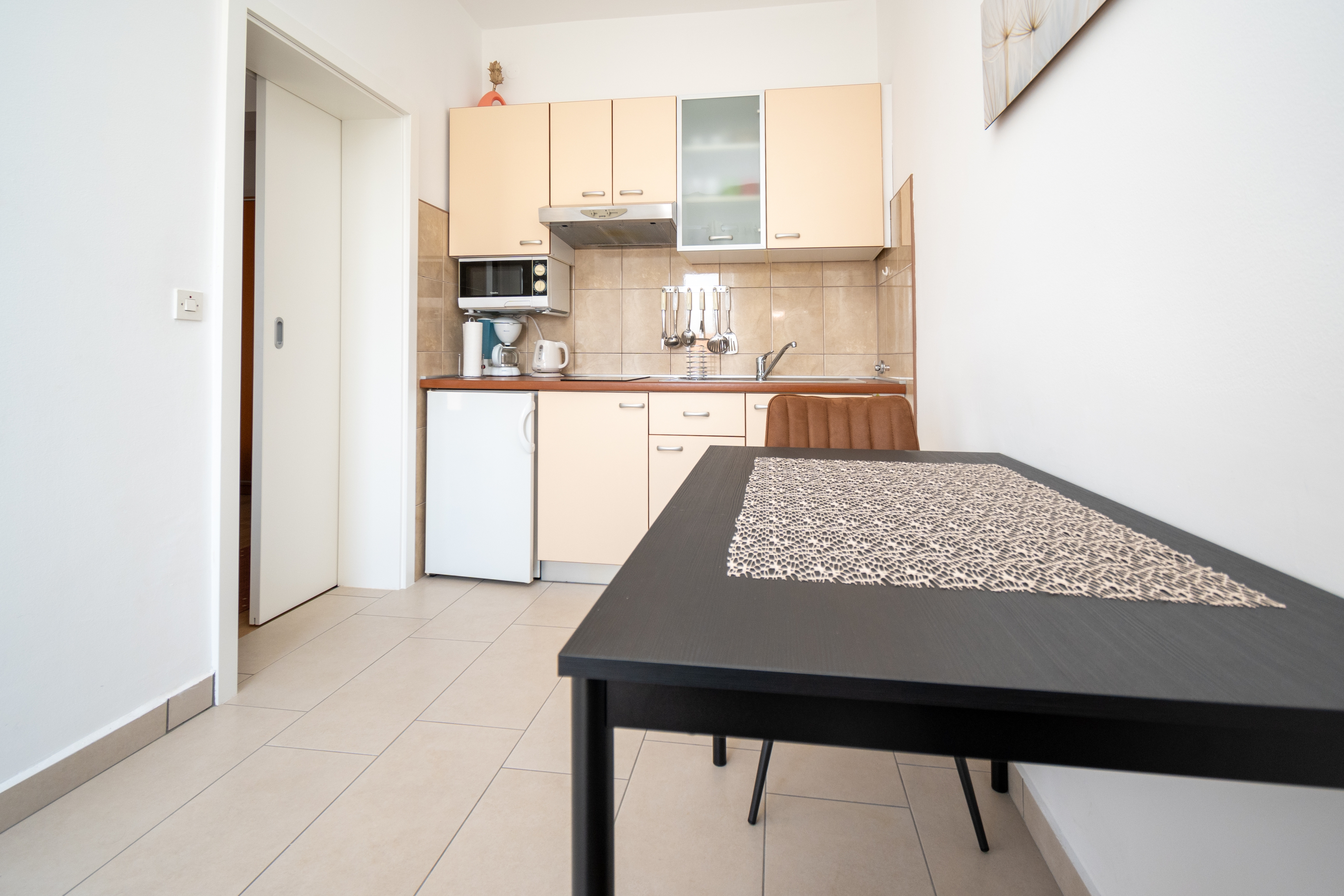 Apartment can accommodate 2 guests. Beds are situated in 1 sleeping rooms, within 25m2. Guests can use a private balcony to enjoy the warm summer evenings. The apartment offers the sea view. Food can be prepared using barbecue which is shared with other guests too. For the booked accommodation unit the deposit is paid directly to the owner upon check-in (deposit amount is displayed on the website) INCLUDED IN THE PRICE: tourist tax, final cleaning, parking, internet. OBLIGATORY ADDITIONAL COSTS: deposit (€100.00 one-time payment), short stay fee (surcharge depending on a number of booked nights: 30% - 1, 20% - 2, 10% - 3). OPTIONAL ADDITIONAL COSTS: air-conditioning (€10.00 per night). The availability of additional services for your chosen dates of stay, as well as their prices (if none are listed) must be checked ahead of time. Any additional services not shown in the price calculation are payable directly to the property owner and only if used by the visitor. Discounts to the base price: free day 14=13 (for reservations of 14 or more days you get one free day for the stay until 31122026).