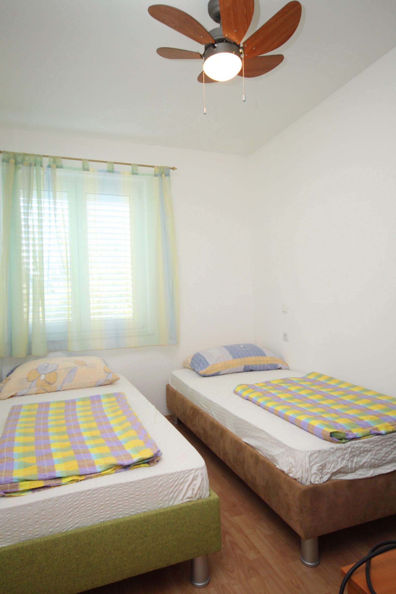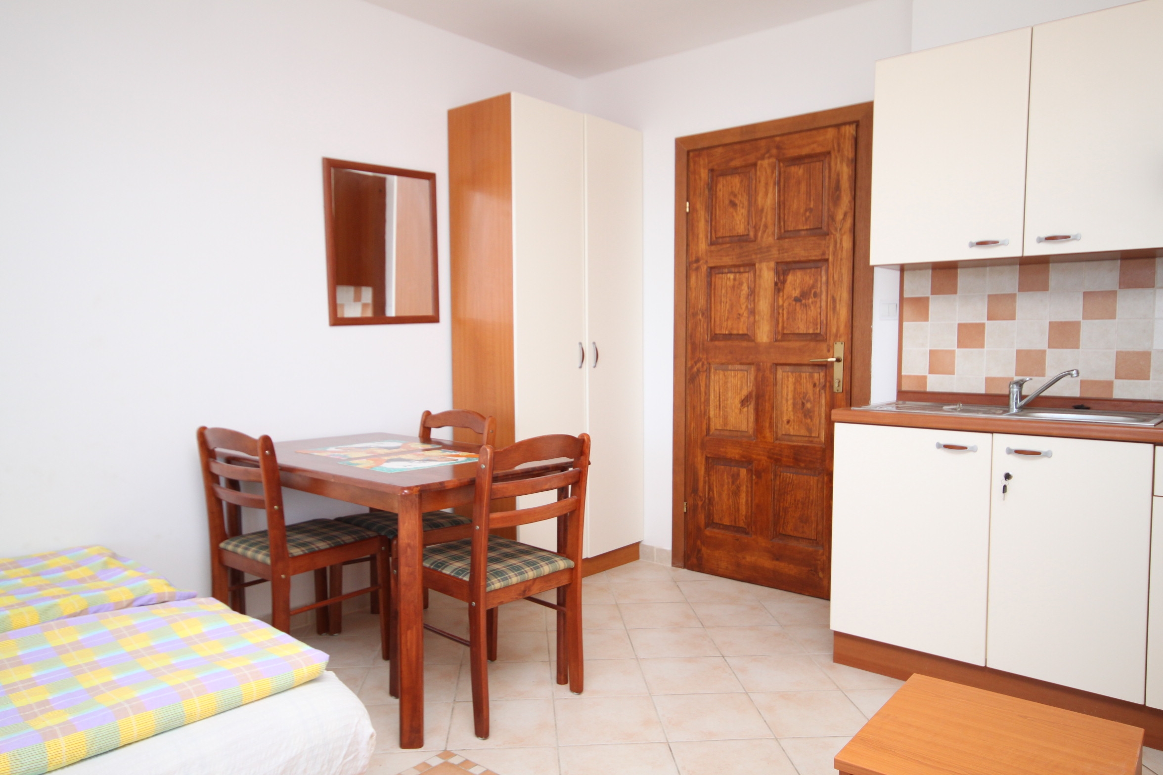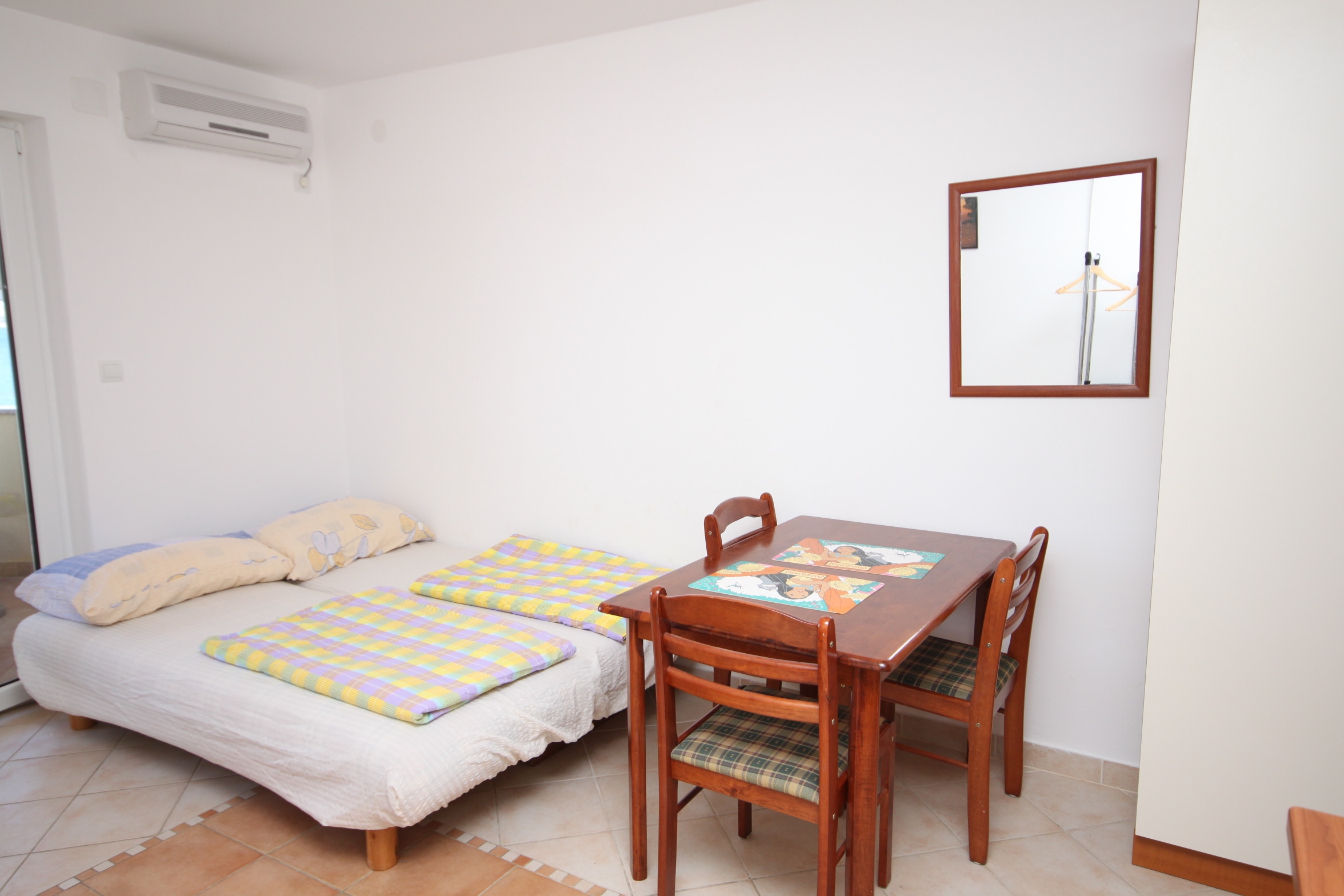 Apartment can accommodate 4 guests. Beds are situated in 1 sleeping rooms, but also in the dining room, within 34m2. Guests can use a private terrace to enjoy the warm summer evenings. The apartment offers the sea view. Food can be prepared using barbecue which is shared with other guests too. This accommodation unit welcomes pets at an additional charge. INCLUDED IN THE PRICE: final cleaning, air-conditioning, parking, internet, baby cot, sunshade. OBLIGATORY ADDITIONAL COSTS: tourist tax (adults €0.93 - €1.50 nightperson, discount for children aged 12 - 17). OPTIONAL ADDITIONAL COSTS: breakfast (€12.00, a 50% discount for children aged 4 to 12 years, Children up to age 4 free of charge), half-board (€29.00, a 50% discount for children aged 4 to 12 years, Children up to age 4 free of charge), pets (€5.00 per night). The availability of additional services for your chosen dates of stay, as well as their prices (if none are listed) must be checked ahead of time. Any additional services not shown in the price calculation are payable directly to the property owner and only if used by the visitor.