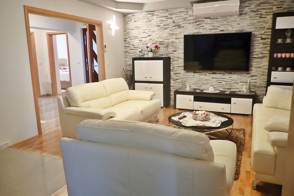 Apartment can accommodate 6 guests. Beds are situated in 3 sleeping rooms, within 100m2. Guests can use a private balcony to enjoy the warm summer evenings. The apartment offers the sea view. Food can be prepared using barbecue which is shared with other guests too. INCLUDED IN THE PRICE: tourist tax, final cleaning, air-conditioning, parking, internet. The availability of additional services for your chosen dates of stay, as well as their prices (if none are listed) must be checked ahead of time. Any additional services not shown in the price calculation are payable directly to the property owner and only if used by the visitor.