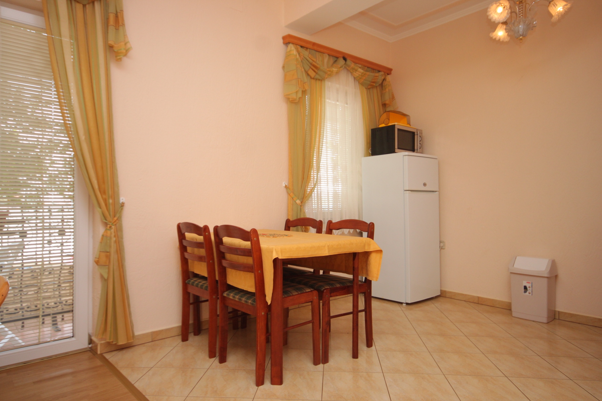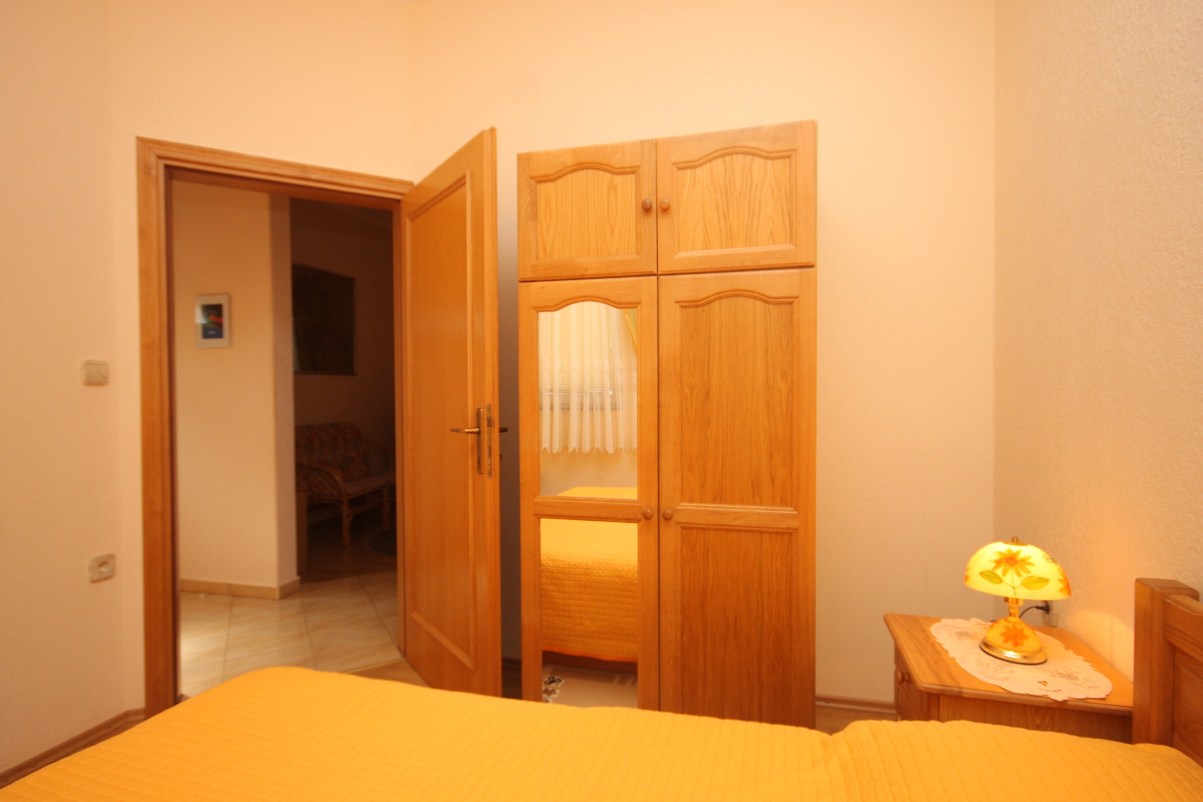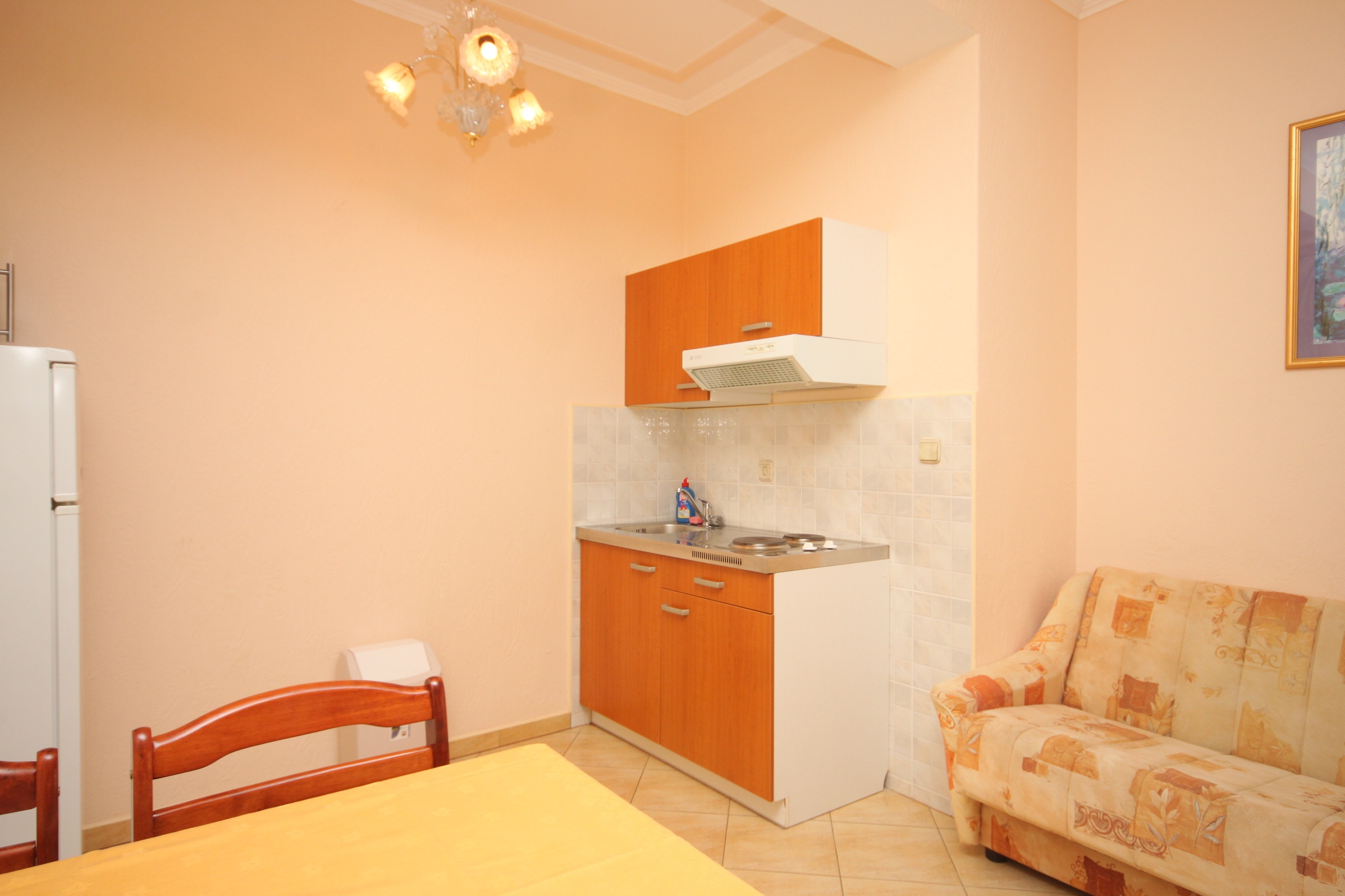 Apartment can accommodate 3 guests. Beds are situated in 1 sleeping rooms, but also in the living room, within 35m2. Guests can use a private terrace to enjoy the warm summer evenings. The apartment offers the sea view. Food can be prepared using barbecue which is shared with other guests too. INCLUDED IN THE PRICE: final cleaning, air-conditioning, parking, internet, iron, ironing board, hairdryer, sunchairs. OBLIGATORY ADDITIONAL COSTS: tourist tax (adults €0.93 - €1.50 nightperson, discount for children aged 12 - 17), short stay fee (surcharge depending on a number of booked nights: 30% - 1, 20% - 2, 10% - 3). OPTIONAL ADDITIONAL COSTS: additional bed (€10.00 per night). The availability of additional services for your chosen dates of stay, as well as their prices (if none are listed) must be checked ahead of time. Any additional services not shown in the price calculation are payable directly to the property owner and only if used by the visitor.