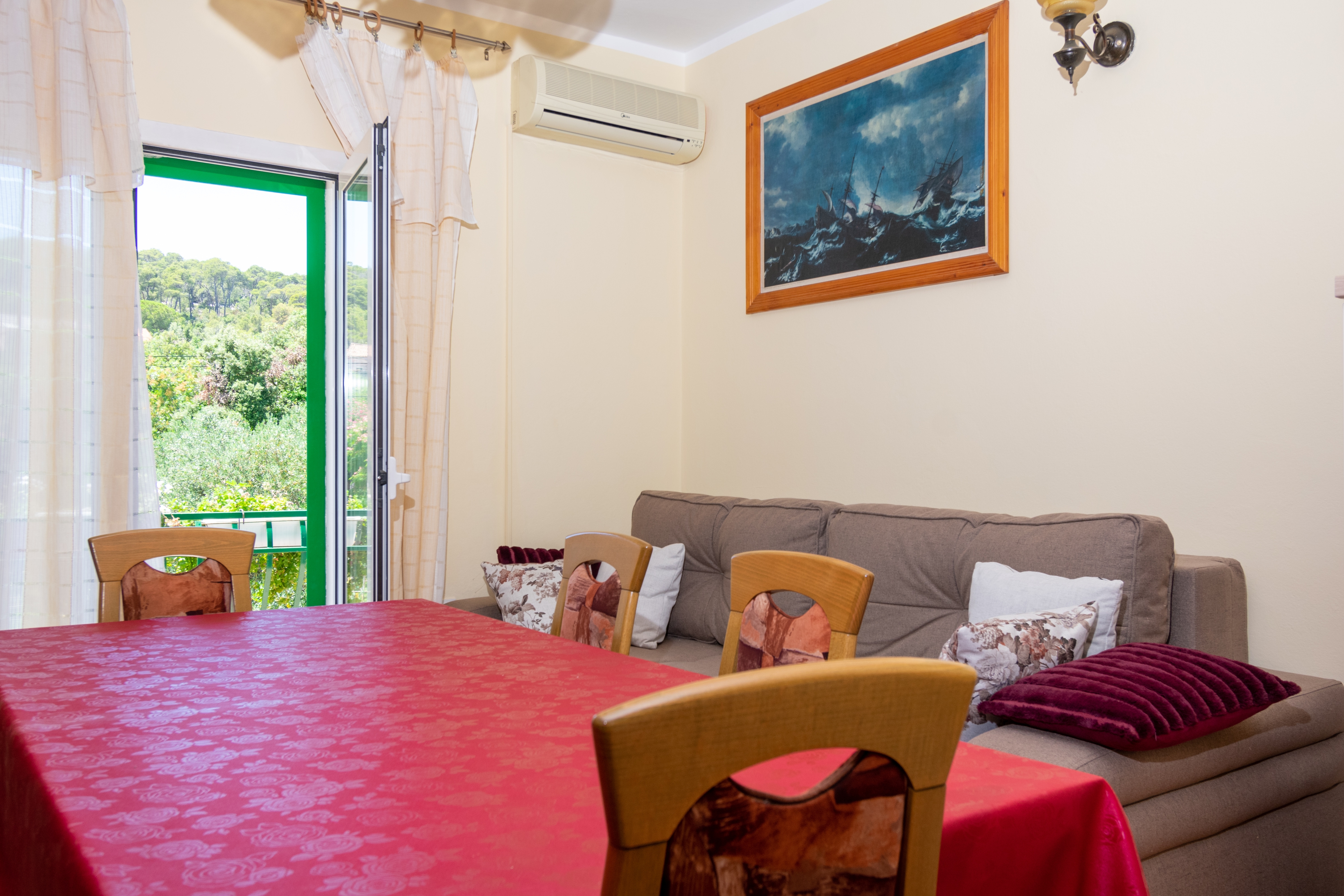 Apartment can accommodate 7 guests. Beds are situated in 3 sleeping rooms, within 77m2. Guests can use a private balcony to enjoy the warm summer evenings. Food can be prepared using barbecue which is shared with other guests too. INCLUDED IN THE PRICE: tourist tax, final cleaning, air-conditioning, parking, internet, hairdryer. OBLIGATORY ADDITIONAL COSTS: short stay fee (surcharge depending on a number of booked nights: 30% - 1, 20% - 2, 10% - 3). OPTIONAL ADDITIONAL COSTS: laundry (€5.00 washing). The availability of additional services for your chosen dates of stay, as well as their prices (if none are listed) must be checked ahead of time. Any additional services not shown in the price calculation are payable directly to the property owner and only if used by the visitor.