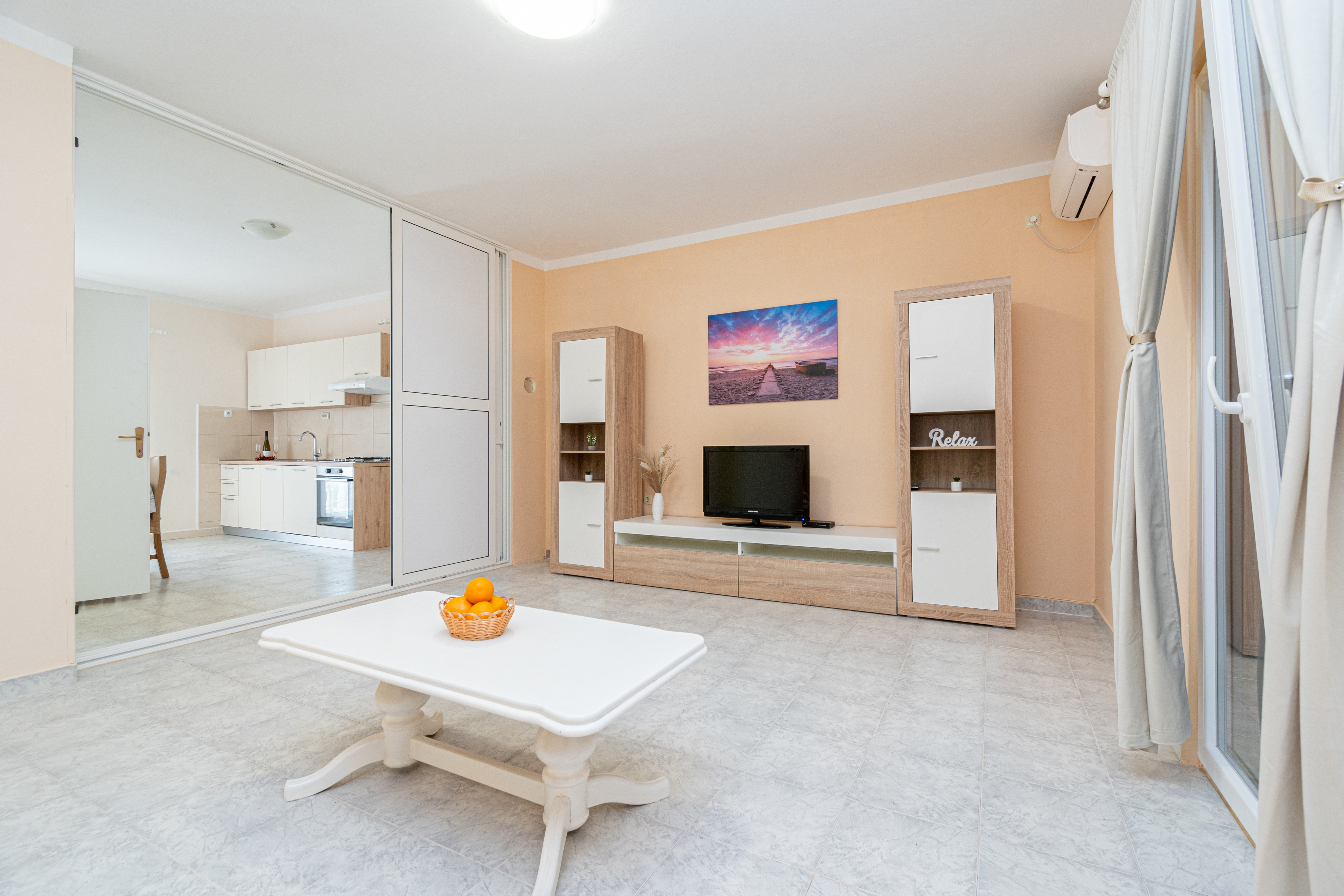 Apartment can accommodate 6 guests. Beds are situated in 2 sleeping rooms, but also in the living room, within 73m2. Guests can use a private terrace to enjoy the warm summer evenings. The apartment offers the sea view. Food can be prepared using barbecue which is shared with other guests too. Other guests or hosts pass through the balcony of the booked accommodation unit. INCLUDED IN THE PRICE: tourist tax, final cleaning, air-conditioning, parking, internet, hairdryer. OBLIGATORY ADDITIONAL COSTS: short stay fee (surcharge depending on a number of booked nights: 30% - 1, 20% - 2, 10% - 3). The availability of additional services for your chosen dates of stay, as well as their prices (if none are listed) must be checked ahead of time. Any additional services not shown in the price calculation are payable directly to the property owner and only if used by the visitor.