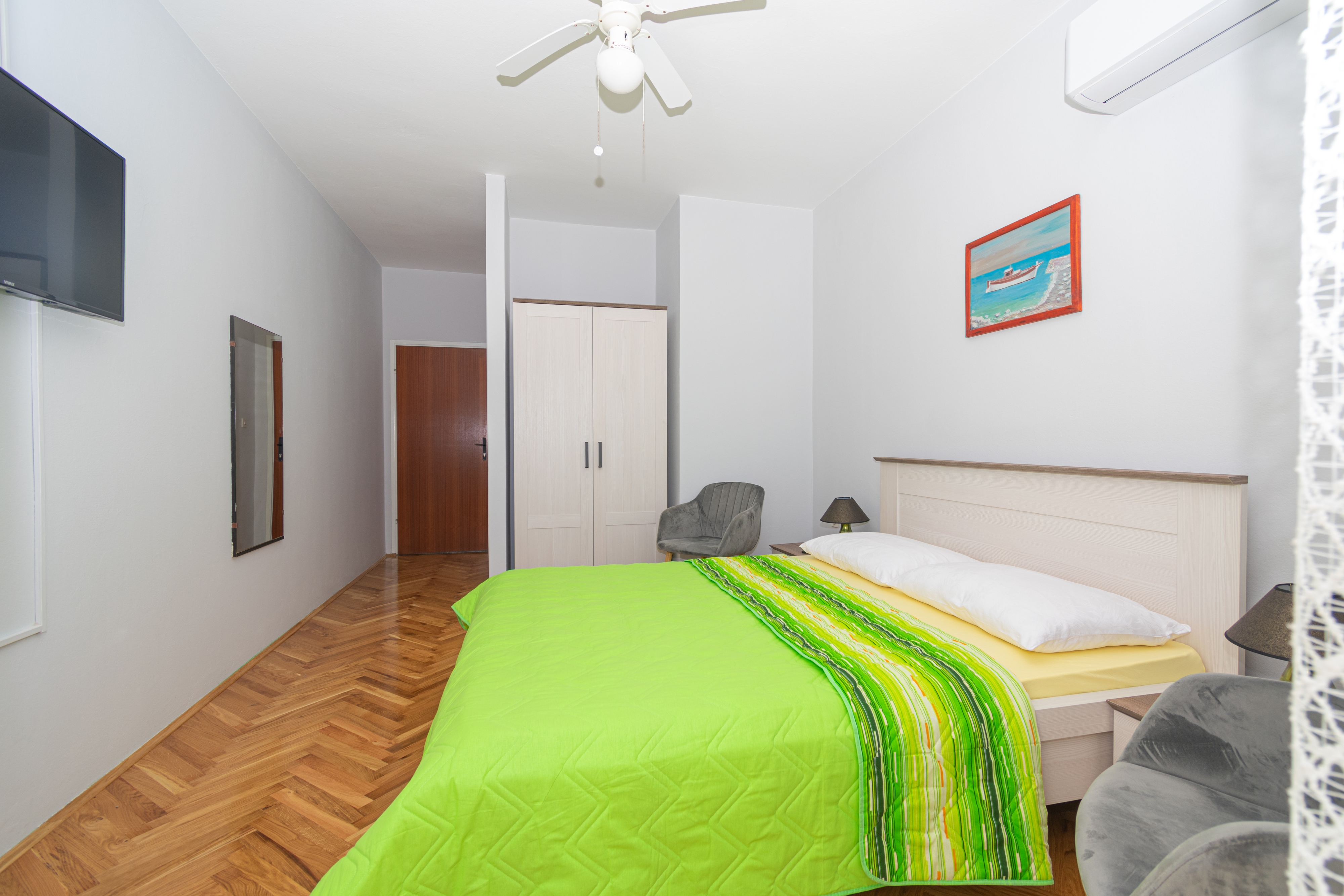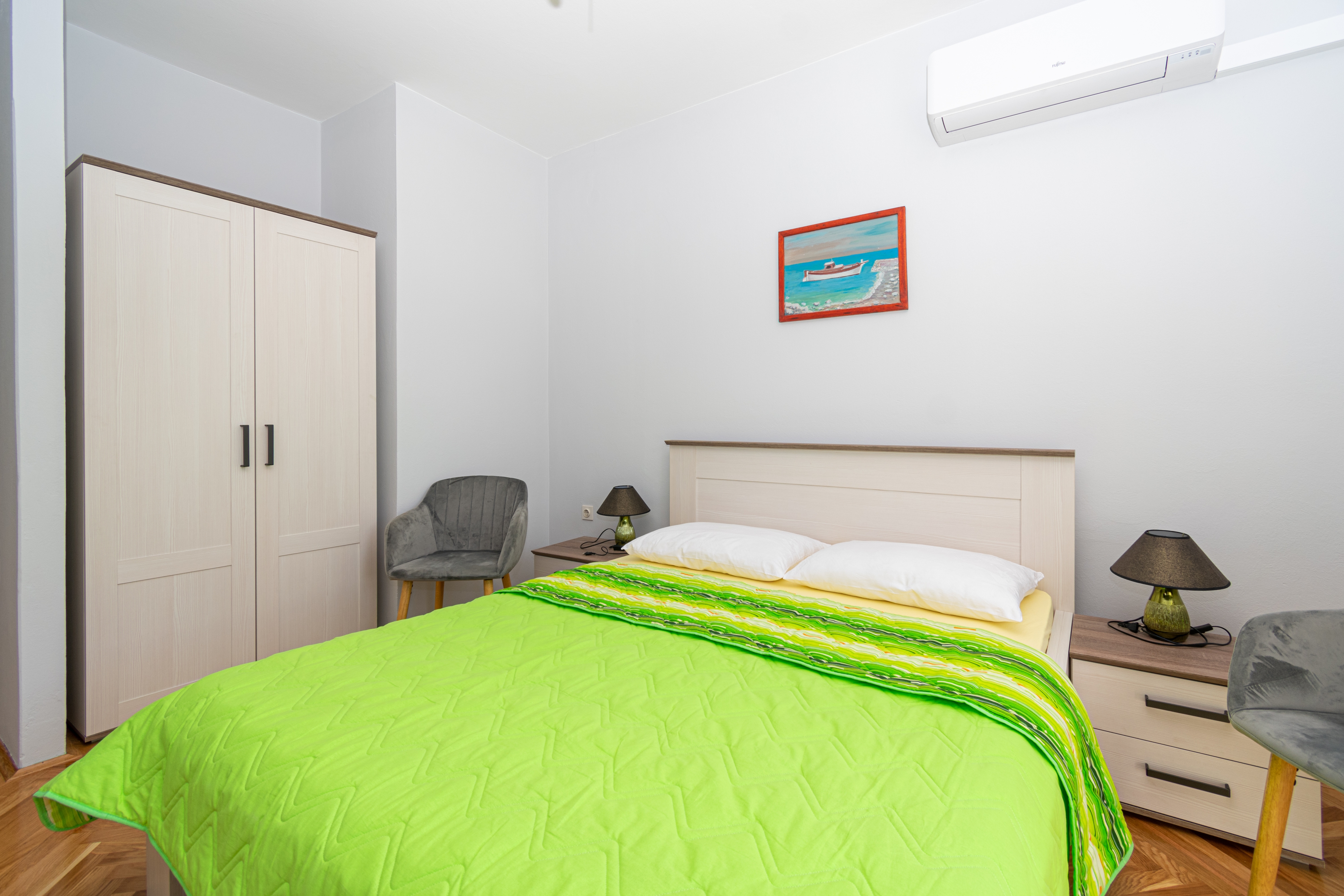 Room can accommodate 2 guests. Beds are situated in 1 sleeping rooms, within 15m2. Guests can use a private balcony to enjoy the warm summer evenings. The room offers the sea view. Food can be prepared using barbecue which is shared with other guests too. Reserved accommodation unit is a room with its own bathroom and there is no usage of kitchen. INCLUDED IN THE PRICE: tourist tax, final cleaning, air-conditioning, parking, internet, iron, ironing board, hairdryer. OBLIGATORY ADDITIONAL COSTS: short stay fee (surcharge depending on a number of booked nights: 30% - 1, 20% - 2, 10% - 3). The availability of additional services for your chosen dates of stay, as well as their prices (if none are listed) must be checked ahead of time. Any additional services not shown in the price calculation are payable directly to the property owner and only if used by the visitor.