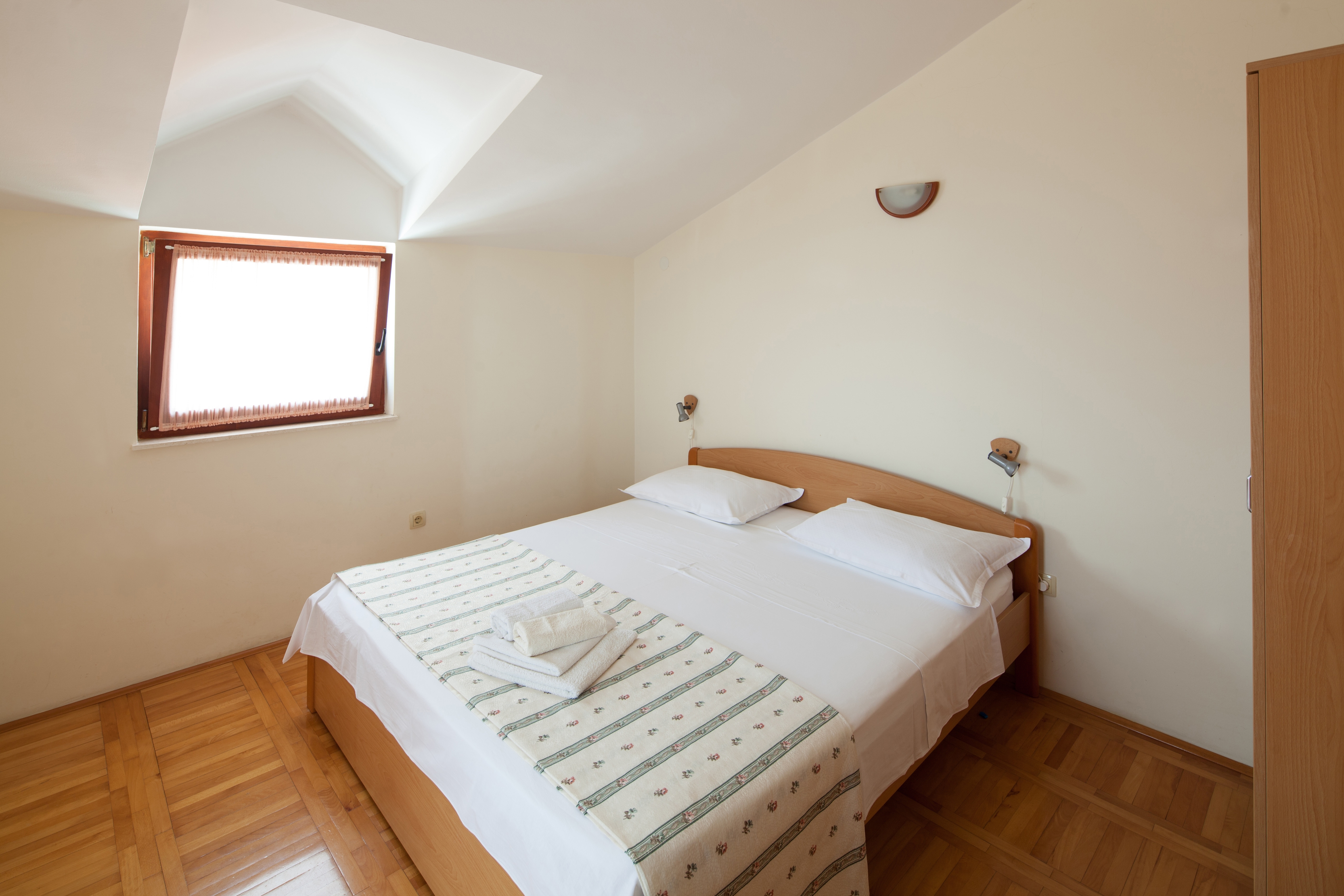 Apartment can accommodate 4 guests. Beds are situated in 1 sleeping rooms, but also in the living room, within 31m2. Guests can use a private terrace to enjoy the warm summer evenings. The apartment offers the sea view. Food can be prepared using barbecue which is shared with other guests too. This accommodation unit welcomes pets at an additional charge. INCLUDED IN THE PRICE: tourist tax, final cleaning, parking, garage, internet, baby cot, iron, ironing board, hairdryer, sunchairs. OBLIGATORY ADDITIONAL COSTS: short stay fee (surcharge depending on a number of booked nights: 30% - 1, 20% - 2, 10% - 3). OPTIONAL ADDITIONAL COSTS: breakfast (€10.00, a 50% discount for children aged 4 to 12 years, Children up to age 4 free of charge), air-conditioning (€7.00 per night), laundry (€5.00 washing), pets (€7.00 per night). The availability of additional services for your chosen dates of stay, as well as their prices (if none are listed) must be checked ahead of time. Any additional services not shown in the price calculation are payable directly to the property owner and only if used by the visitor.