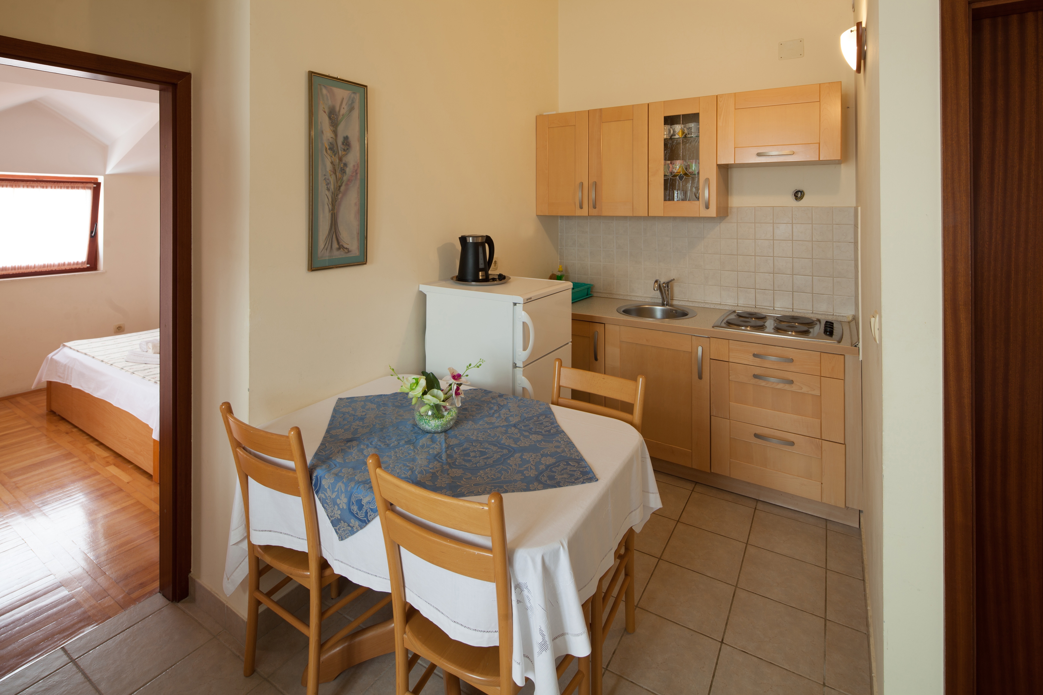 House 4191 in the town of Bilo, Primošten - North Dalmatia has accommodation units of type Apartment (4) and is 40 m away from the sea. The nearest beach to this accommodation is a concrete slabs beach. As the house is dividedseveral accommodation units, other guests will most likely be present during your stay. The hosts will be in the house during your holiday. The house owner is under no obligation to accept additional persons and pets that were not stated in the reservation request and it is necessary to report them in advance.AMENITIES Parking lot (Number of parking spaces: 2, Distance from the house: In the courtyard), Parking lot (Number of parking spaces: 1, Distance from the house: 30 m), Garage, (Number of parking spaces: 2), Barbecue: shared, Breakfast, WiFi Internet, Laundry service, Hairdryer, Iron, Ironing board, Sunchairs, Baby cot LOCATION AND ACCESS Number of stairs from the property to the beach: 10 Car access possible: Yes The facility is situated in relatively quiet surroundings The property isnt surrounded by greenery DISTANCES Sea: 40 m Beach: 40 m Center: 5.5 km Shop: 3 km Urgent medical care: 5.5 km