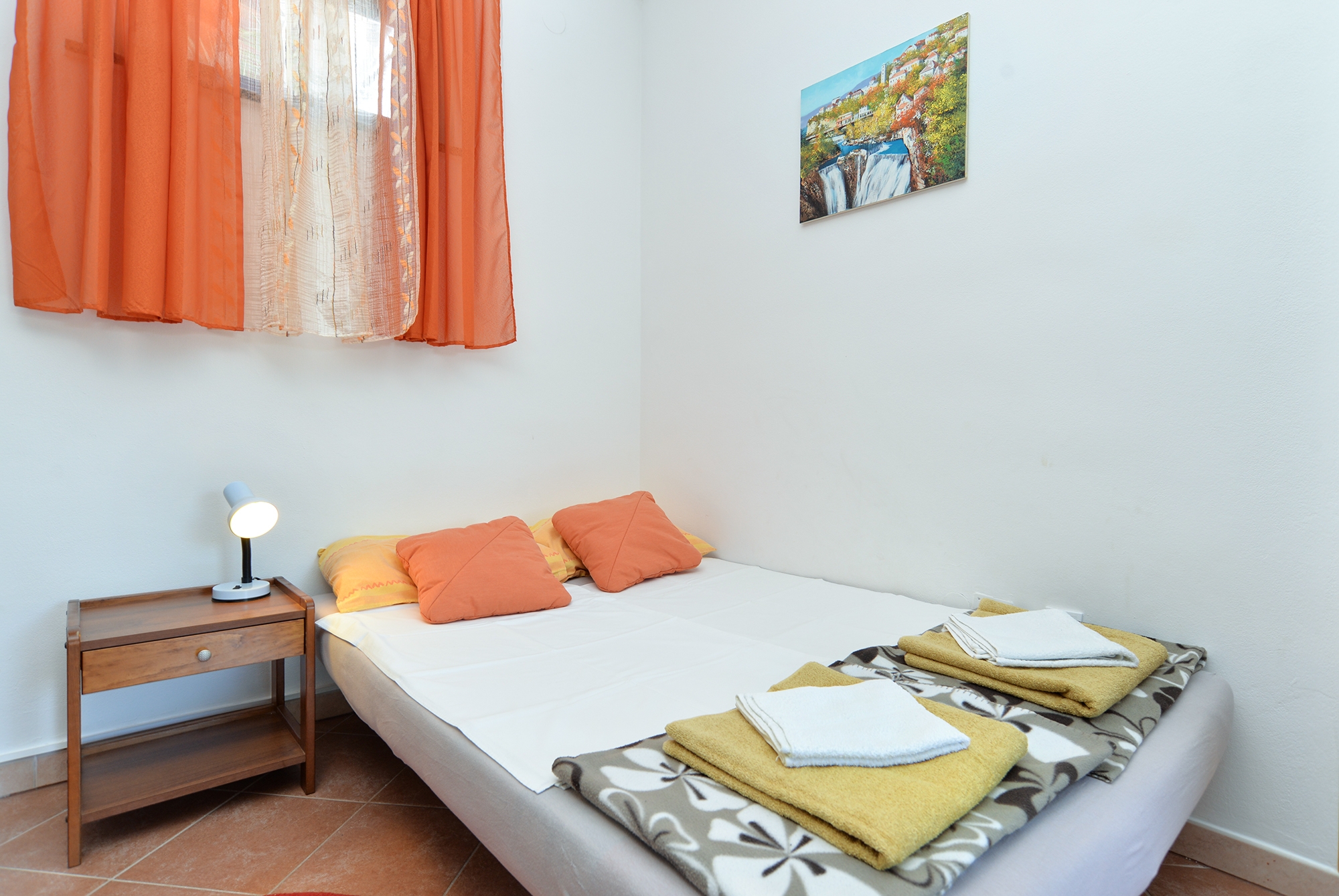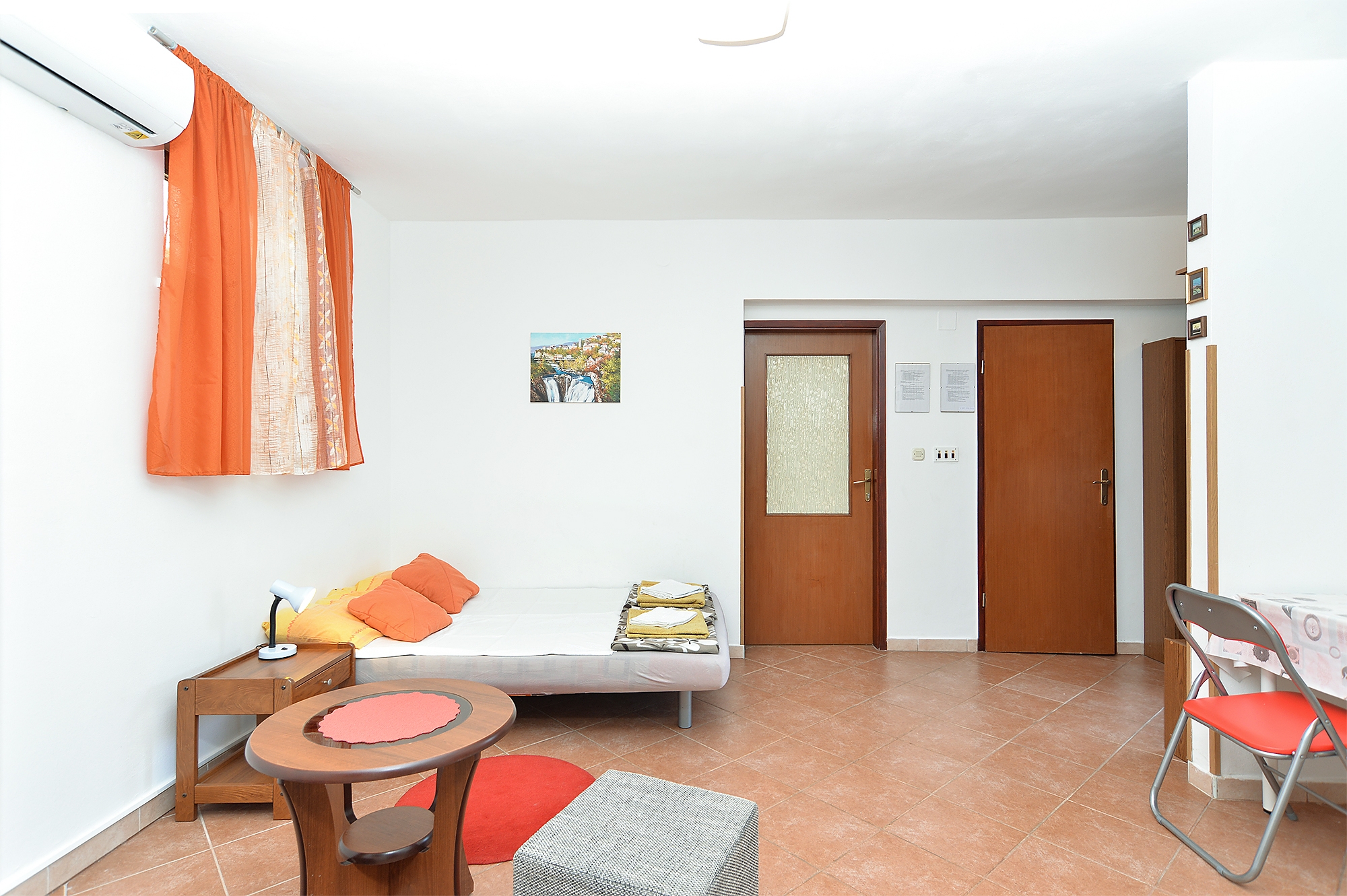 Apartment can accommodate 3 guests. Beds are situated in 1 sleeping rooms, but also in the living room, within 41m2. Guests can use a private terrace to enjoy the warm summer evenings. Food can be prepared using barbecue which is shared with other guests too. INCLUDED IN THE PRICE: tourist tax, final cleaning, air-conditioning, parking, internet, baby cot, iron, hairdryer. The availability of additional services for your chosen dates of stay, as well as their prices (if none are listed) must be checked ahead of time. Any additional services not shown in the price calculation are payable directly to the property owner and only if used by the visitor.