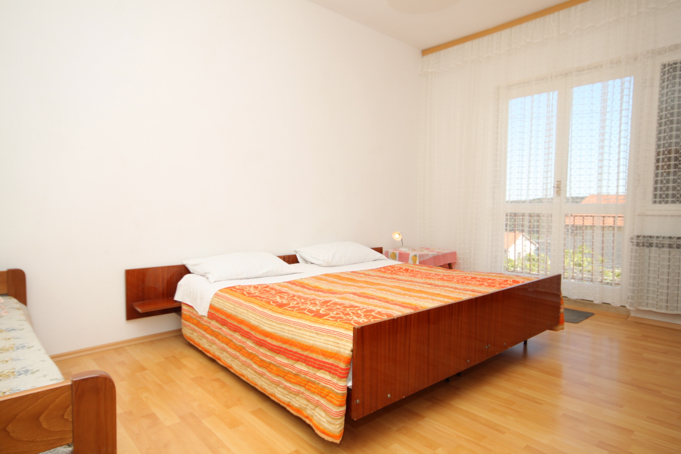 Apartment can accommodate 4 guests. Beds are situated in 2 sleeping rooms, within 50m2. Guests can use a private terrace to enjoy the warm summer evenings. Food can be prepared using barbecue which is shared with other guests too. Some of the rooms of the accommodation unit are not connected with the rest of the unit. INCLUDED IN THE PRICE: tourist tax, final cleaning, air-conditioning, parking, internet, portable barbecue. OBLIGATORY ADDITIONAL COSTS: short stay fee (surcharge depending on a number of booked nights: 30% - 1, 20% - 2, 10% - 3). The availability of additional services for your chosen dates of stay, as well as their prices (if none are listed) must be checked ahead of time. Any additional services not shown in the price calculation are payable directly to the property owner and only if used by the visitor.