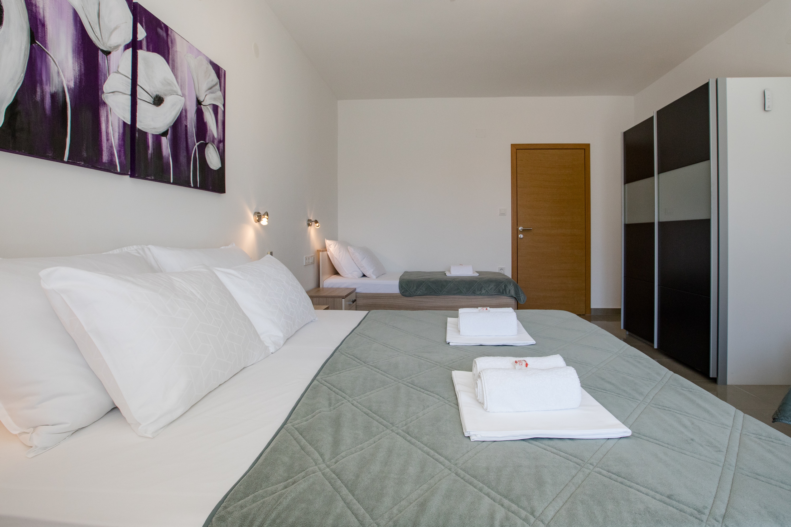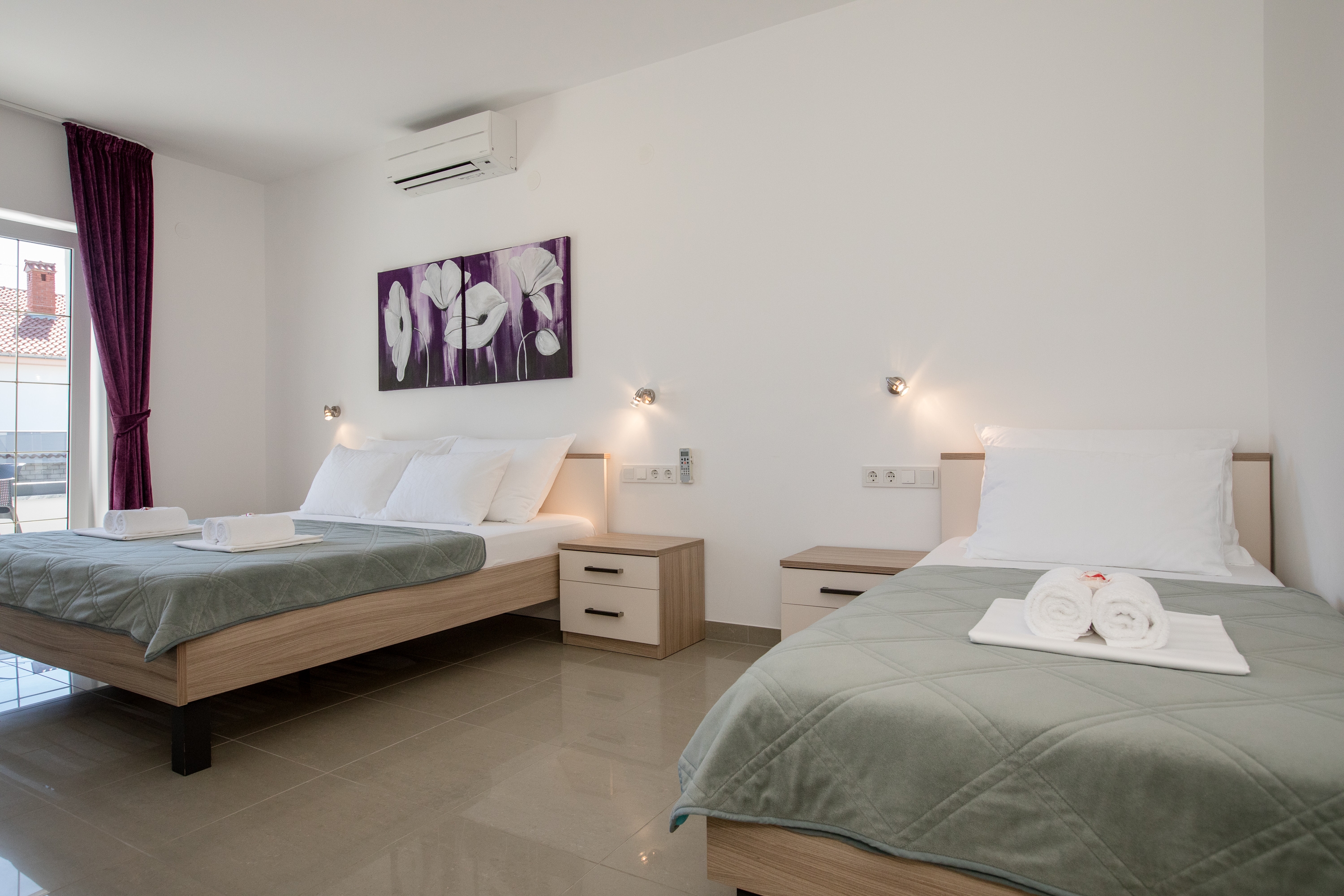 Apartment can accommodate 6 guests. Beds are situated in 2 sleeping rooms, within 45m2. Guests can use a private balcony to enjoy the warm summer evenings. Food can be prepared using barbecue which is shared with other guests too. INCLUDED IN THE PRICE: tourist tax, final cleaning, air-conditioning, parking, internet. OBLIGATORY ADDITIONAL COSTS: short stay fee (surcharge depending on a number of booked nights: 30% - 1, 20% - 2, 10% - 3). OPTIONAL ADDITIONAL COSTS: boat mooring (€25.00 per night). The availability of additional services for your chosen dates of stay, as well as their prices (if none are listed) must be checked ahead of time. Any additional services not shown in the price calculation are payable directly to the property owner and only if used by the visitor.