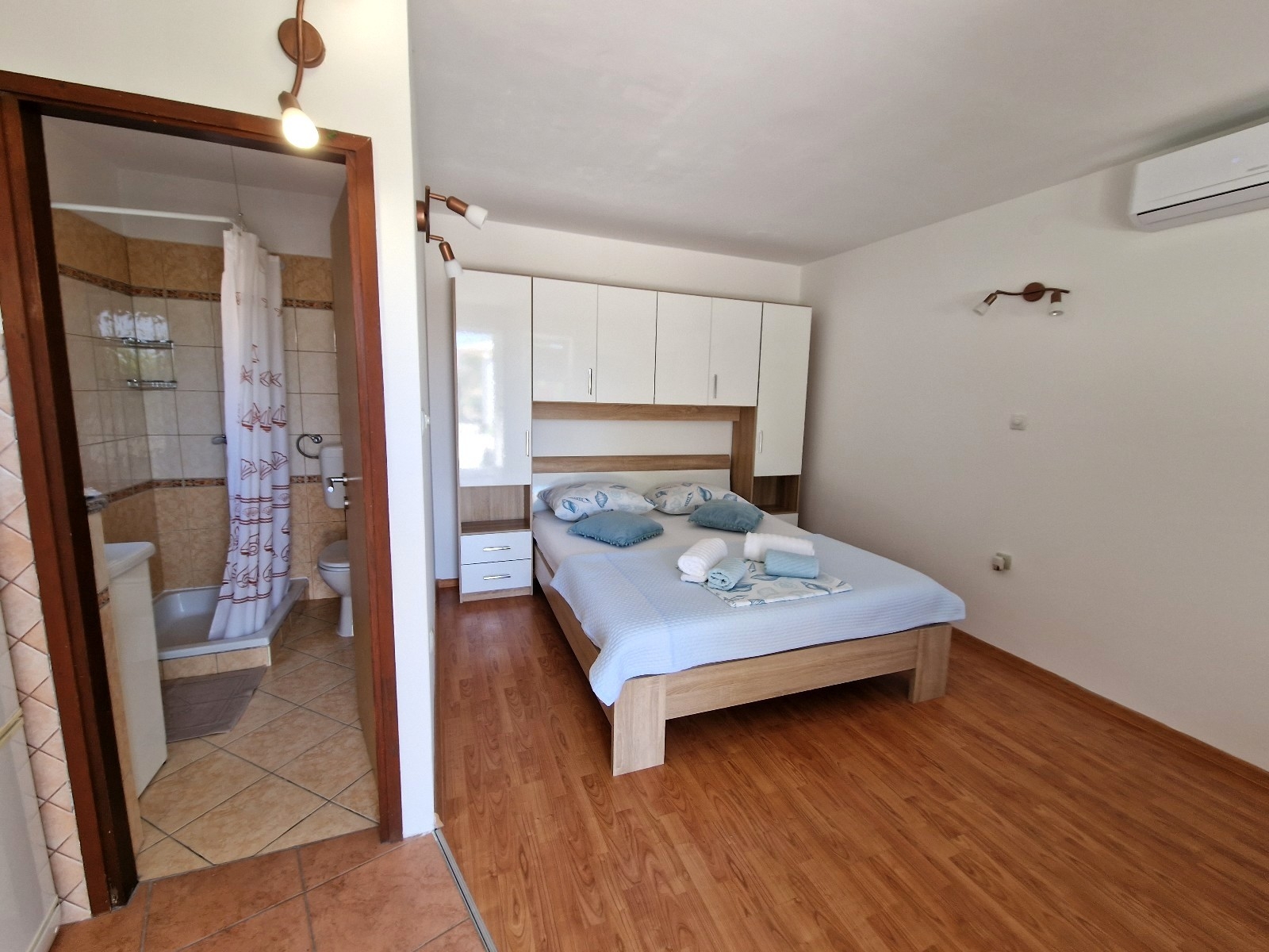 Studio flat can accommodate 2 guests. Beds are situated in 1 sleeping rooms, within 25m2. Guests can use a private terrace to enjoy the warm summer evenings. Food can be prepared using barbecue which is shared with other guests too. This accommodation unit welcomes pets at an additional charge. Some of the rooms of the accommodation unit are not connected with the rest of the unit. INCLUDED IN THE PRICE: tourist tax, final cleaning, air-conditioning, parking, internet, hairdryer. OBLIGATORY ADDITIONAL COSTS: short stay fee (surcharge depending on a number of booked nights: 30% - 1, 20% - 2, 10% - 3). OPTIONAL ADDITIONAL COSTS: pets (€6.00 per night). The availability of additional services for your chosen dates of stay, as well as their prices (if none are listed) must be checked ahead of time. Any additional services not shown in the price calculation are payable directly to the property owner and only if used by the visitor.