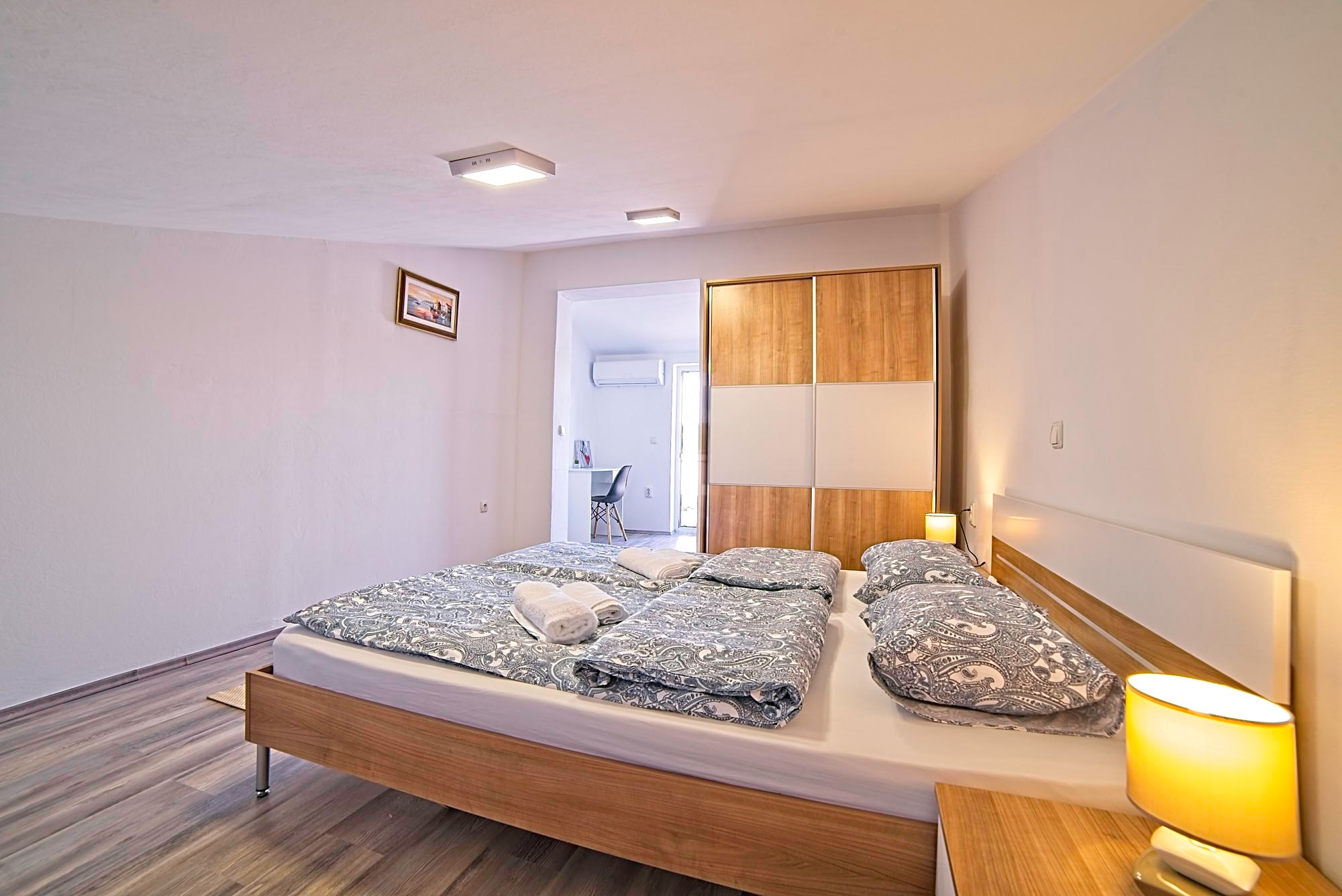 House can accommodate 6 guests. Beds are situated in 3 sleeping rooms, within 92m2. Guests can use a private terrace to enjoy the warm summer evenings. For full enjoyment and relaxation there is a private barbecue for this accommodation guests only. This accommodation unit welcomes pets at an additional charge. INCLUDED IN THE PRICE: tourist tax, final cleaning, air-conditioning, parking, internet, iron, ironing board, hairdryer. OBLIGATORY ADDITIONAL COSTS: short stay fee (surcharge depending on a number of booked nights: 30% - 1, 20% - 2, 10% - 3). OPTIONAL ADDITIONAL COSTS: boat mooring (€10.00 per night), pets (€5.00 per night). The availability of additional services for your chosen dates of stay, as well as their prices (if none are listed) must be checked ahead of time. Any additional services not shown in the price calculation are payable directly to the property owner and only if used by the visitor.
