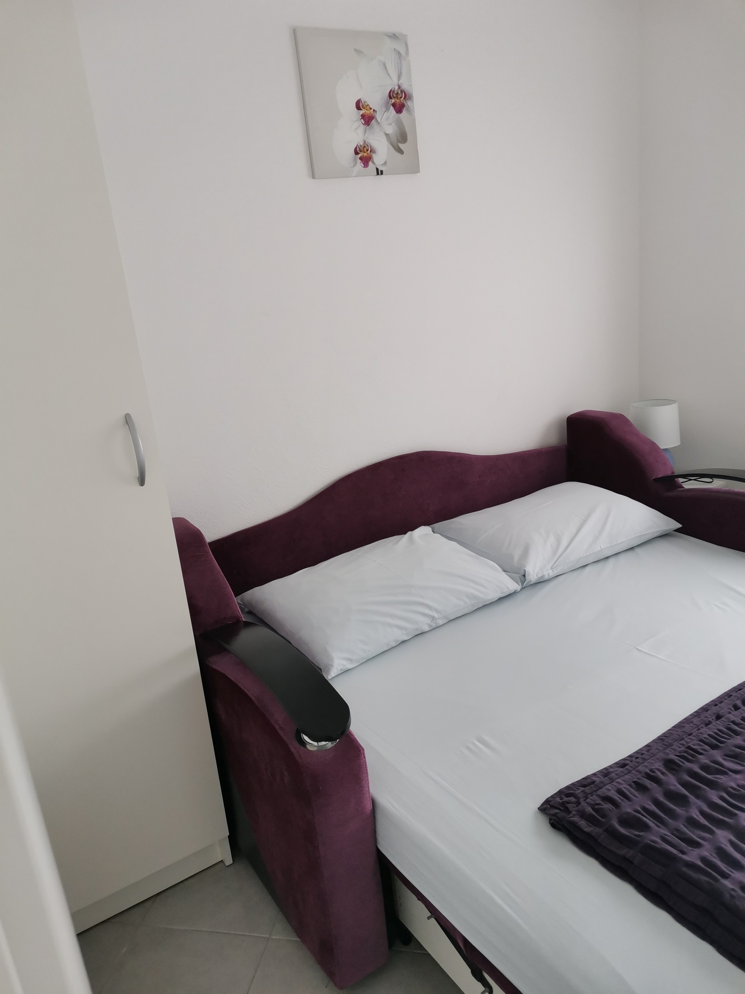 Apartment can accommodate 4 guests. Beds are situated in 2 sleeping rooms, within 41m2. Guests can use a private terrace to enjoy the warm summer evenings. The apartment offers the sea view. Food can be prepared using barbecue which is shared with other guests too. Shared pool is on disposal during stay. INCLUDED IN THE PRICE: tourist tax, final cleaning, air-conditioning, pool, parking, internet, iron, hairdryer. OBLIGATORY ADDITIONAL COSTS: short stay fee (surcharge depending on a number of booked nights: 30% - 1, 20% - 2, 10% - 3). The availability of additional services for your chosen dates of stay, as well as their prices (if none are listed) must be checked ahead of time. Any additional services not shown in the price calculation are payable directly to the property owner and only if used by the visitor.