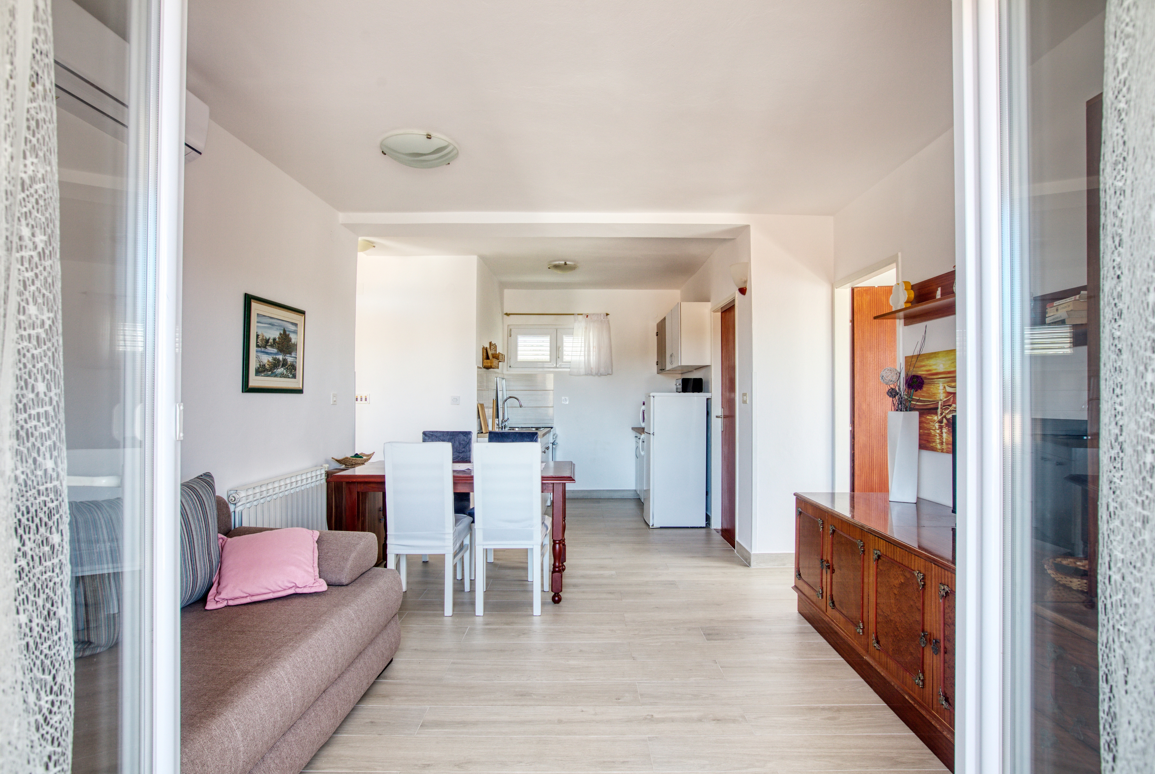 Apartment can accommodate 4 guests. Beds are situated in 2 sleeping rooms, within 46m2. Guests can use a private terrace to enjoy the warm summer evenings. The apartment offers the sea view. Food can be prepared using barbecue which is shared with other guests too. INCLUDED IN THE PRICE: tourist tax, final cleaning, air-conditioning, central heating, parking, internet, iron, ironing board, hairdryer. OBLIGATORY ADDITIONAL COSTS: short stay fee (surcharge depending on a number of booked nights: 30% - 1, 20% - 2, 10% - 3). OPTIONAL ADDITIONAL COSTS: laundry (€5.00 washing). The availability of additional services for your chosen dates of stay, as well as their prices (if none are listed) must be checked ahead of time. Any additional services not shown in the price calculation are payable directly to the property owner and only if used by the visitor.