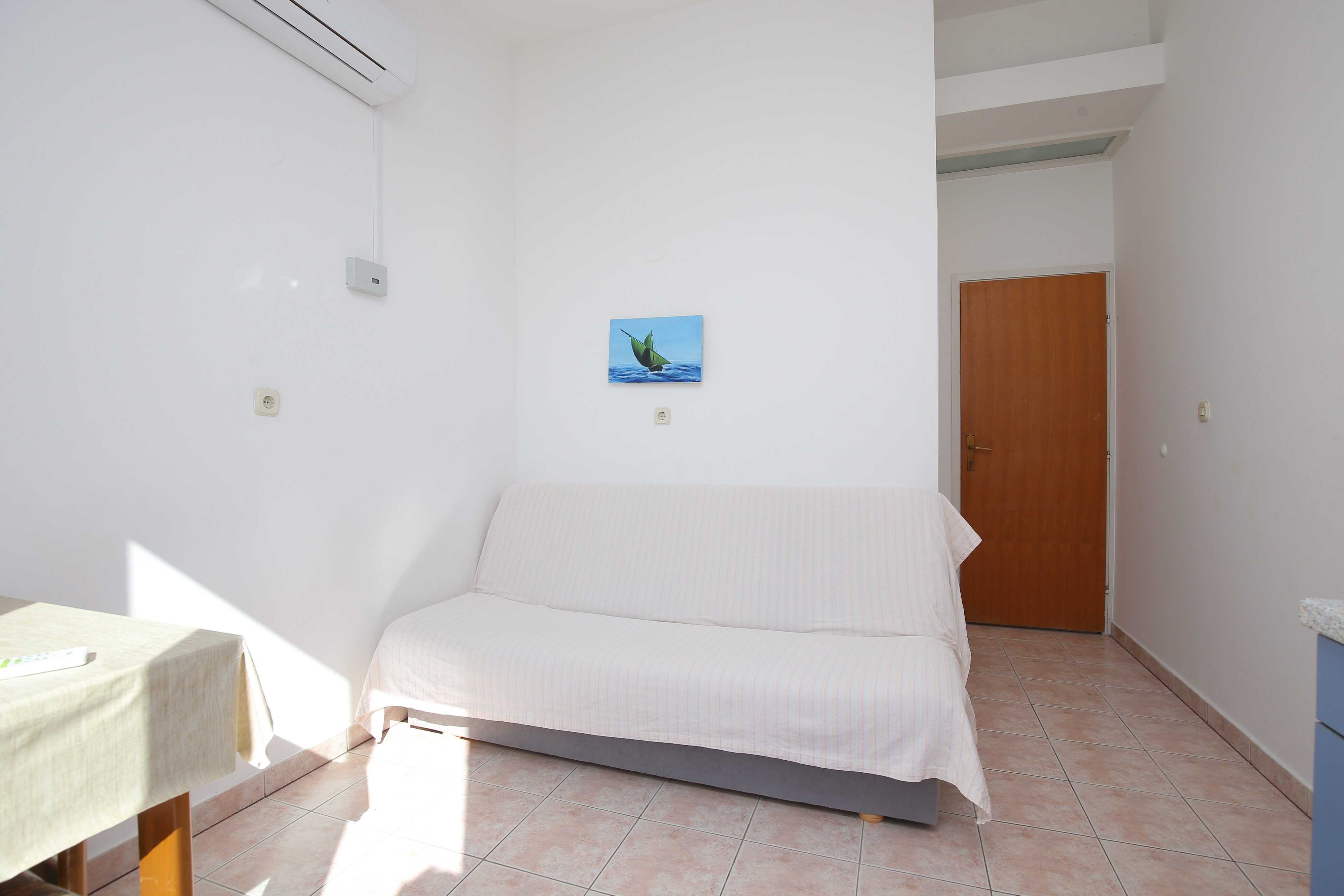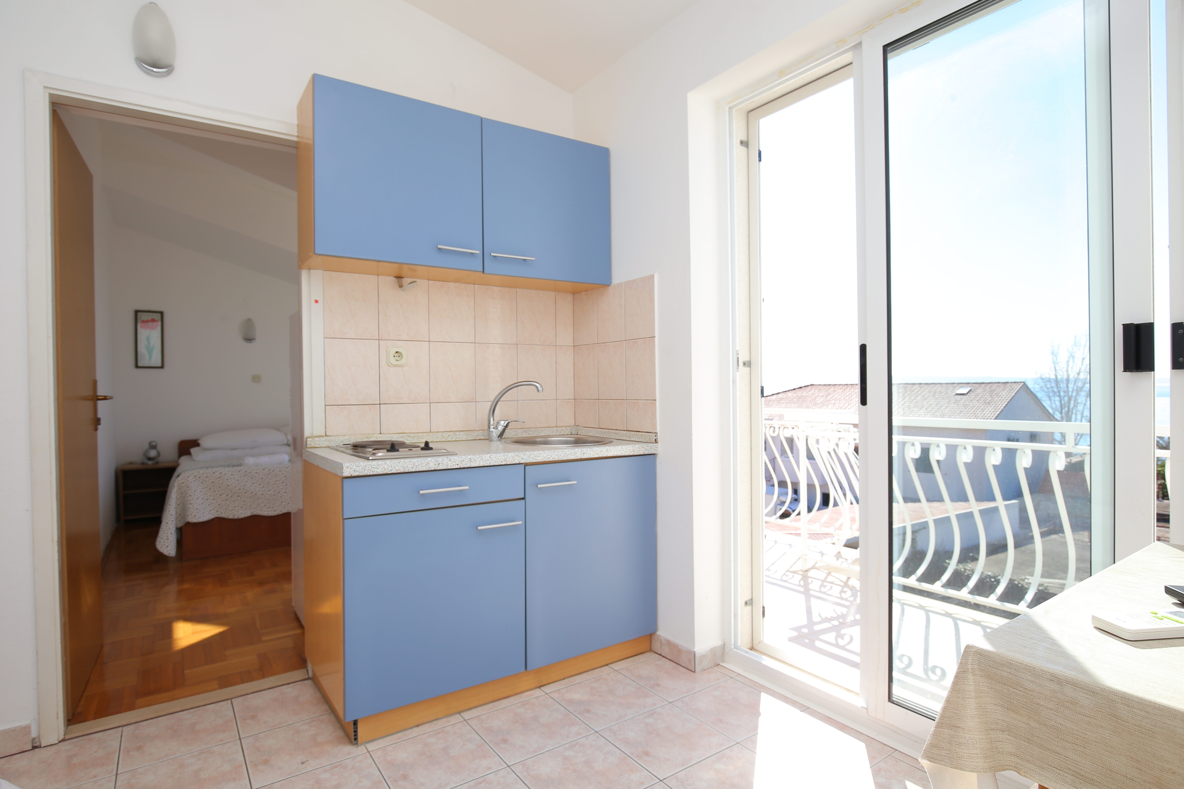 Apartment can accommodate 3 guests. Beds are situated in 1 sleeping rooms, but also in the living room, within 22m2. Guests can use a private balcony to enjoy the warm summer evenings. The apartment offers the sea view. Food can be prepared using barbecue which is shared with other guests too. INCLUDED IN THE PRICE: tourist tax, final cleaning, air-conditioning, parking, internet, laundry, iron, ironing board, hairdryer, portable barbecue. The availability of additional services for your chosen dates of stay, as well as their prices (if none are listed) must be checked ahead of time. Any additional services not shown in the price calculation are payable directly to the property owner and only if used by the visitor. Discounts to the base price: free day 14=13 (for reservations of 14 or more days you get one free day for the stay until 31122026).
