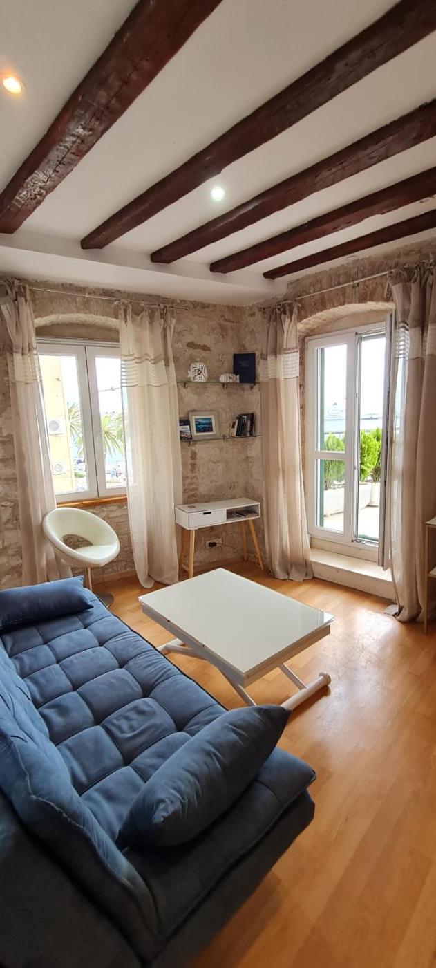 Apartment with Terrace. Overlooking the waterfront promenade and the park, this newly renovated studio has a large terrace with sun loungers, seating area and barbecue. The interiors feature stone wall elements, original timber beam ceilings, air conditioning and an LCD TV. Address: Tomića Stine 12 (200 metres from the Riva Promenade)